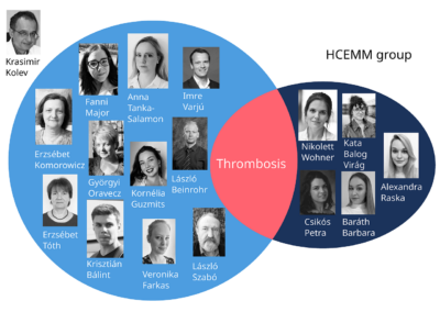A Hemosztázis részleg a vezető halálok, a szív- és agyér-betegségek hátterében álló atherothrombosis molekuláris aspektusaival foglalkozik. A kóros alvadási folyamatok patomechanizmusának vizsgálata mellett fő céljaink között szerepel a patológiás vérrögök feloldásában használatos proteázok enzimológiai jellemzése, illetve az érfali komponensek és a vérsejtek intravaszkuláris trombusok stabilizálásában betöltött szerepének megismerése. Kutatásaink távlati célja a jelenleg elérhetőnél magasabb hatékonyságú trombolítikus terápiák fejlesztése, illetve az ehhez szükséges molekuláris célpontok azonosítása. In vitro technikák sorát alkalmazva (pásztázó elektronmikroszkópia, immunofluoreszcens konfokális mikroszkópia, rheometria, turbidimetria, surface plasmon rezonancia, mikrokalorimetria) jellemezzük a hemosztatikus faktorok kölcsönhatásait, az izolált fibrin és plazmaalvadék szerkezetét és mechanikai, valamint kémiai stabilitását.