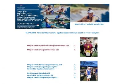 Bálint Zsófi, 10.B osztályos tanulónk legjelentősebb evezős sikerei