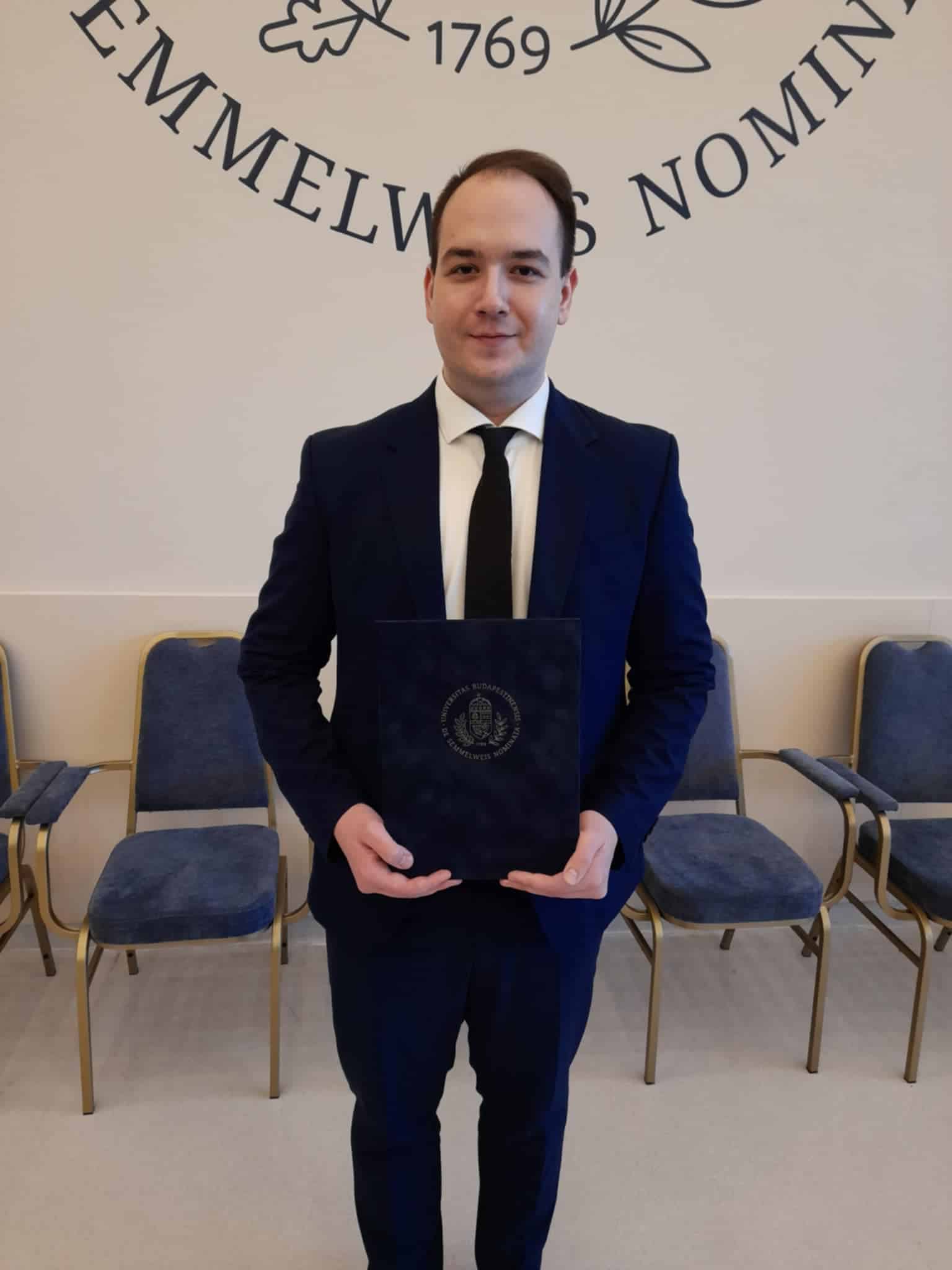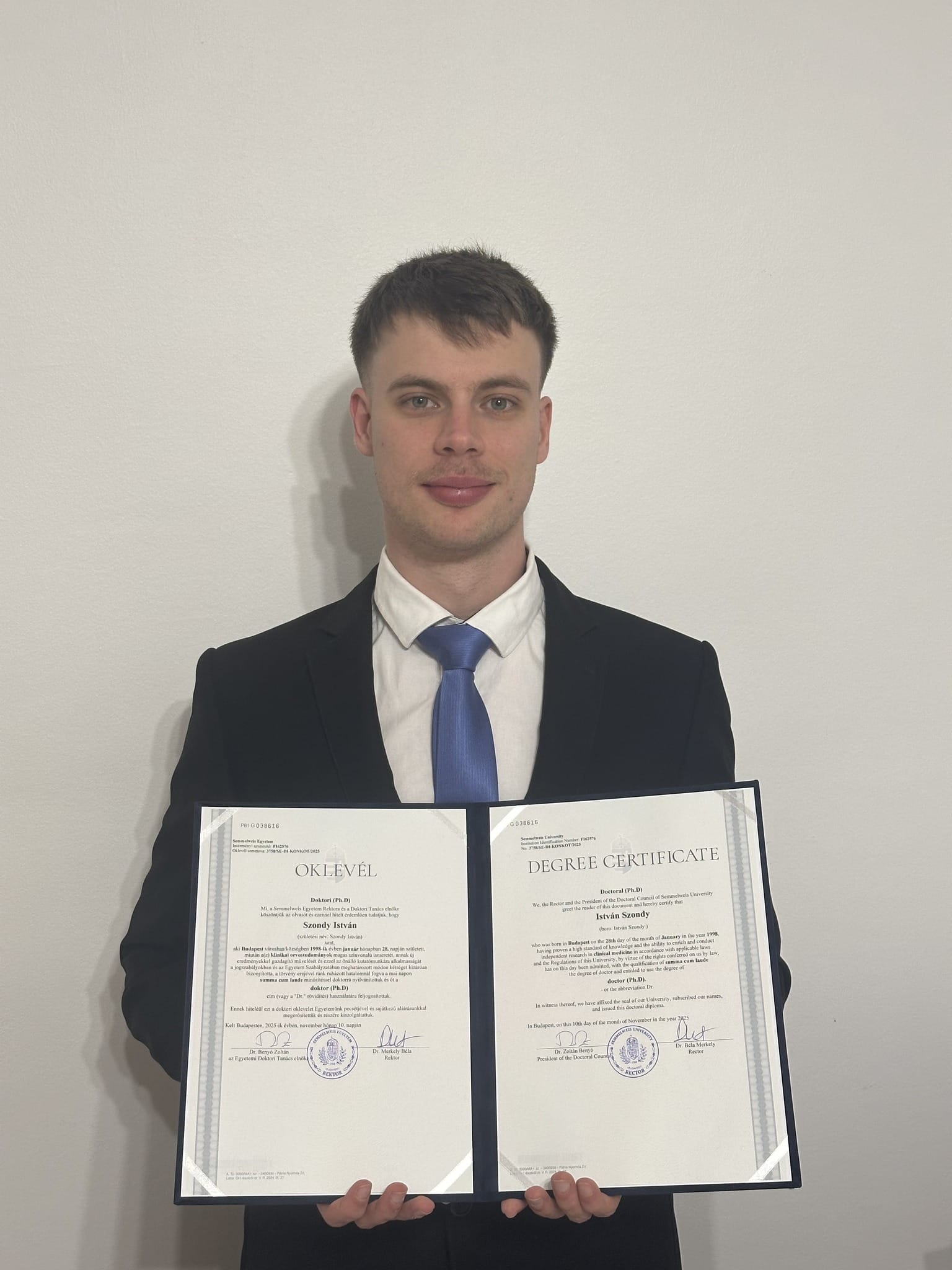 A Semmelweis Egyetem idei Dies Academicus ünnepségén vehették át PhD oklevelüket klinikánk munkatársai: Dr. Kuzmanovszki Daniella (témavezető: Prof. Dr. Holló Péter, egyetemi tanár), Dr. Németh Dominik (témavezető: Dr. Pónyai Györgyi Ph.D, egyetemi docens) és Dr. Szondy István (témavezető: Dr. Bánvölgyi András Ph.D, egyetemi docens). Szintén fokozatot szerzett Dr. Galajda Noémi, aki oklevelét későbbi időpontban veszi át.