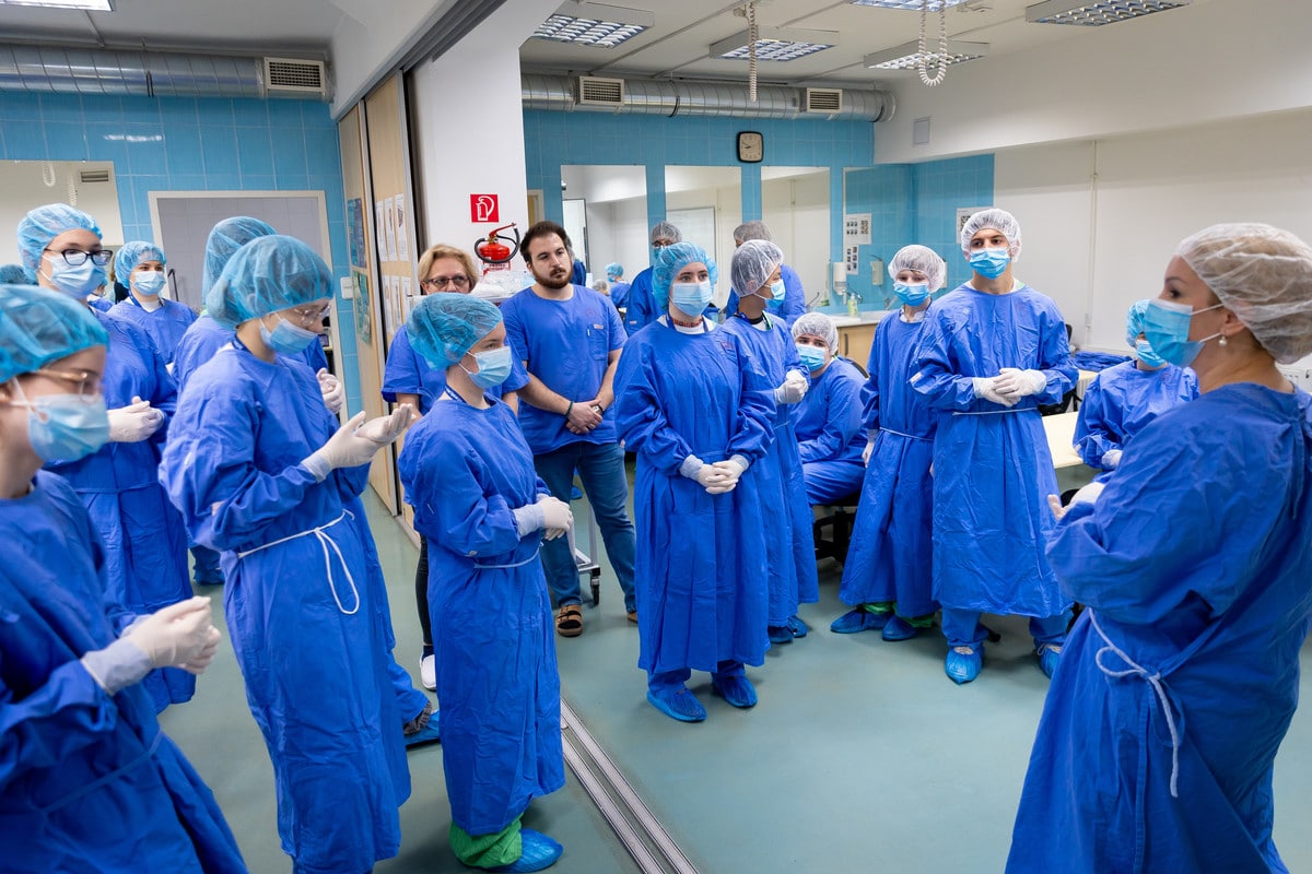 A nagyobbak a Kísérletes Kardiológiai és Sebészeti Műtéttani Tanszék oktató műtőjében saját bőrükön tapasztalhatták meg, milyen a műtéti bemosakodás folyamata, majd prevenciós előadással hívtuk fel a figyelmüket a dohányzás és az alkoholfogyasztás veszélyeire.