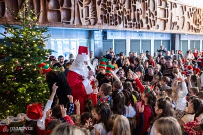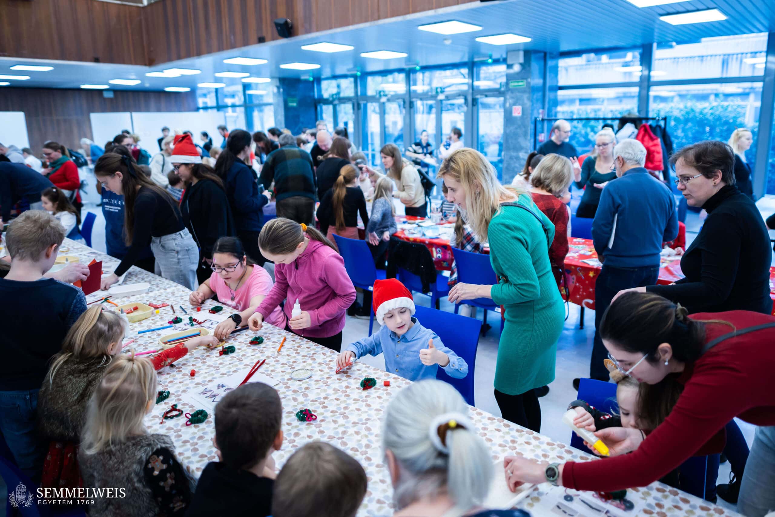 Idén ismét felejthetetlen élményt nyújtott a Családbarát Egyetem Központ Mikulás ünnepsége, amelyre több száz család érkezett a Nagyvárad téri Elméleti Tömbbe. A helyszín már a regisztráció kezdetére megtelt izgatott gyerekekkel és ünnepi hangulatban érkező szülőkkel, a földszint pedig néhány órára igazi karácsonyi varázsvilággá alakult.