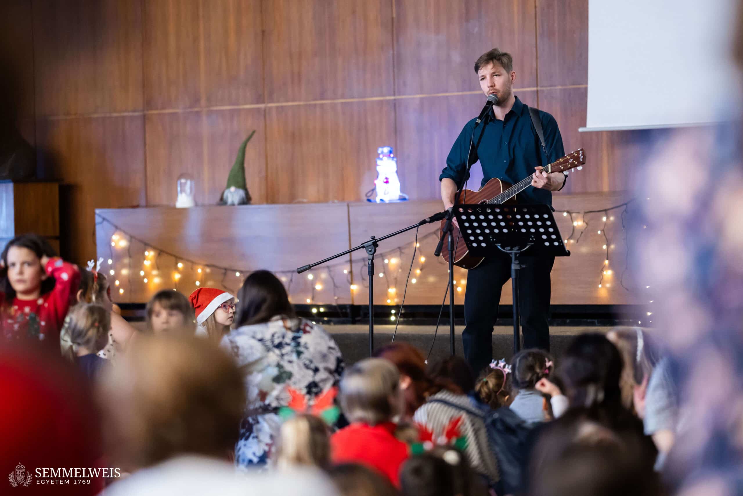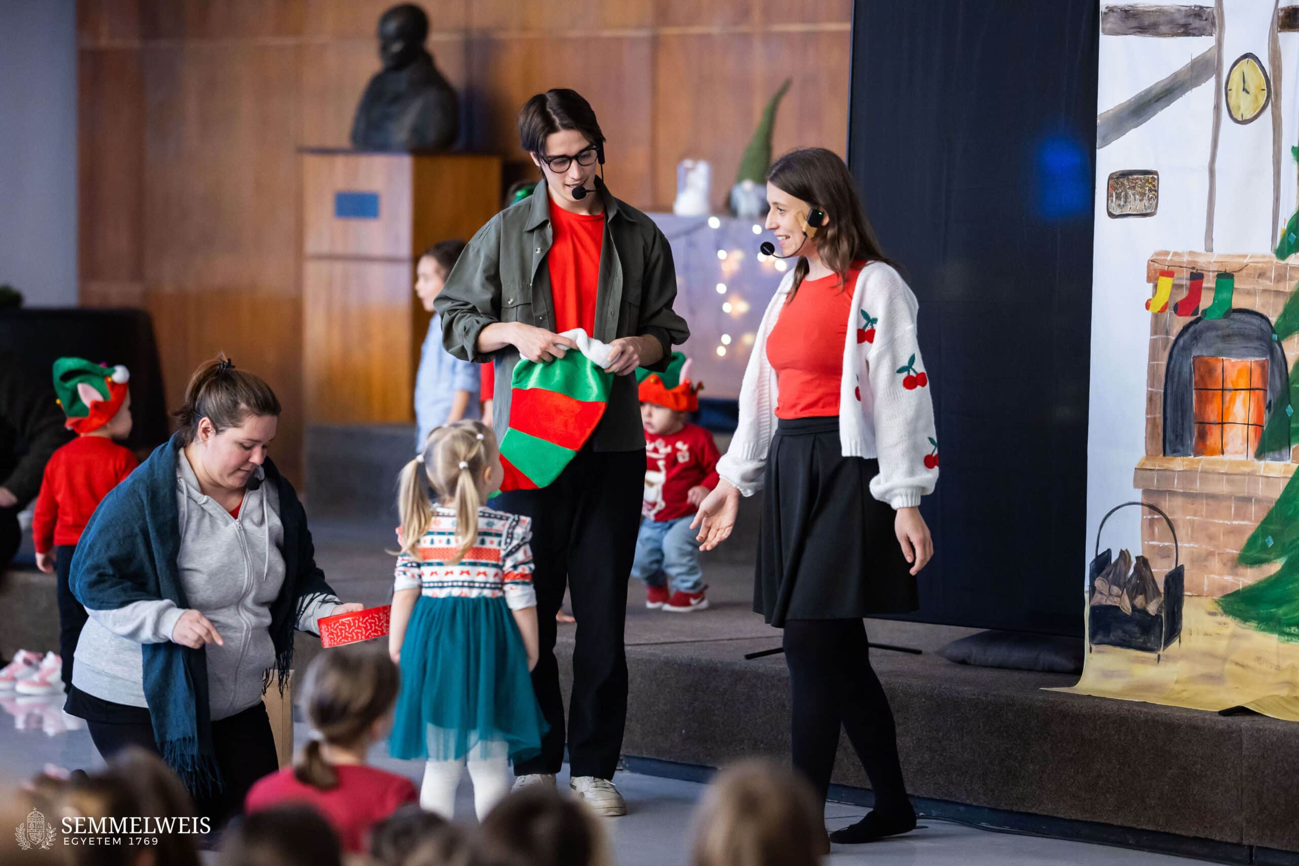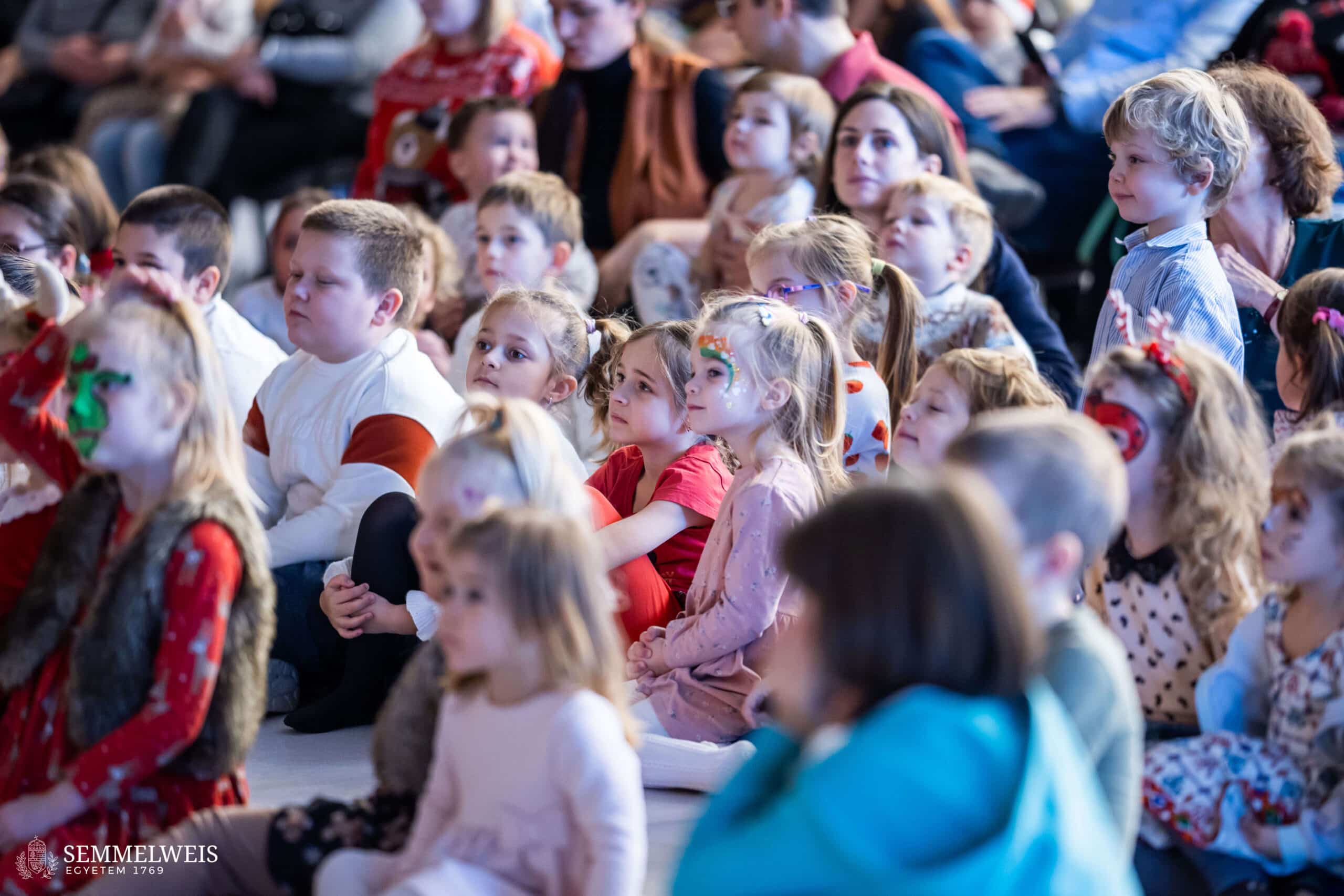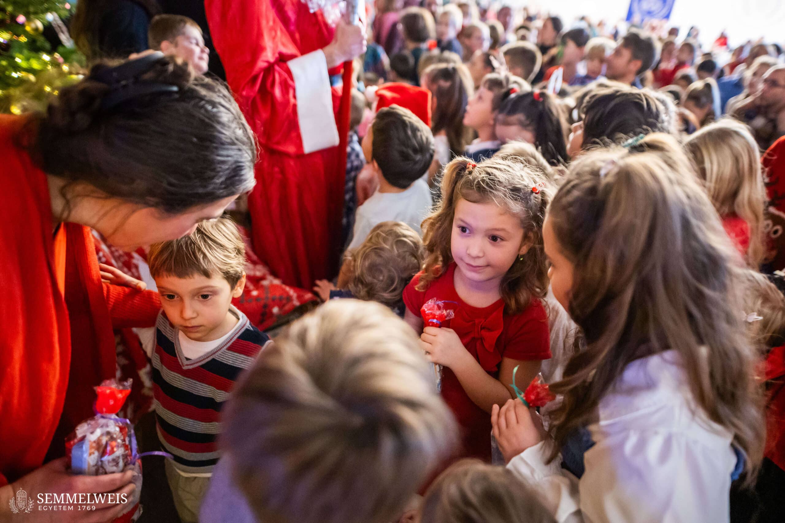 A programot az Eszter-lánc zenekar vidám koncertje nyitotta meg, amely percek alatt táncra csábította a kicsiket. Ezt a Száncsengő című gyermek-színdarab követte a Buborék Színház előadásában, amelynek mesés jelenetei még inkább megalapozták az ünnepi hangulatot. A közös éneklés már hagyományosan a Mikulás érkezését vezette fel, és Rektor úr invitálására dél után pár perccel meg is jelent a piros ruhás vendég, akit óriási lelkesedéssel fogadtak.