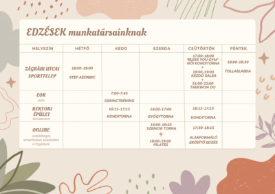 Az edzések (a tollaslabda kivételével) munkatársaink számára ingyenesek.