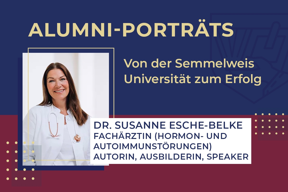 Im neuesten Teil unserer Alumni-Interviewreihe erzählt Dr. Susanne Esche-Belke, Gründerin einer Berliner Privatpraxis und einer Online-Praxis für integrative Medizin mit Schwerpunkt Hormon- und Autoimmunstörungen, erfolgreiche Buchautorin, Ausbilderin und Speaker darüber, was ihr die Semmelweis Universität bedeutet und wie sich ihre Karriere entwickelt hat.
