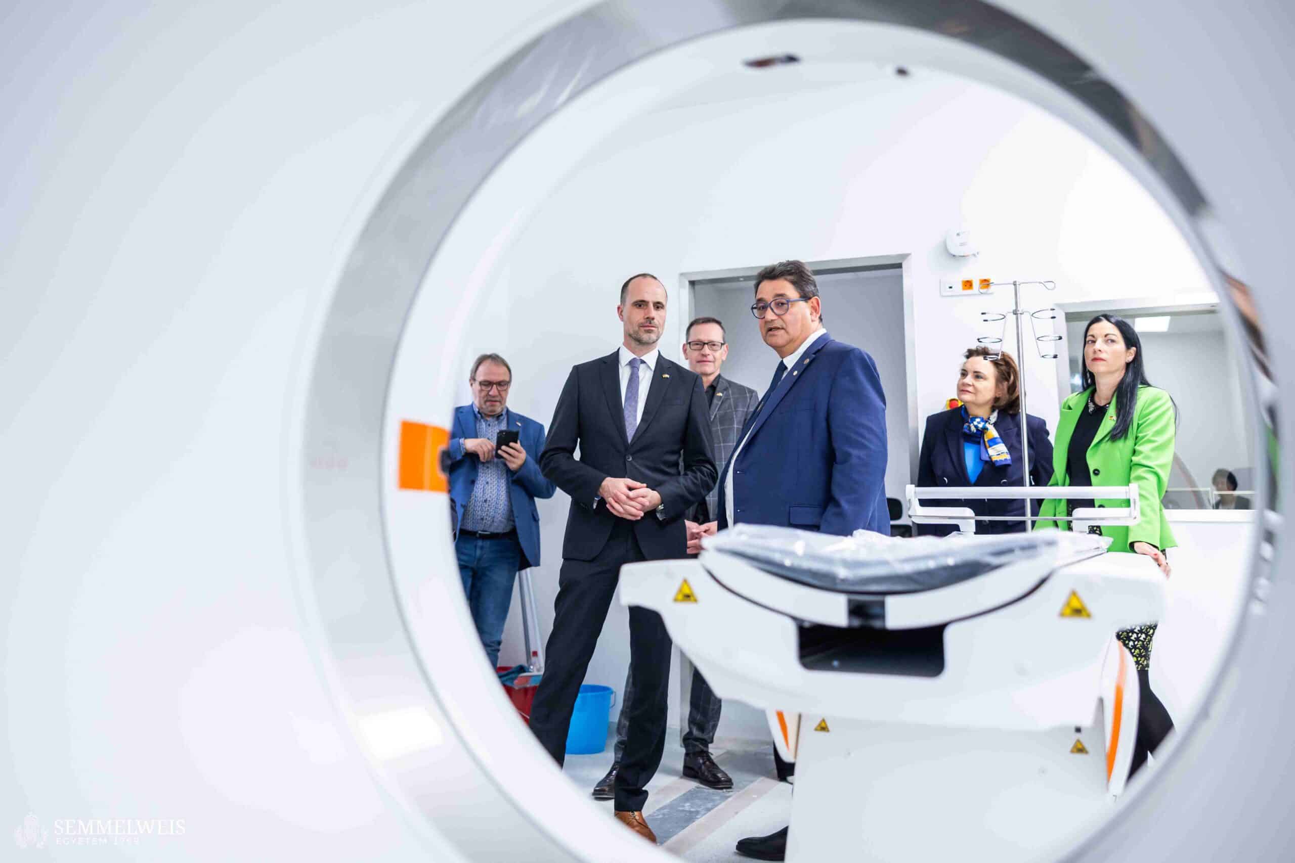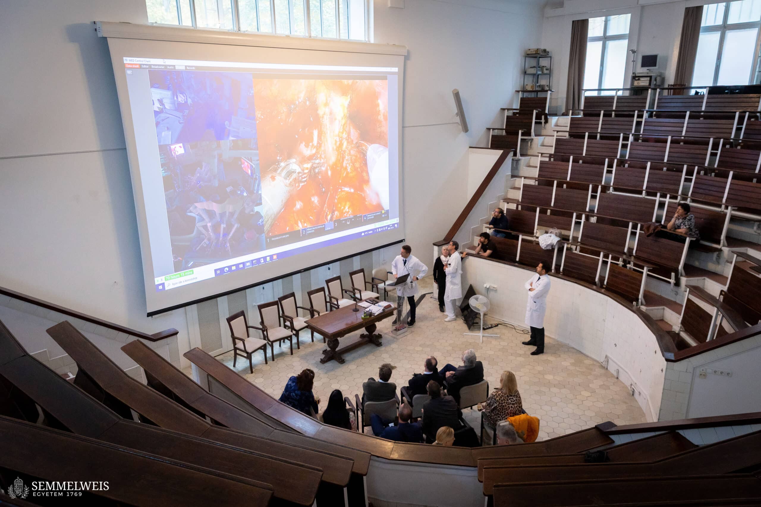 Ein wichtiger Programmpunkt war der Besuch der Klinik für Chirurgie, Transplantation und Gastroenterologie, wo die Delegationsmitglieder eine Vorstellung von Dr. Gergely Huszty, Universitätsdozent und Facharzt für Chirurgie über die Tätigkeit der Klinik erhielten, und sie konnten unter der Leitung von Dr. Péter Nyírády, Dekan der medizinischen Fakultät und Direktor der Klinik für Urologie und seiner Kollegen, Dr. Tamás Fazekas, Dr. András Kubik, Fachärzte der Klinik die Arbeit des Da Vinci roboter-assistierten Operationssystems während einer Operation beobachten.