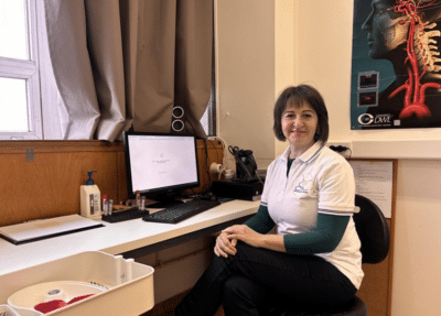 Fogadom a résztvevőket, vért veszek, szemfenékfotót készítek, illetve a résztvevők vizsgálatokon való gördülékenyebb haladását koordinálom.