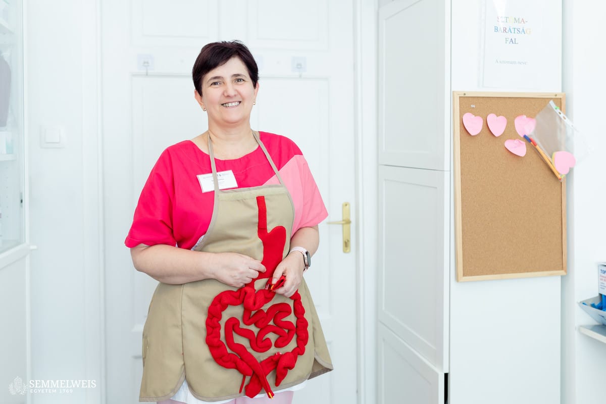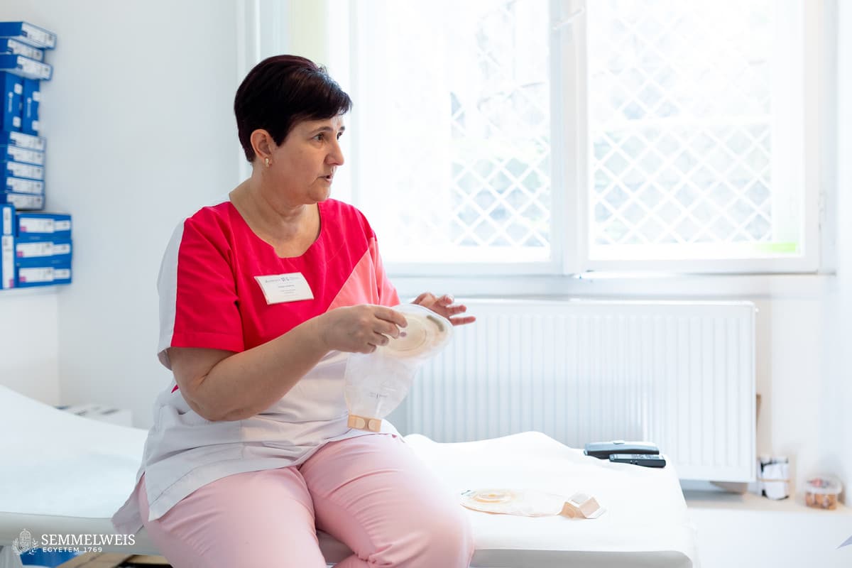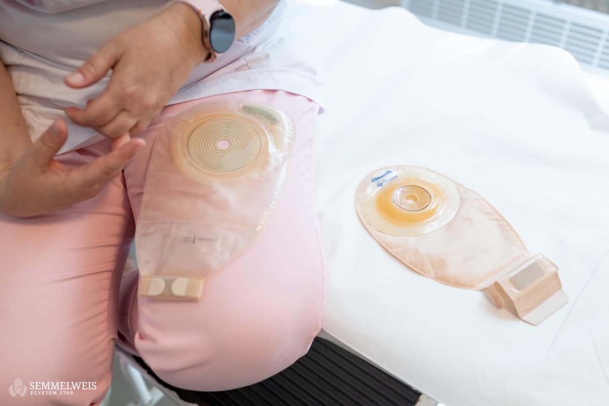 Stoma nurses begin educating their patients in practice one or two days after surgery. “We use a mirror to show patients the opening in their abdominal wall – the stoma – as it is important for them to see what it should look like. We teach them how to empty and replace the pouch. All the necessary equipment is available in the stoma care room for practice. If their four- to five-day hospital stay is not enough for patients to master the steps perfectly, we are always available to them on the phone or in person at short notice, should they need immediate assistance,” emphasized Andrea Orbán. The department staff also asks patients for feedback when removing sutures. At this point, they refine the patients’ movements and adjust the device if necessary. According to her, most of the work involved in stoma therapy is educational, with the remainder focused on combating complications. They also work closely with surgeons, pediatric surgeons, gastroenterologists, urologists, dieticians, physiotherapists, and psychologists.