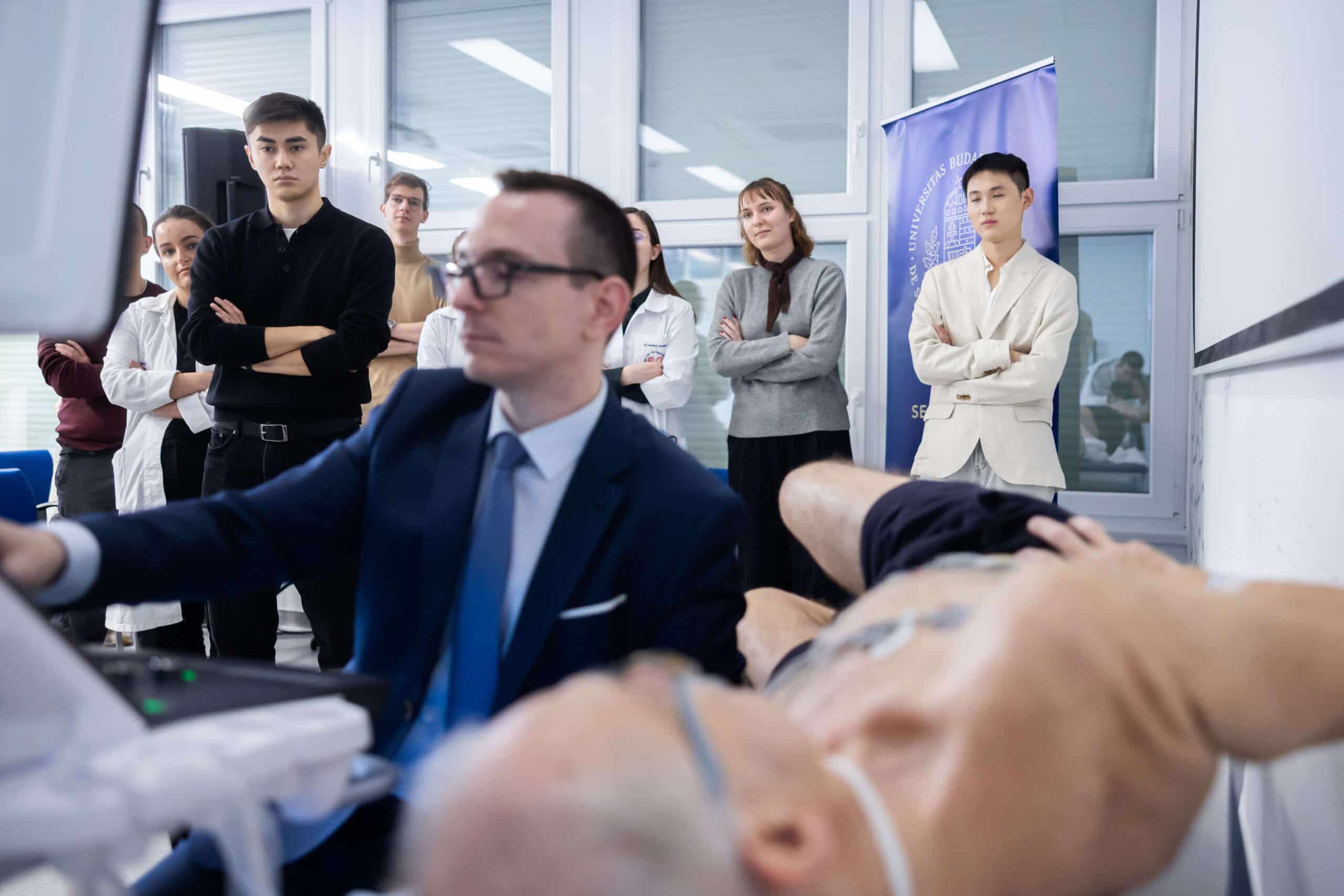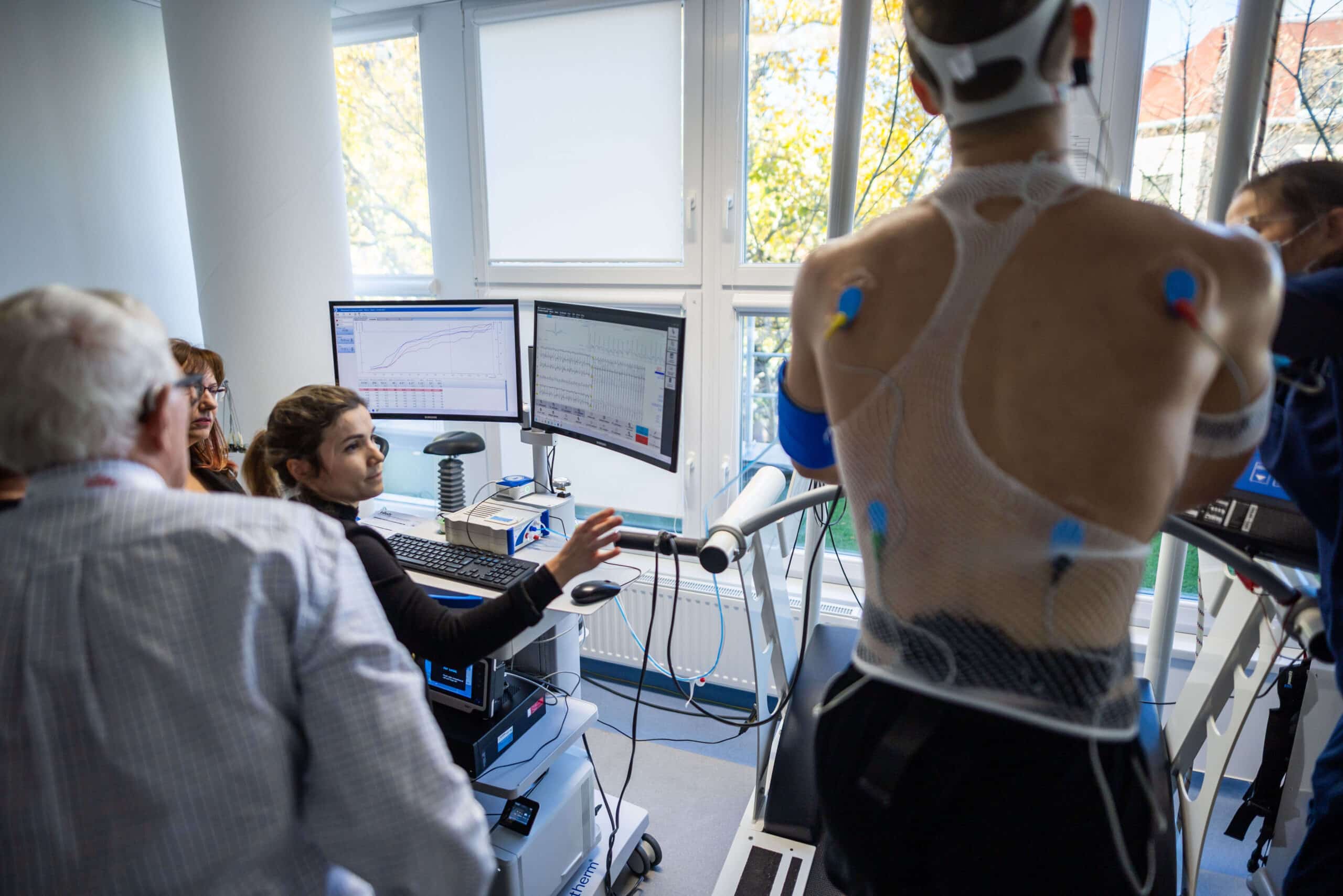 As part of the program, five workshops were held in addition to the theoretical sessions. The workshops focused on stress tests in cardiology, 3D echocardiography, pulsed-field ablation (Beat AF study), as well as cardiovascular imaging (CCTA, CMR, MRA); there was also a practical session that involved a guided visit to the Scientific Research Laboratory of the Városmajor Heart and Vascular Center. At the cardiopulmonary exercise testing workshop (Stress Tests in Cardiology), participants had the opportunity to observe the examination of a professional basketball player. The workshop was joined by Dr. Thomas G. Allison, Consultant in the Department of Cardiovascular Medicine and Cardiovascular Surgery and Professor of Medicine in the Mayo Clinic School of Medicine. He is one of the most iconic figures in exercise physiology, having analyzed close to 100,000 tests over nearly 50 years of professional experience, pointed out cardiologist and sports physician Dr. Nóra Sydó, Assistant Professor at the Városmajor Heart and Vascular Center. She learned all the elements of performing and evaluating cardiopulmonary exercise tests during her visits at the Mayo Clinic. Thanks to this experience, Semmelweis University’s Városmajor Heart and Vascular Center has been performing cardiopulmonary exercise tests at a high professional level similar to the Mayo Clinic for more than ten years.