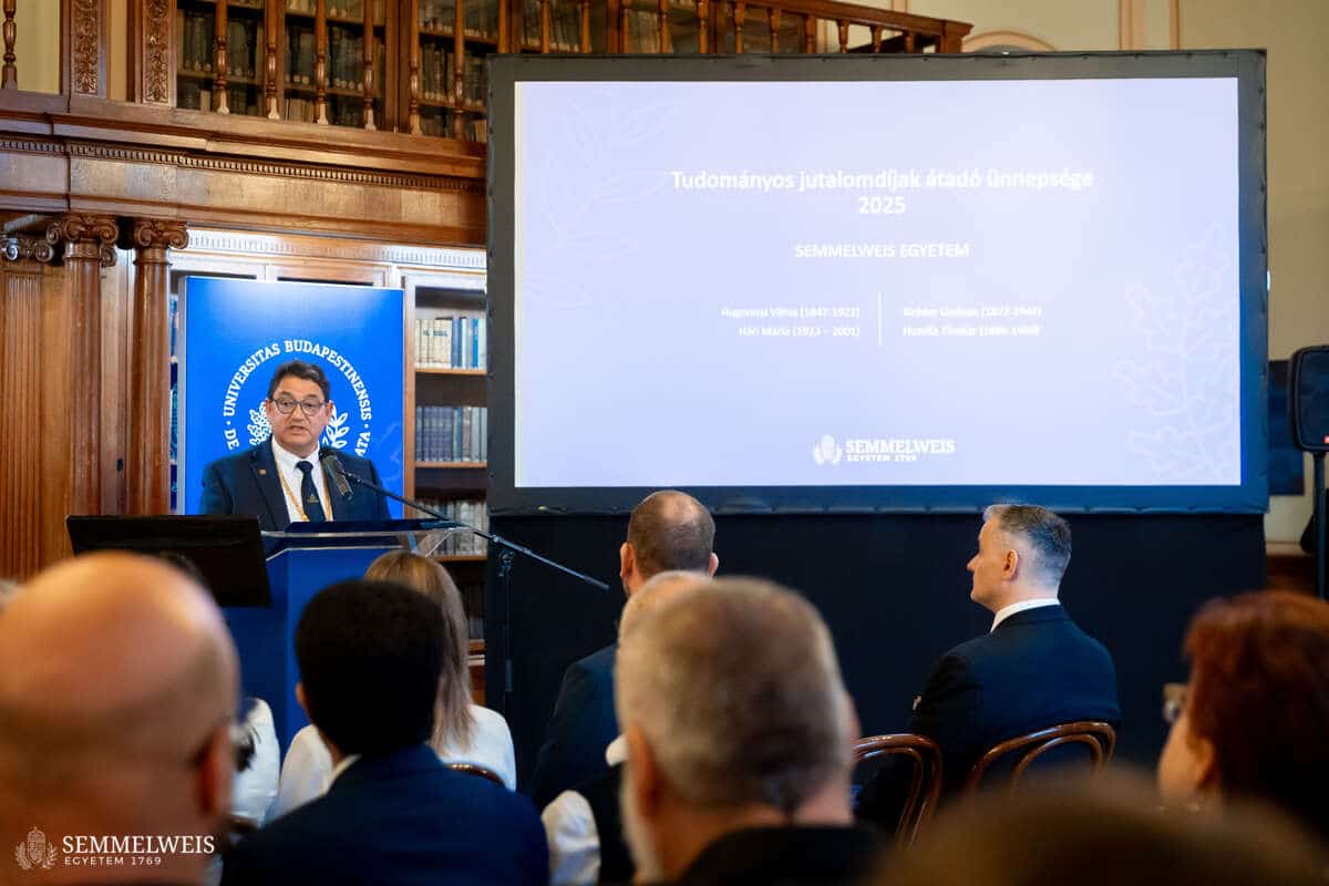 “Courageous curiosity, and the desire for knowledge, cognition, and continuous development are what drive both science and humanity forward,” said Dr. Béla Merkely, Rector of Semmelweis University, at the presentation of the institution’s scientific prizes in the Semmelweis Salon. He also emphasized that these values were necessary for the university, which is celebrating its 256th anniversary this year, to become the leading medical and health sciences institution in the country and the region, maintaining its position among the world’s top 300 universities. They also contributed to the university’s reputation reaching the International Space Station through the provision of outstanding medical and health support for the Hungarian Astronaut Programme, the rector added.