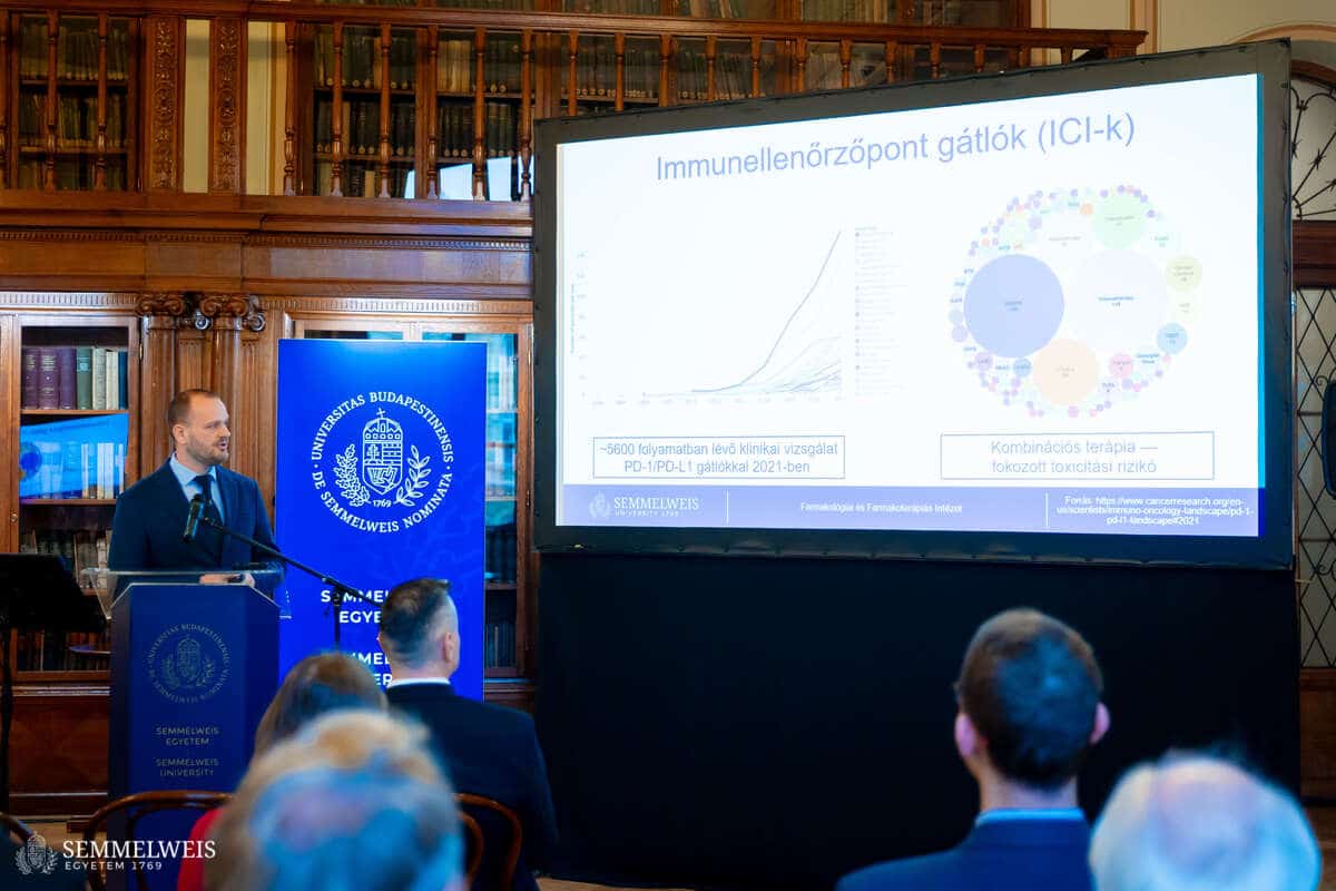Anti-tumor immunotherapies have revolutionized oncology, significantly increasing patient survival rates, but at the same time, it is becoming increasingly clear that they increase the risk of cardiovascular disease. This year’s recipient of the Huzella Medal, Dr. Zoltán Varga – Deputy Scientific Coordinator and Associate Professor at Semmelweis University’s Department of Pharmacology and Pharmacotherapy – and his Lendület ‘Momentum’ Research Group are investigating this problem. In his laudation, he was praised for his unique research perspective, which always seeks to put a precise understanding of molecular processes at the service of clinical practice. The research group’s goal is to develop strategies that prevent heart damage without reducing the anti-tumor efficacy of immunotherapy.