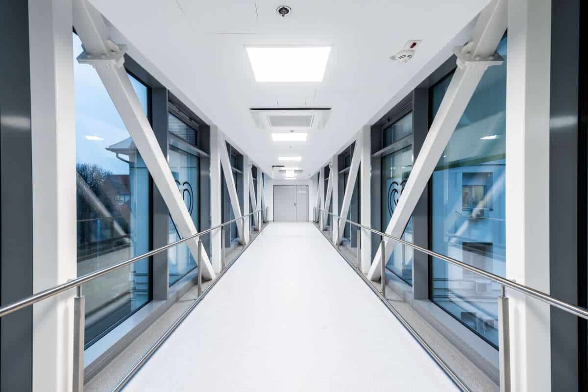 The high-tech diagnostic imaging center in the new wing – with two CT scanners and one MRI – and the state-of-the-art hybrid interventional and electrophysiology laboratory open up new horizons for the clinic’s healthcare activities. The ten new outpatient rooms not only make it possible to treat more patients but also provide a significantly more comfortable environment for them. Separate examination rooms and waiting rooms have been set up for heart transplant patients, making outpatient care even safer for immunosuppressed patients who have undergone organ transplants. Patients who have undergone heart transplants or require circulatory support are treated in a separate eight-bed intensive care unit. The new student spaces, including the lecture hall and PhD research room, further raise the standard of medical and health sciences education.