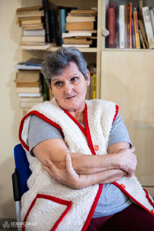 “Music, as an art form, cannot be standardized like a chemical compound or a painkiller since its effect is different for everyone even if we play the same music every time; however, it takes effect immediately at the level of the unconscious,” explains Zsófia – who has been practicing music therapy at the department for nearly 30 years – a little later in the music therapy room. “At the beginning of the session, even before the instructions to move are given, the patients start stirring; and when they hum, the flow of emotions begins. We try to bring these feelings to the surface and make them conscious,” she adds. “Not to mention that in a session like this, it’s not just the music, but also the fact of being together, the therapeutic relationship, and the therapeutic space that have an effect,” Zsolt notes.