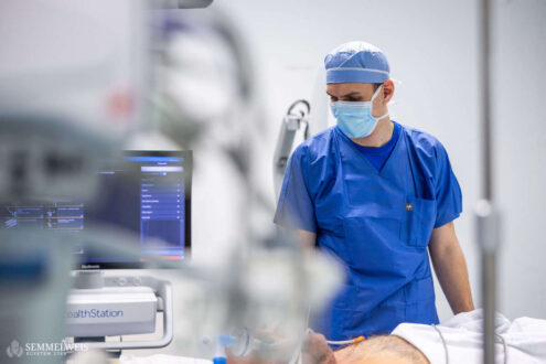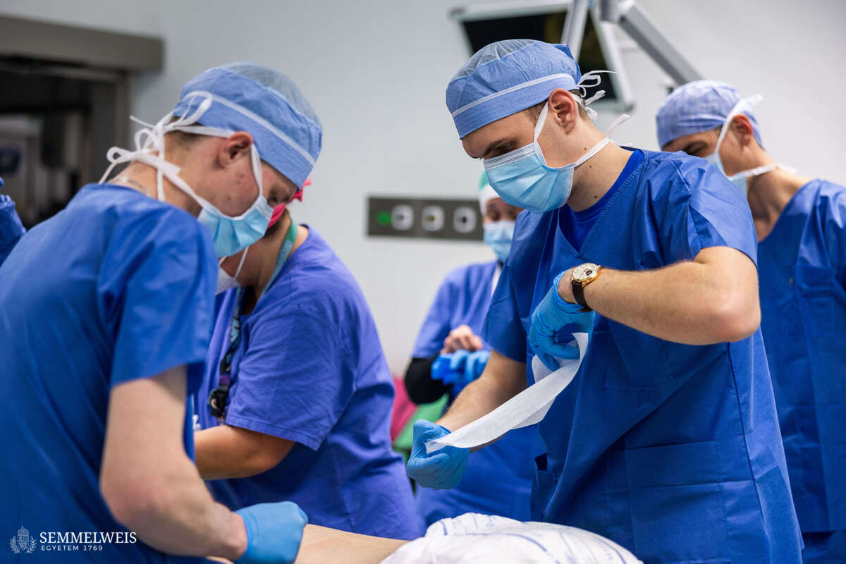 At Semmelweis University, third-year or higher-year medical students at ÁOK can apply for four types of allied health professional positions as part of the “Clinical Work” course. This gives students the opportunity to take on part-time clinical work as assistant nurses, operating room assistants, patient escorters, and – in the Institute of Laboratory Medicine and the pathology institutes – as medical assistants, all under a healthcare service contract.