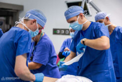 At the Department of Traumatology, Csongor and his fellow students start their day with a briefing, during which they discuss the day’s surgical schedule and related tasks with the head surgical assistant. The department has three operating rooms, which are specially equipped surgical suites where injuries such as bone fractures and joint injuries are treated.