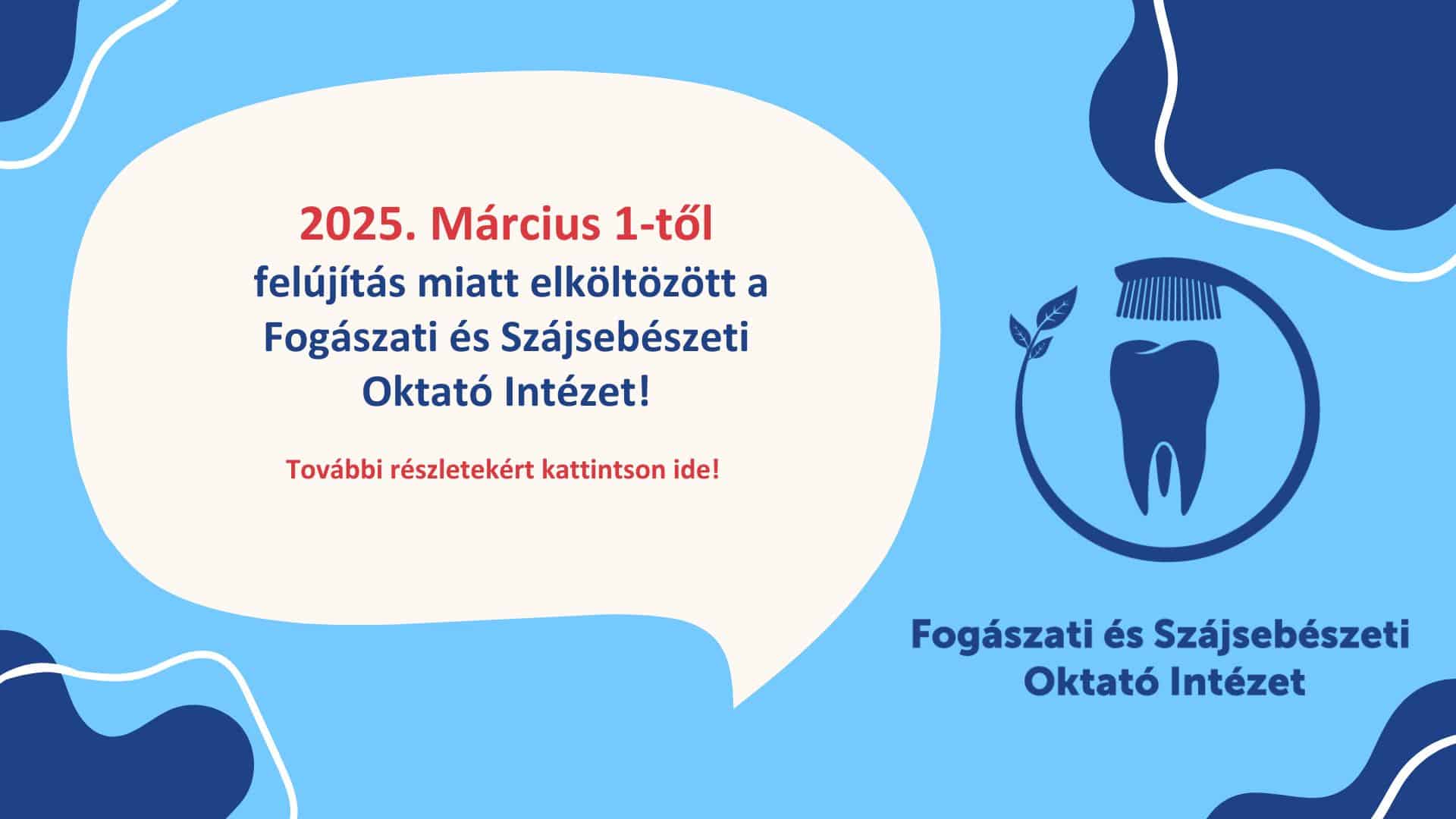 A Fogászati és Szájsebészeti Oktató Intézet a Központi Stomatológiai Intézet jogutódjaként 2013. március 31-én létesült. A Fogorvostudományi Kar új, legnagyobb létszámú és alapterületű intézete, amely a Semmelweis Egyetembe integrálódva népegészségügyi fogászati centrummá vált. Intézetünkben a prevenciótól, a sürgősségi ellátáson át az implantációs kezelésekig folyik ellátás, így fogorvoslás teljes vertikumát felölelő, fogászati problémákkal és nyálkahártya elváltozásokkal foglalkozunk. Az FSZOI a betegellátás, a fogorvostanhallgatók és orvosok oktatása mellett a magyar asszisztensi és dentálhigiénikusi képzésben is jelentős szerepet tölt be.