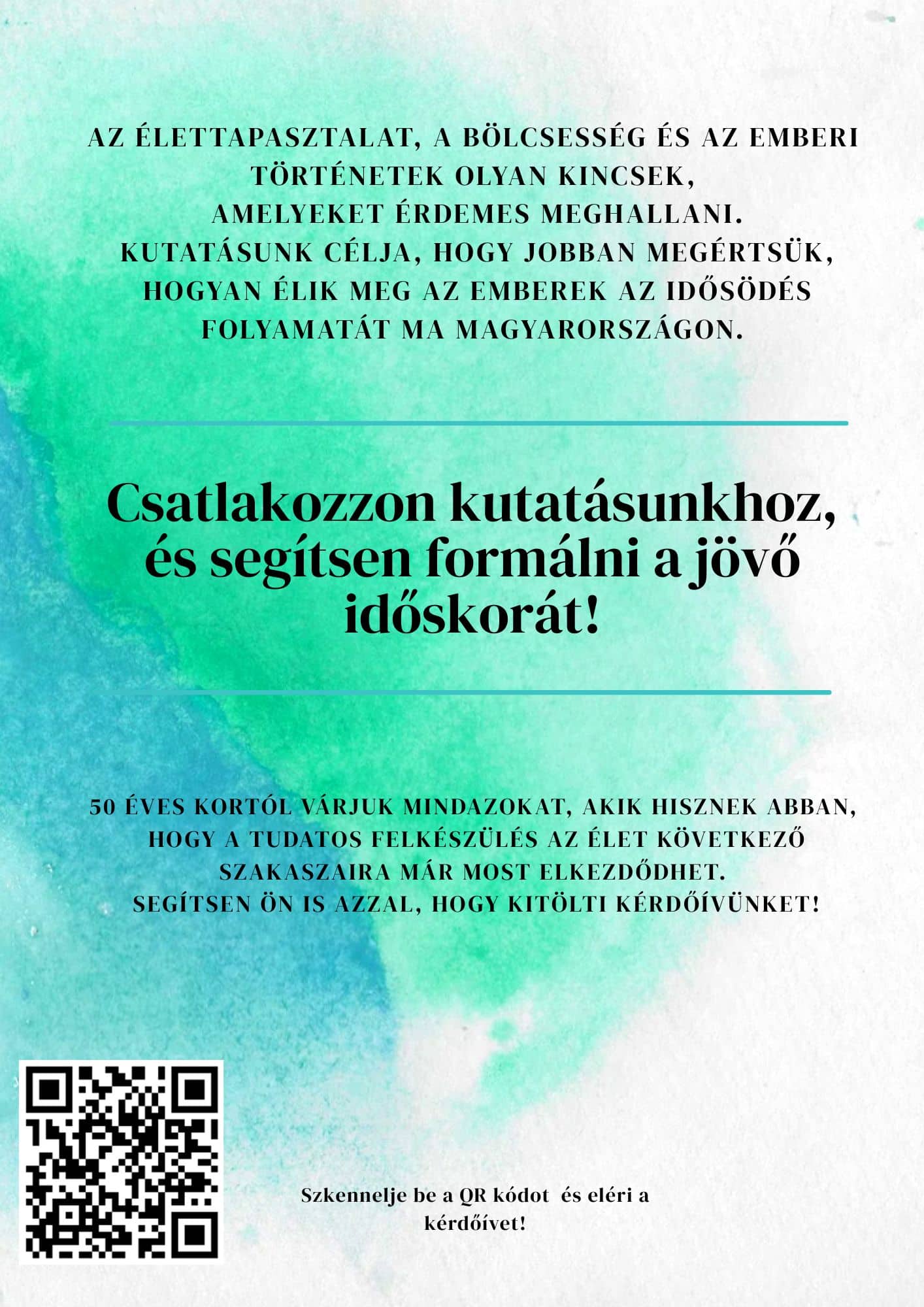 kutatásunk célja, hogy jobban megértsük hogyan élik meg az emberek az idősödés folyamatát ma Magyarországon.