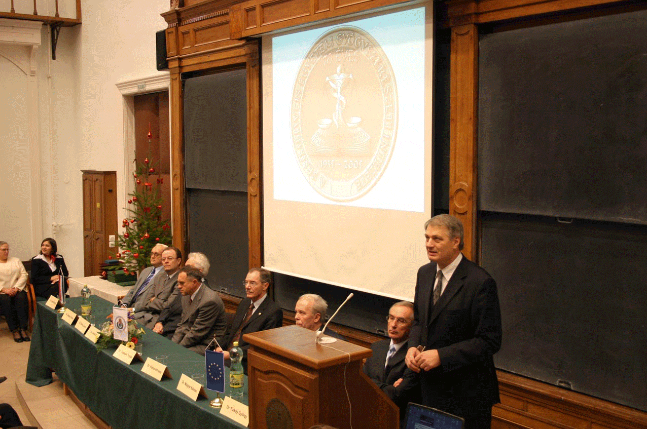 A Semmelweis Egyetem Gyógyszerészeti Intézetének 70 éves fennállását 2005. december 16-án ünnepélyes körülmények között ünnepelték meg a Gyógyszerésztudományi Karon. A Jubileumi Ünnepségen megjelent Egyetemünk Rektora, a Gyógyszerésztudományi Kar Dékánja, számos egyetemi reprezentáns, továbbá a IX. kerület Polgármestere, több akadémikus, illetve társegyetemek illusztris vendégei, valamint a szakma nagyszámú reprezentánsa. A családias hangulatú ünnepségen, a hetven éves Intézet tantermében, megjelentek a Gyógyszerészeti Intézet régi és jelenlegi munkatársai. Az ünnepi köszöntések és beszéd után számos kitüntetést adtak át. Az ünnepség Hőgyes Endre és Mozsonyi Sándor professzorok fali szobrainak koszorúzásával folytatódott, amit a felújított Intézet bemutatása zárt. Az évforduló tiszteletére reprezentatív kivitelben készült emlékkönyvet vehettek át az ünnepség résztvevői, valamint jubileumi emlékplakett is készült a jeles esemény alkalmából.