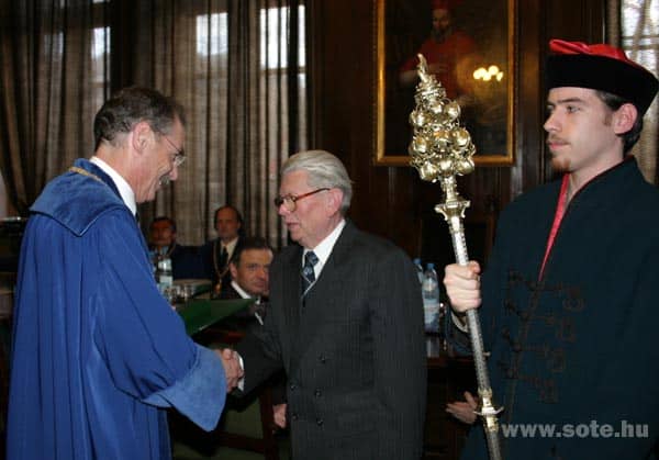 A második ünnepi napirendi pontként Tulassay Tivadar rektor úr laudációja után Szende Béla professzor úr vette át a Magyar Köztársasági Érdemrend Lovagkeresztje (polgári tagozata) kitüntetést.