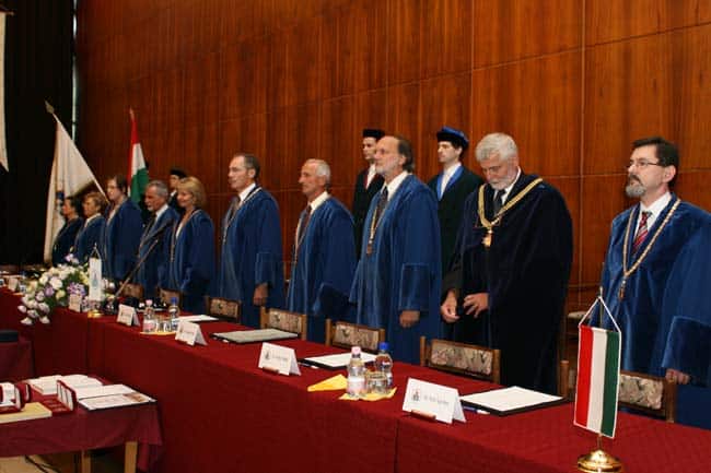 A Gaudeamus igitur kora délután hangzott fel. A tanszékvezetésről leköszönő professzorok méltatása és az arany pecsétgyűrűk átadása előtt dr. Papp Zoltán egyetemi tanár, az I. sz. Szülészeti és Nőgyógyászati Klinika igazgatója tartott búcsúbeszédet. Az ünnepségen sor került a professzor emeritus címek, a Magyar Felsőoktatásért Emlékplakett, a Pedagógus Szolgálati Emlékérem, a véradói díjak, a habilitációs oklevelek és a docensi kinevezések átadására. Az eseményt Mészáros Zsolt III. éves ÁOK hallgató zongora-előadása (Liszt Ferenc: Villa d’Este szökőkútjai és Rahmanyinov: g-moll prelűd) és Takács Bence Ervin előadóművész, TF-es Ph.D. hallgató szavalata (Buda Ferenc: Himnusz haza) tette még emlékezetesebbé.