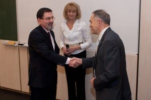 Ünnepi tudományos előadást tartott dr. Noszál Béla két volt PhD-sa, dr. Mazákné dr. Kraszni Márta, a Gyógyszerészi Kémiai Intézet docense, valamint dr. Mirzahosseini Arash tanársegéd. Eddigi kutatásainak összefoglalása után dr. Mazákné dr. Kraszni Márta az intézet valamennyi TDK-sa és PhD-sa nevében köszönetet mondott a professzornak az általa megteremtett személyes légkörért. Dr. Mirzahosseini Arash eredményei ismertetése után kiemelte: dr. Noszál Béla lelkesedést adott mindenkinek, hogy akár éjszaka is képesek legyenek dolgozni.
