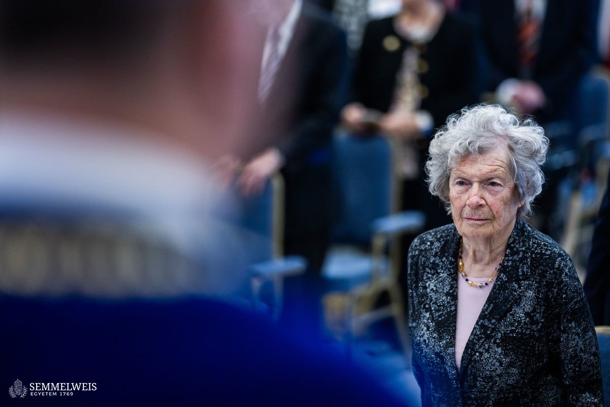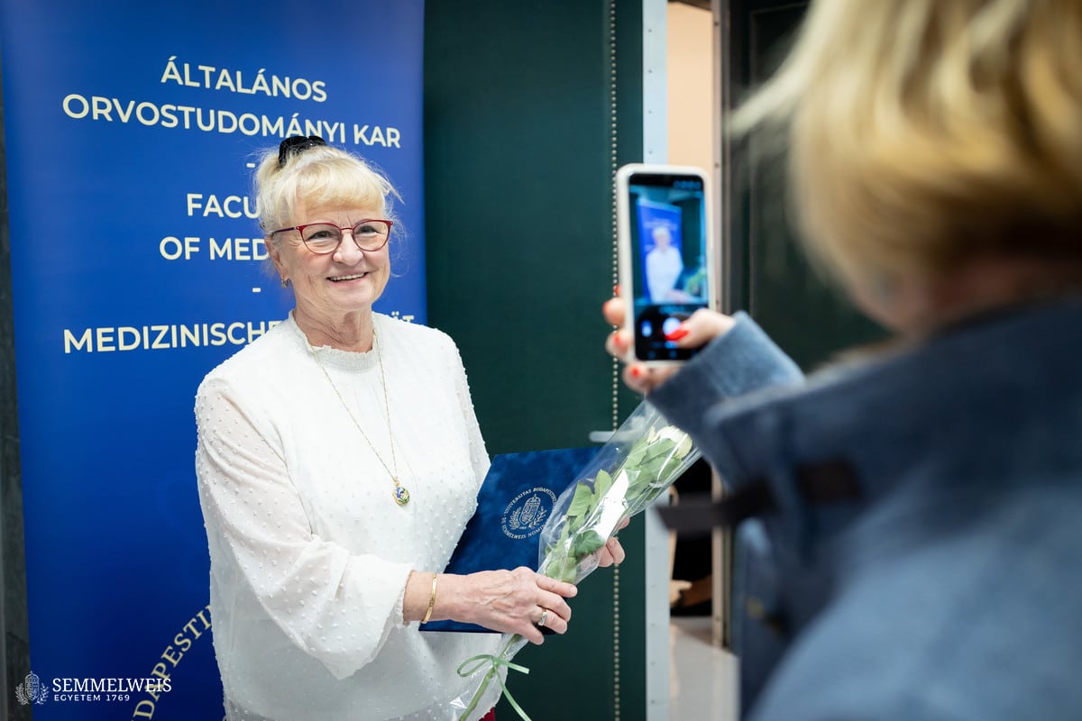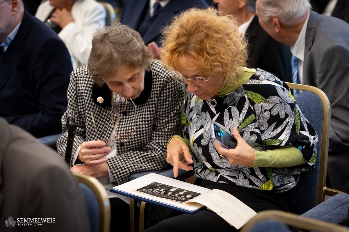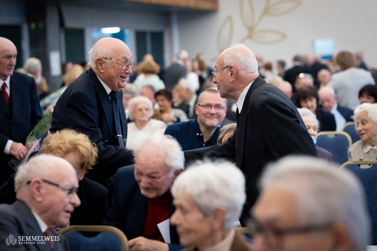 A filmvetítést követően dr. Merkely Béla rektor és dr. Nyirády Péter dékán átadták a díszokleveleket: összesen három platina, hat rubin, 45 vas, 75 gyémánt és 179 arany oklevet adományoztak idén a jubilánsoknak.