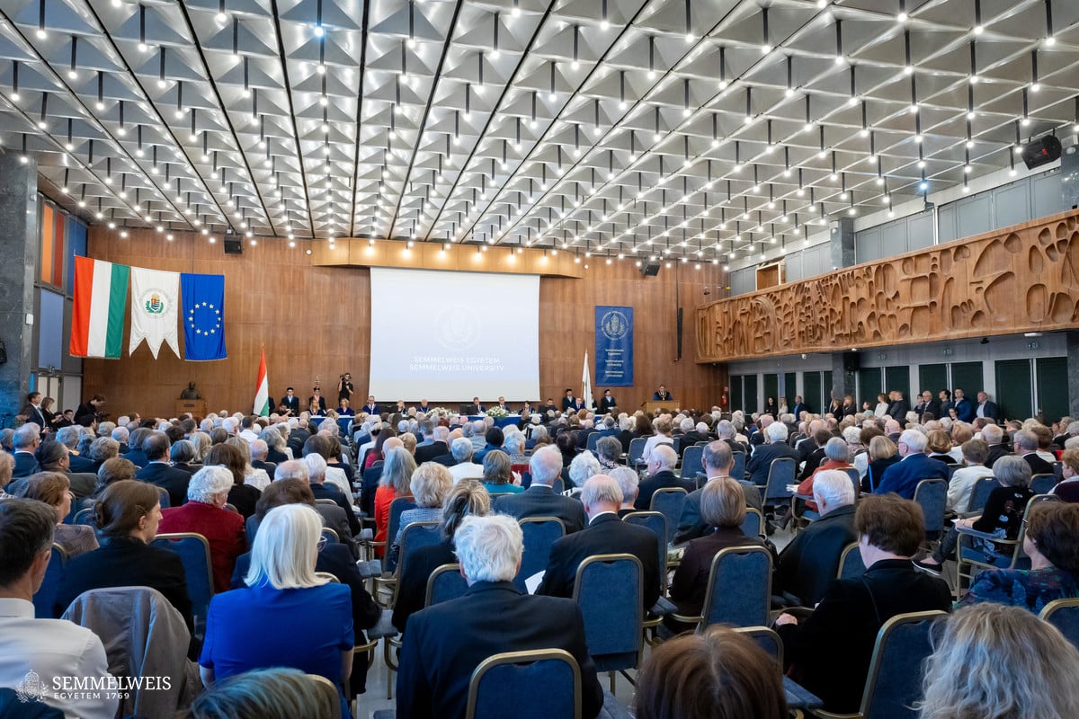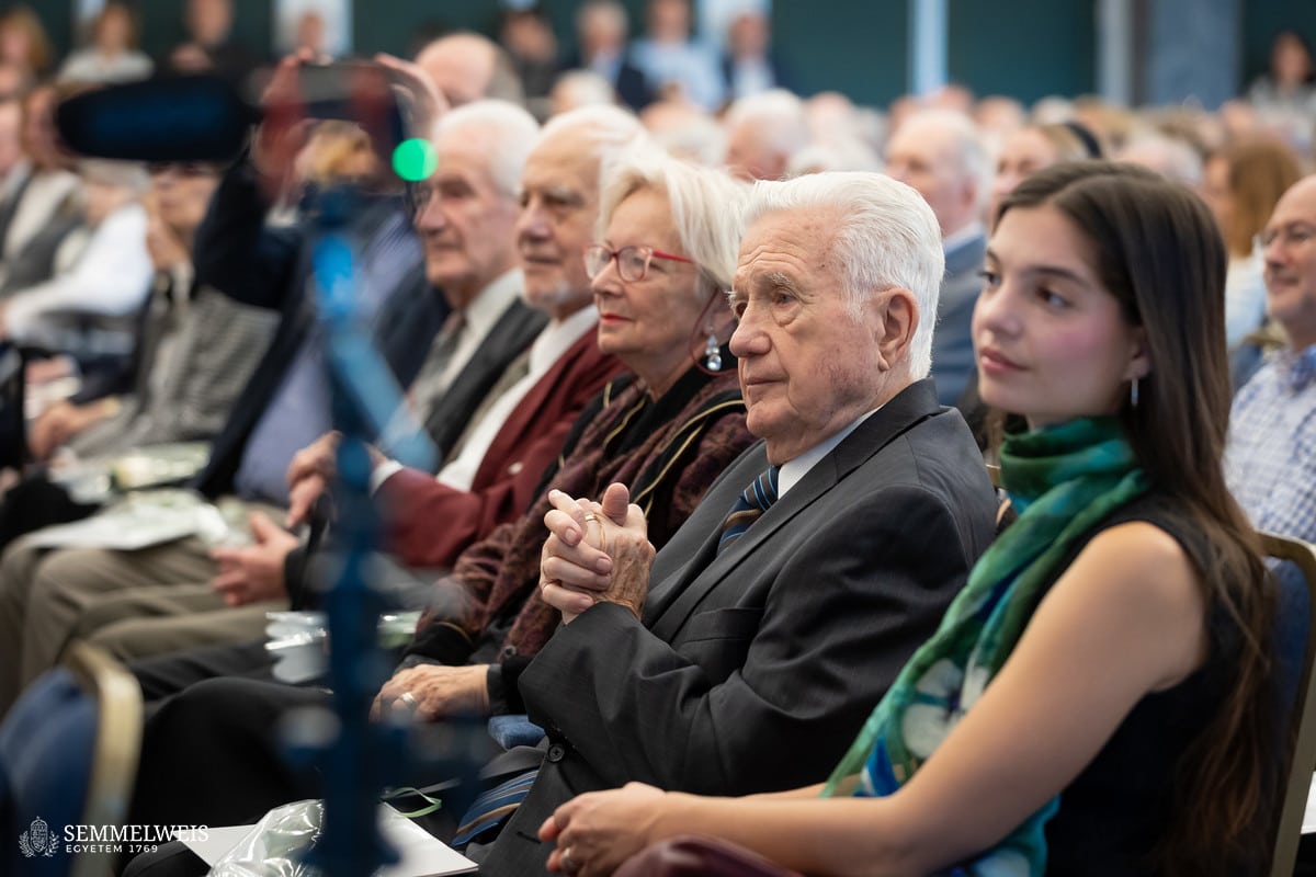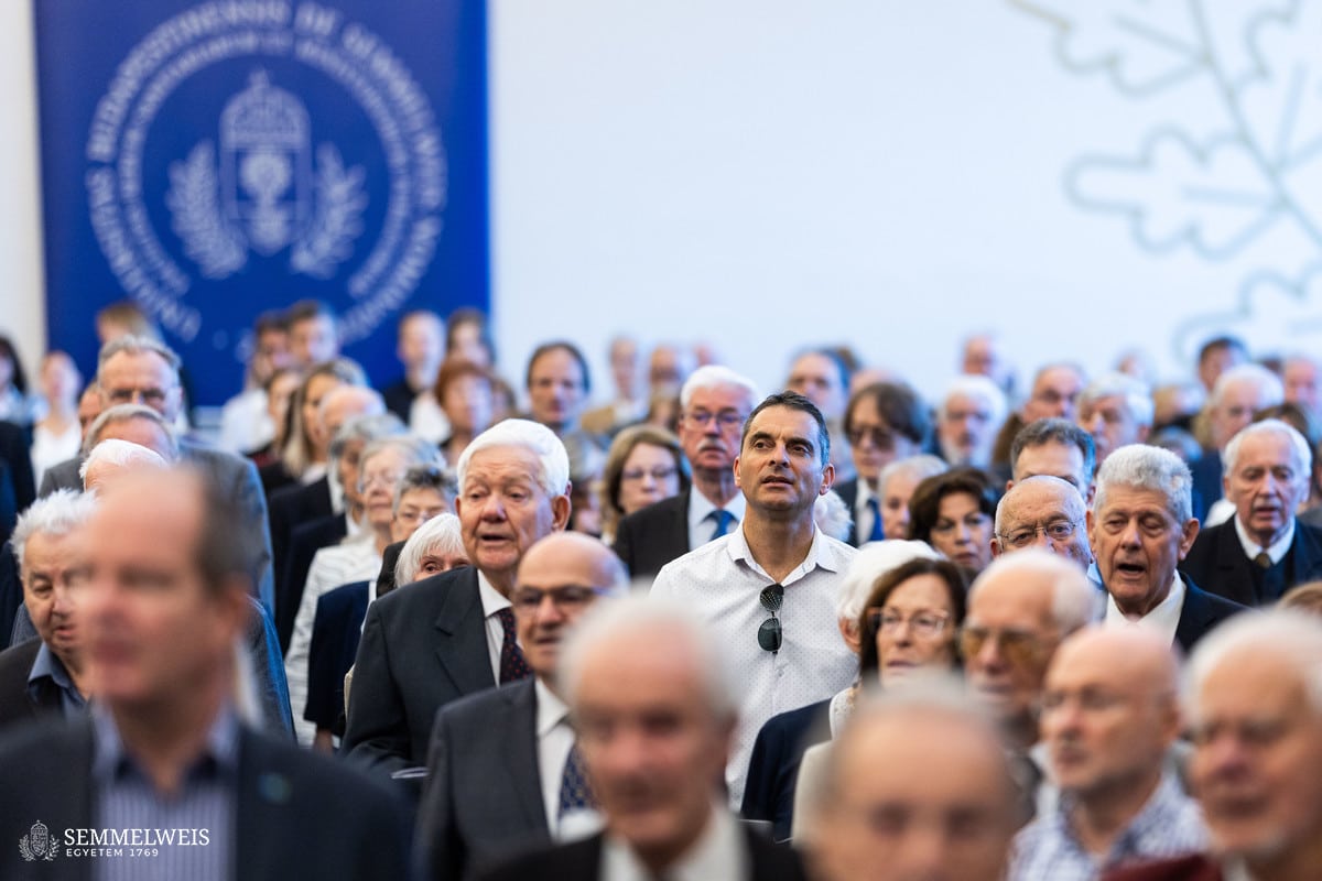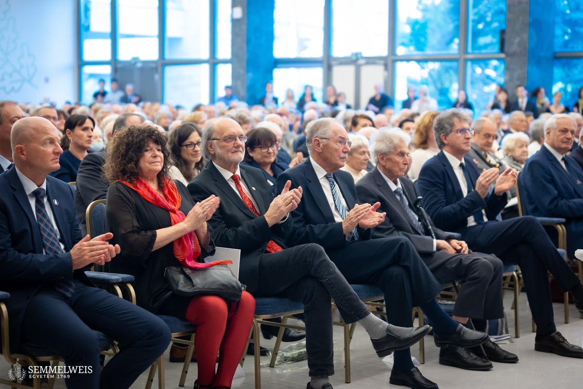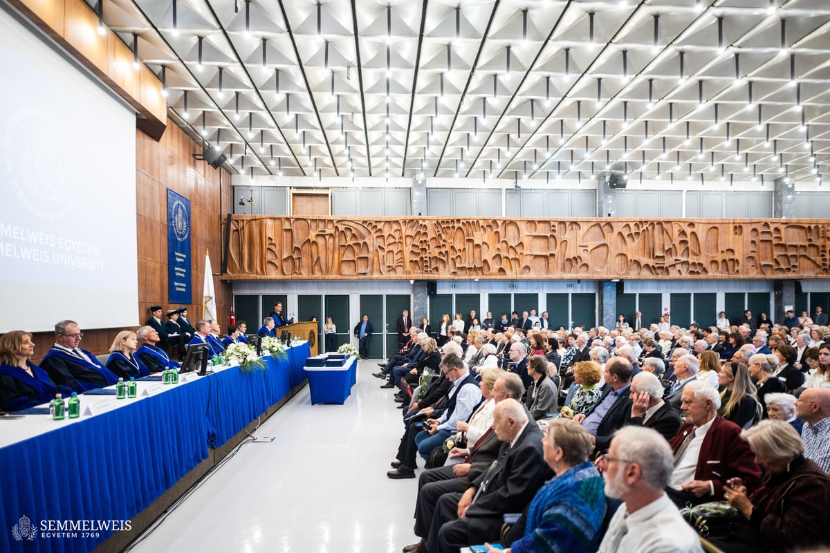 „A jó orvost nem csupán naprakész tudása és tapasztalata formálja, hanem lelke nemessége, hivatás iránti alázata, elkötelezettsége és az empátia. A jó orvos képes meglátni a diagnózis mögött az embert, és minden körülmények között a betege javát tartja szem előtt. Ezek az emberi és szakmai értékek nem tanulhatók tankönyvekből, csakis a mesterek példáján keresztül örökíthetők tovább” – szólt a mintegy 300 jubiláns orvoshoz dr. Merkely Béla rektor. Önök, akik most itt vannak velünk, mind hozzájárultak ahhoz, hogy egyetemünk olyan legyen, amilyennek ma ismerjük és tiszteljük: az ország és a régió vezető orvos-egészségtudományi tudásközpontja – fogalmazott. A rektor emlékeztetett, hogy a Times Higher Education globális rangsora a világ 300 legjobbja közé sorolja az intézményt, szív- és érgyógyászatban pedig a 35. legjobbnak számít a US News számítása alapján. Ismertette, hogy az elmúlt években folyamatosan bővült az egyetem portfóliója: traumatológia, rehabilitáció, idegsebészet, neurointervenció, valamint reumatológiai-immunológiai ellátás került a profilok közé. Az országban elsőként itt történt meg az orvos- és egészségügyi képzés kurrikulumának reformja a gyakorlati tudás középpontba állításával. Dr. Merkely Béla kiemelte még a nemzetközi képzéseket és kapcsolatokat is.