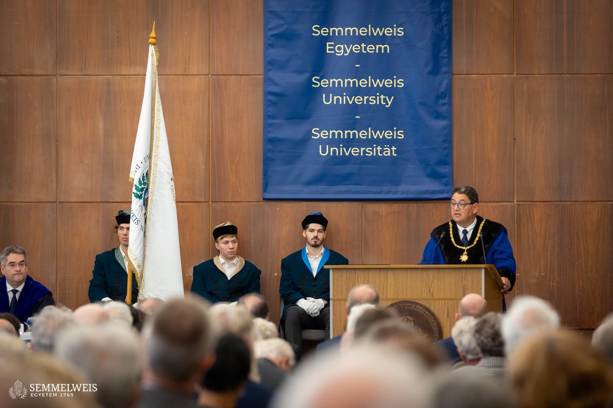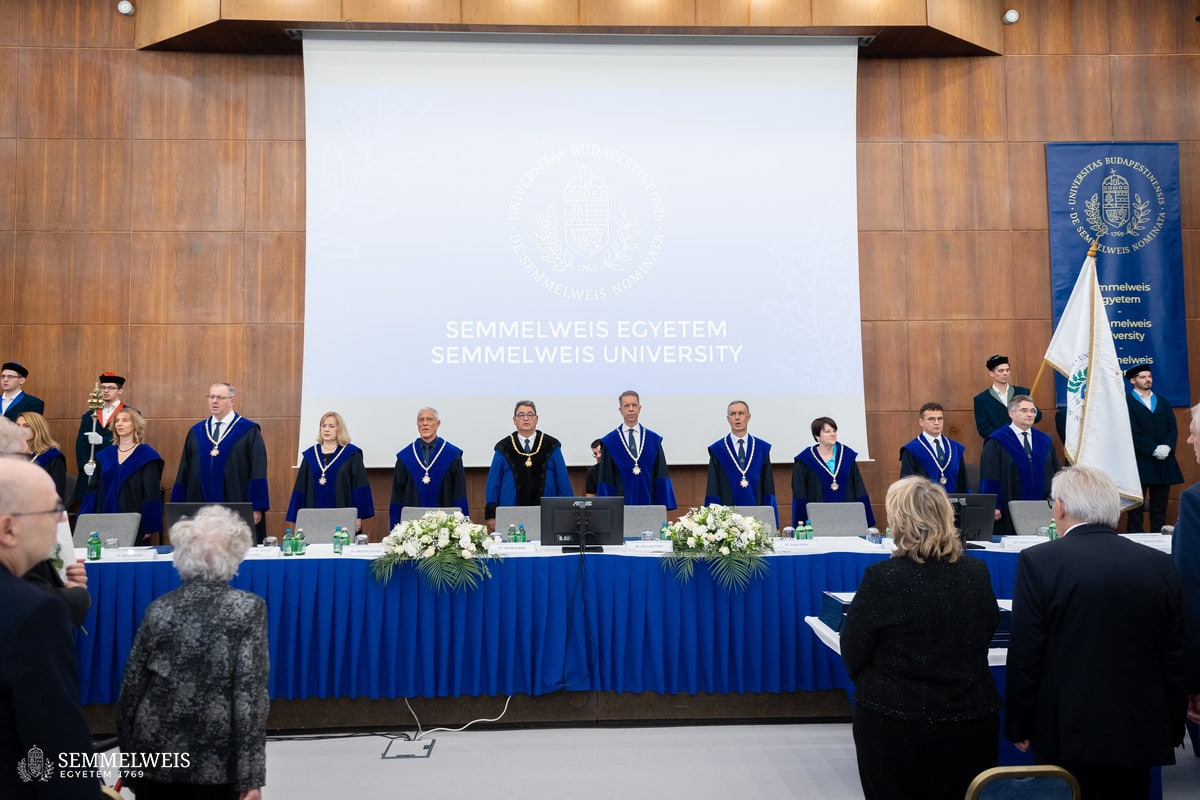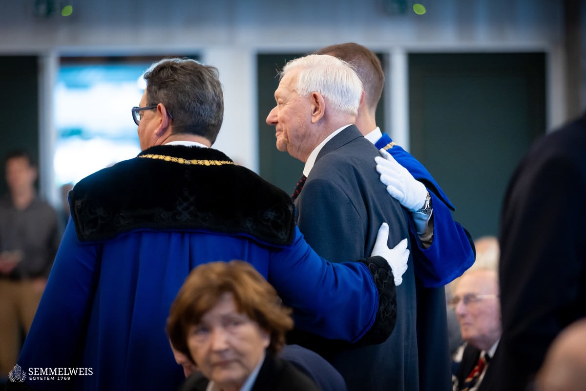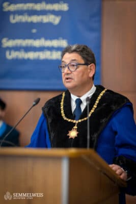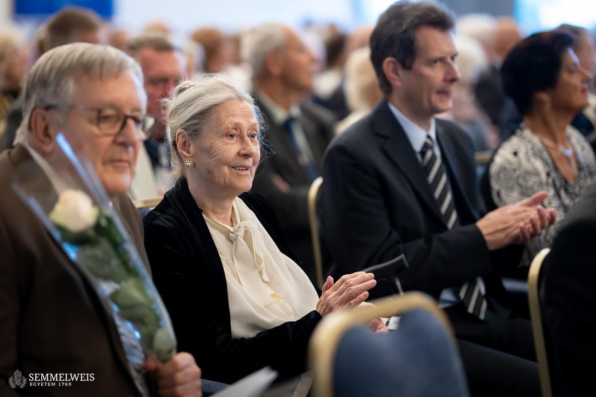 „A jó orvost nem csupán naprakész tudása és tapasztalata formálja, hanem lelke nemessége, hivatás iránti alázata, elkötelezettsége és az empátia. A jó orvos képes meglátni a diagnózis mögött az embert, és minden körülmények között a betege javát tartja szem előtt. Ezek az emberi és szakmai értékek nem tanulhatók tankönyvekből, csakis a mesterek példáján keresztül örökíthetők tovább” – szólt a mintegy 300 jubiláns orvoshoz dr. Merkely Béla rektor. Önök, akik most itt vannak velünk, mind hozzájárultak ahhoz, hogy egyetemünk olyan legyen, amilyennek ma ismerjük és tiszteljük: az ország és a régió vezető orvos-egészségtudományi tudásközpontja – fogalmazott. A rektor emlékeztetett, hogy a Times Higher Education globális rangsora a világ 300 legjobbja közé sorolja az intézményt, szív- és érgyógyászatban pedig a 35. legjobbnak számít a US News számítása alapján. Ismertette, hogy az elmúlt években folyamatosan bővült az egyetem portfóliója: traumatológia, rehabilitáció, idegsebészet, neurointervenció, valamint reumatológiai-immunológiai ellátás került a profilok közé. Az országban elsőként itt történt meg az orvos- és egészségügyi képzés kurrikulumának reformja a gyakorlati tudás középpontba állításával. Dr. Merkely Béla kiemelte még a nemzetközi képzéseket és kapcsolatokat is.