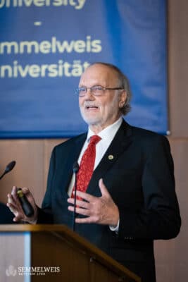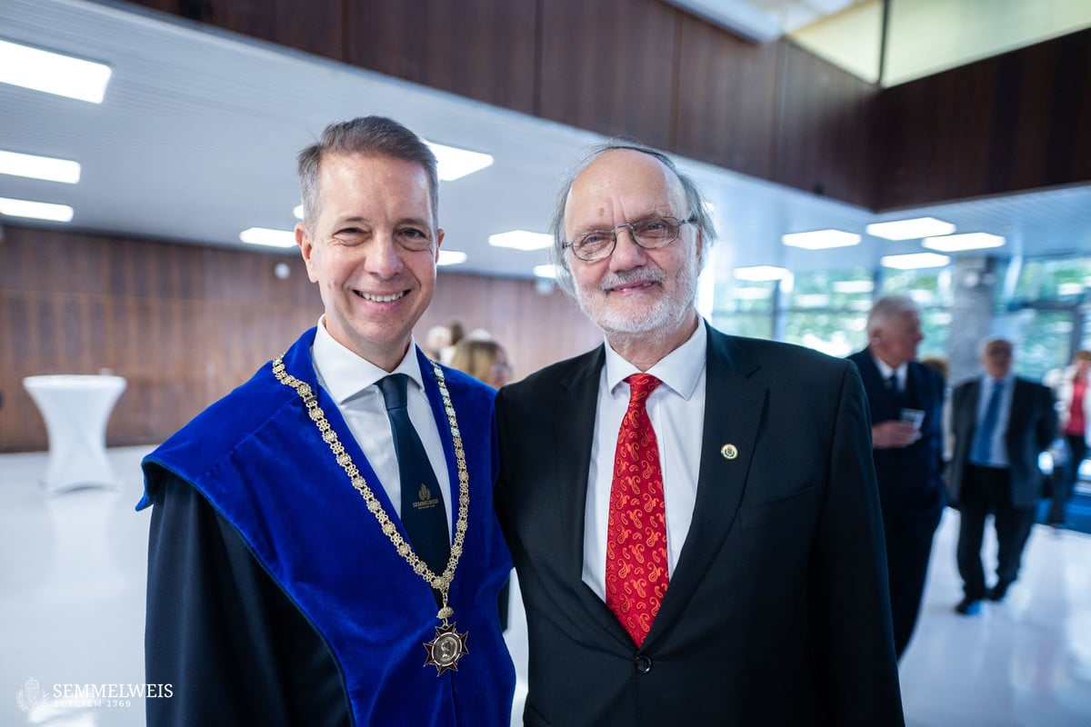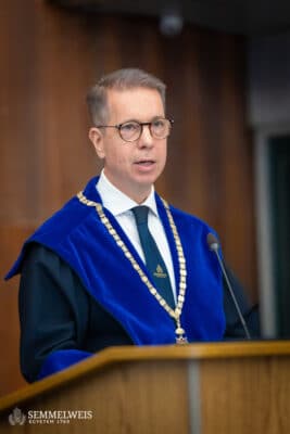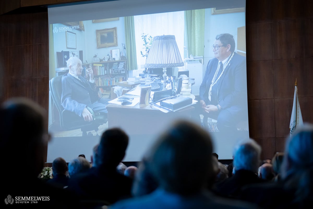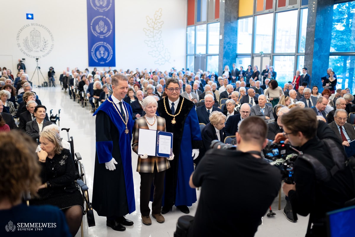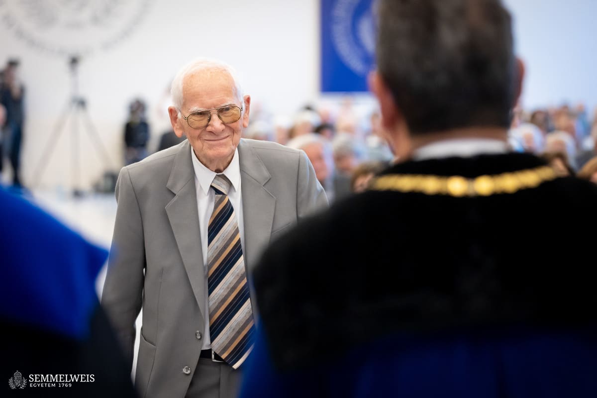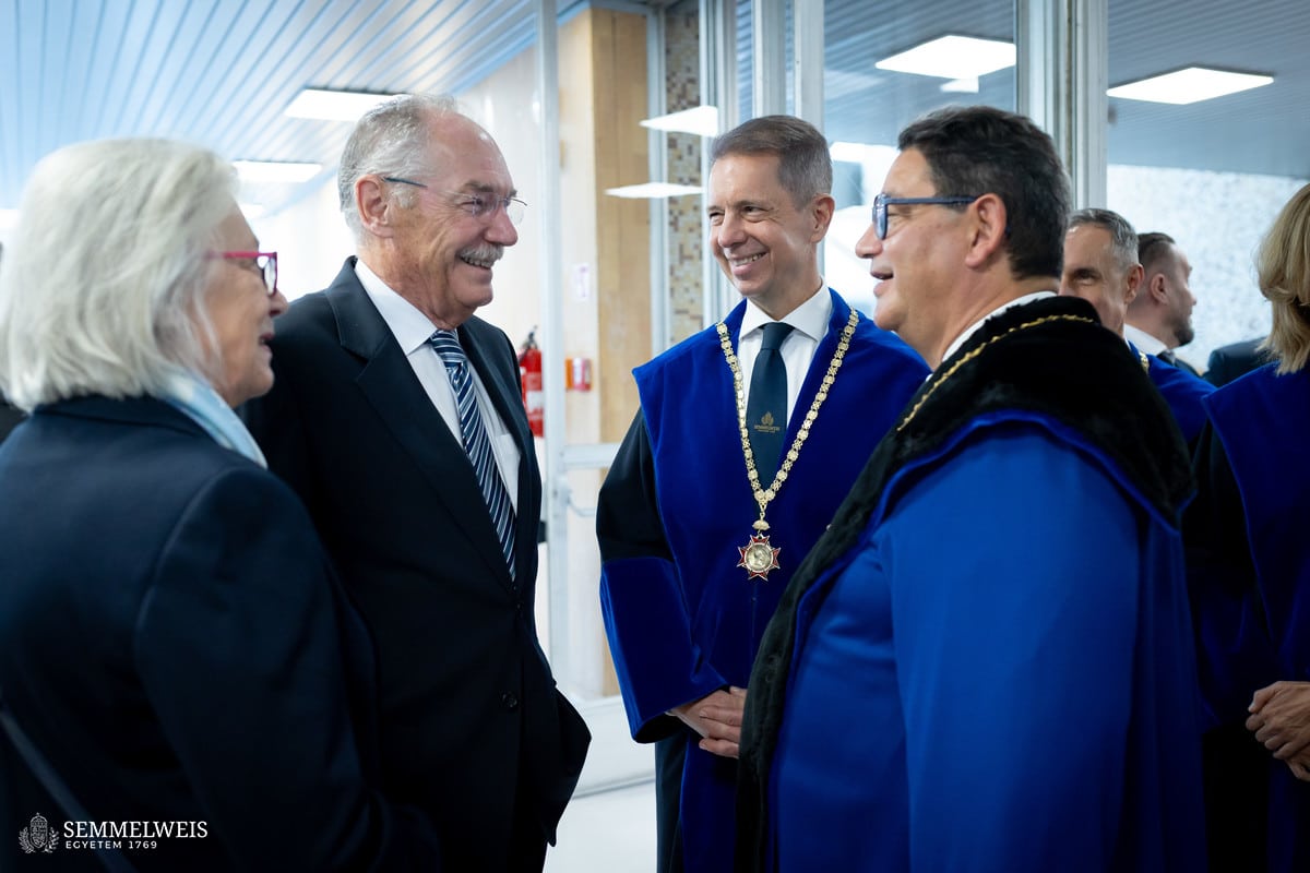 „A jó orvost nem csupán naprakész tudása és tapasztalata formálja, hanem lelke nemessége, hivatás iránti alázata, elkötelezettsége és az empátia. A jó orvos képes meglátni a diagnózis mögött az embert, és minden körülmények között a betege javát tartja szem előtt. Ezek az emberi és szakmai értékek nem tanulhatók tankönyvekből, csakis a mesterek példáján keresztül örökíthetők tovább” – szólt a mintegy 300 jubiláns orvoshoz dr. Merkely Béla rektor. Önök, akik most itt vannak velünk, mind hozzájárultak ahhoz, hogy egyetemünk olyan legyen, amilyennek ma ismerjük és tiszteljük: az ország és a régió vezető orvos-egészségtudományi tudásközpontja – fogalmazott. A rektor emlékeztetett, hogy a Times Higher Education globális rangsora a világ 300 legjobbja közé sorolja az intézményt, szív- és érgyógyászatban pedig a 35. legjobbnak számít a US News számítása alapján. Ismertette, hogy az elmúlt években folyamatosan bővült az egyetem portfóliója: traumatológia, rehabilitáció, idegsebészet, neurointervenció, valamint reumatológiai-immunológiai ellátás került a profilok közé. Az országban elsőként itt történt meg az orvos- és egészségügyi képzés kurrikulumának reformja a gyakorlati tudás középpontba állításával. Dr. Merkely Béla kiemelte még a nemzetközi képzéseket és kapcsolatokat is.