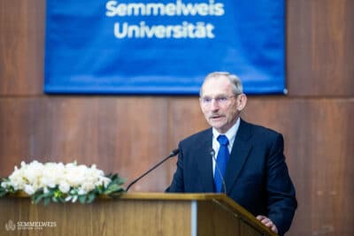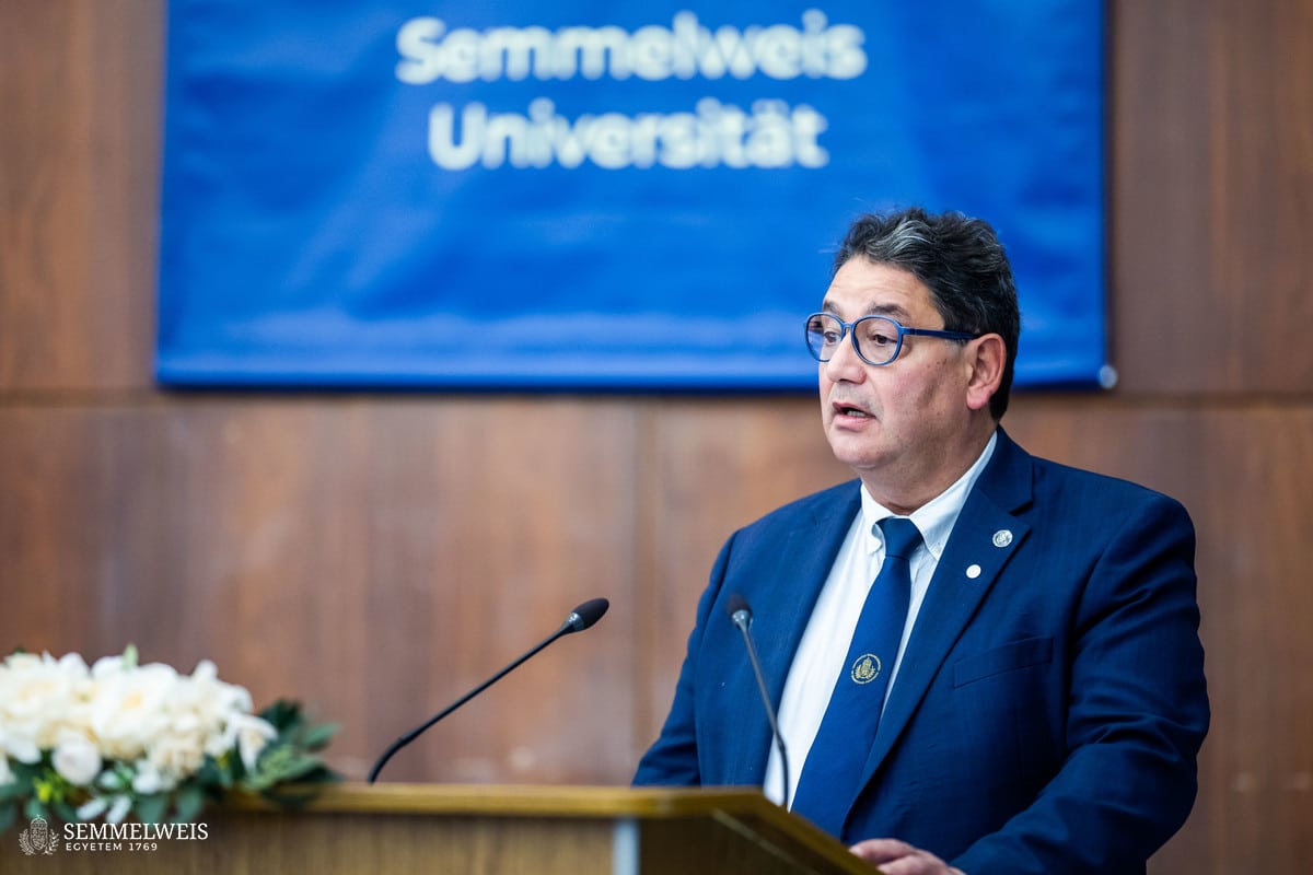 „Az egészség a legnagyobb gazdagság, a legnagyobb hatalom, a legnagyobb boldogság. Tedd egészségessé a népet, s ezáltal hatalmassá, gazdaggá, boldoggá teszed hazádat” – idézte köszöntőjében dr. Merkely Béla, a Semmelweis Egyetem rektora Fodor Józsefet, a hazai közegészségtan első professzorát, a jogelőd Pesti Tudományegyetem egykori rektorát. Szavai szerint e sorok 138 év távlatából is örökérvényű igazságot hordoznak, kifejezik mindazt, amiért az egyetemi polgárok nap mint nap dolgoznak. Megemlítette, hogy a Semmelweis Egyetem hazánk és Európa egyik legjobb orvos- és egészségtudományi egyeteme, egyben a legnagyobb magyarországi betegellátó intézmény. Mindezek miatt küldetésének tekinti a lakosság hiteles tájékoztatása, edukálása mellett az orvosképzésben is a prevenciós fókuszú szemléletformálást. Ennek jegyében biztosítja, hogy a hallgatók már a tanulmányaik alatt bekapcsolódjanak a prevenciós és gyógyító munkába. A rektor beszámolt arról is, hogy a Családbarát Egyetem Program keretében milyen intézkedésekkel segítik elő a hallgatók, valamint a dolgozók testi és lelki egészségének megtartását, kiemelve azt is, hogy az egészségügyi prevenciós szolgáltatások széles körét teszik elérhetővé a Semmelweis Polgároknak.