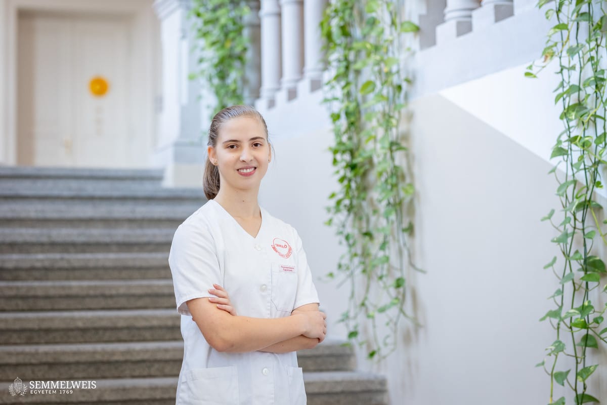 „Itt az iskolában nagyon jól elmagyaráznak minden gyakorlati ismeretet és tennivalót, a klinikákon pedig élesben kell kommunikálnunk a betegekkel, akikkel a gyakorlati blokk révén már közvetlen kapcsolatot tudunk kialakítani. Úgy érzem, hogy könnyen meg tudom találni velük a hangot, és remélem, hogy sikerül megteremtenem számukra a komfortérzést” – számolt be az eddig szerzett klinikai tapasztalatairól Török Fanni, aki eddig egyebek mellett urológián, sebészeten és neurológián végzett gyakorlatot.