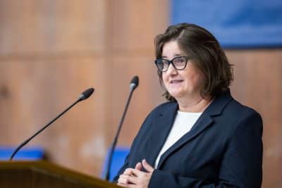Dr. Ádám Szilvia egyetemi docens, az Integrált szociális szolgáltatás menedzsment mesterképzés szakfelelőse köszöntőjében felhívta a figyelmet: a mesterképzéssel hidat szerettek volna építeni rendszerek, ágazatok és szemléletek között. „És ma itt állnak előttünk mindazok, akik ezen a hídon elsőként keltek át, akik mostantól maguk is hidakat fognak építeni. A szociális szolgáltatások menedzseri területe nem egyszerű szakma. Ez a terület egyszerre kíván rendszerszintű gondolkodást és mély emberi érzékenységet. Éppen ti vagytok azok, akik megtanultátok, hogyan lehet a struktúrák és az emberi történetek között egyensúlyt tartani, ti vagytok azok, akik képesek irányt mutatni ott, ahol más még csak térképet keres” – fogalmazott.
