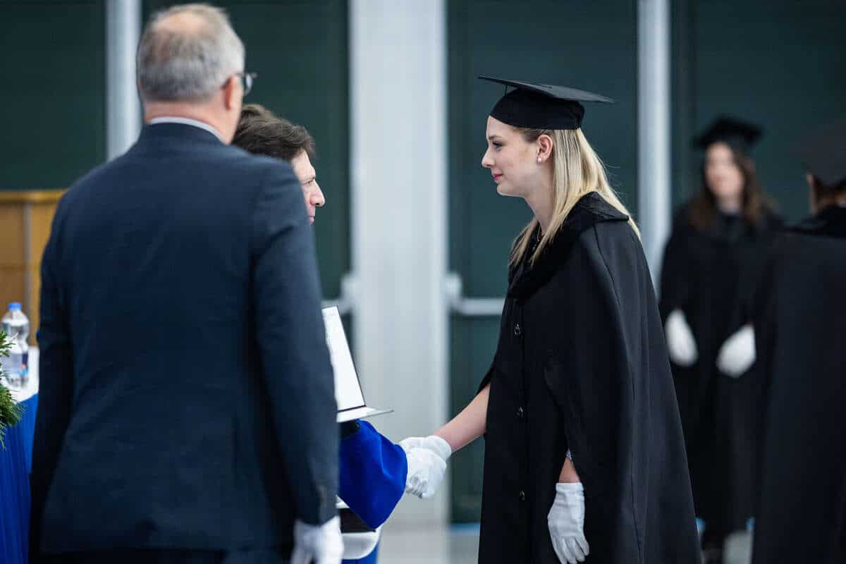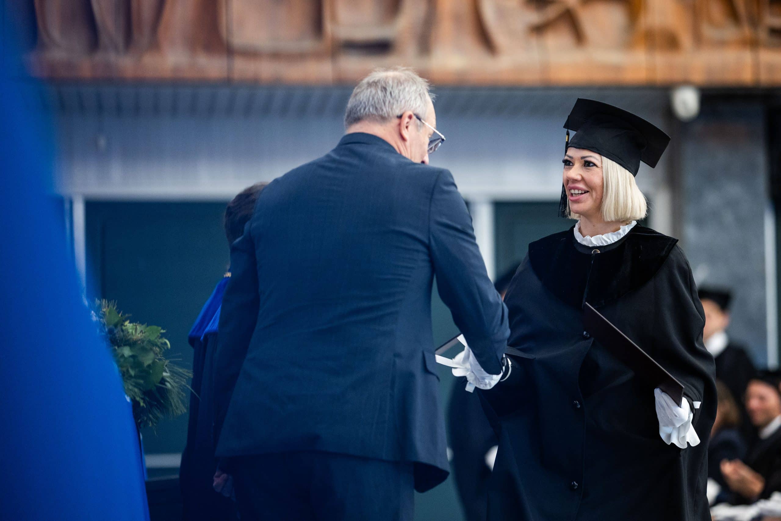 Ezt követően dr. Hermann Péter oktatási rektorhelyettes és dr. Pethesné Dávid Beáta, az EKK dékánja kézfogással diplomásokká avatta a végzetteket.