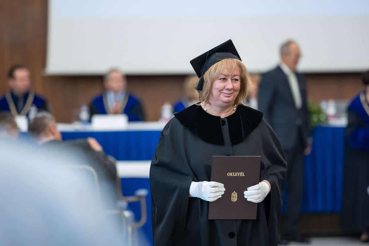 – mutatott rá a rektorhelyettes. Külön kitért arra, hogy a most végzettek között az egyetem munkatársai, intézményvezetők, fiatal szakemberek is vannak – mindannyian értik, hogy a tudás nem zárul le a diploma megszerzésével, hanem élethosszig tartó fejlődést vár el. Az EKK-ról szólva elmondta, a kar példamutató fejlődésen ment keresztül: 2010-ben alapították, mára pedig már 18 képzést kínál, hatot az Egészségügyi Menedzserképző Központ égisze alatt. 2024-25-ben három új mesterszak is indult, köztük az Egészségügyi adattudomány és a Betegbiztonsági menedzsment. Mindezek mellett a kar a publikációs aktivitás és a tudományos idézettség terén is az egyetem egyik legdinamikusabban fejlődő egységévé vált. Ezek a sikerek nem csupán a kar eredményei, az egyetem egészének kiválóságát és nemzetközi rangját is erősítik.