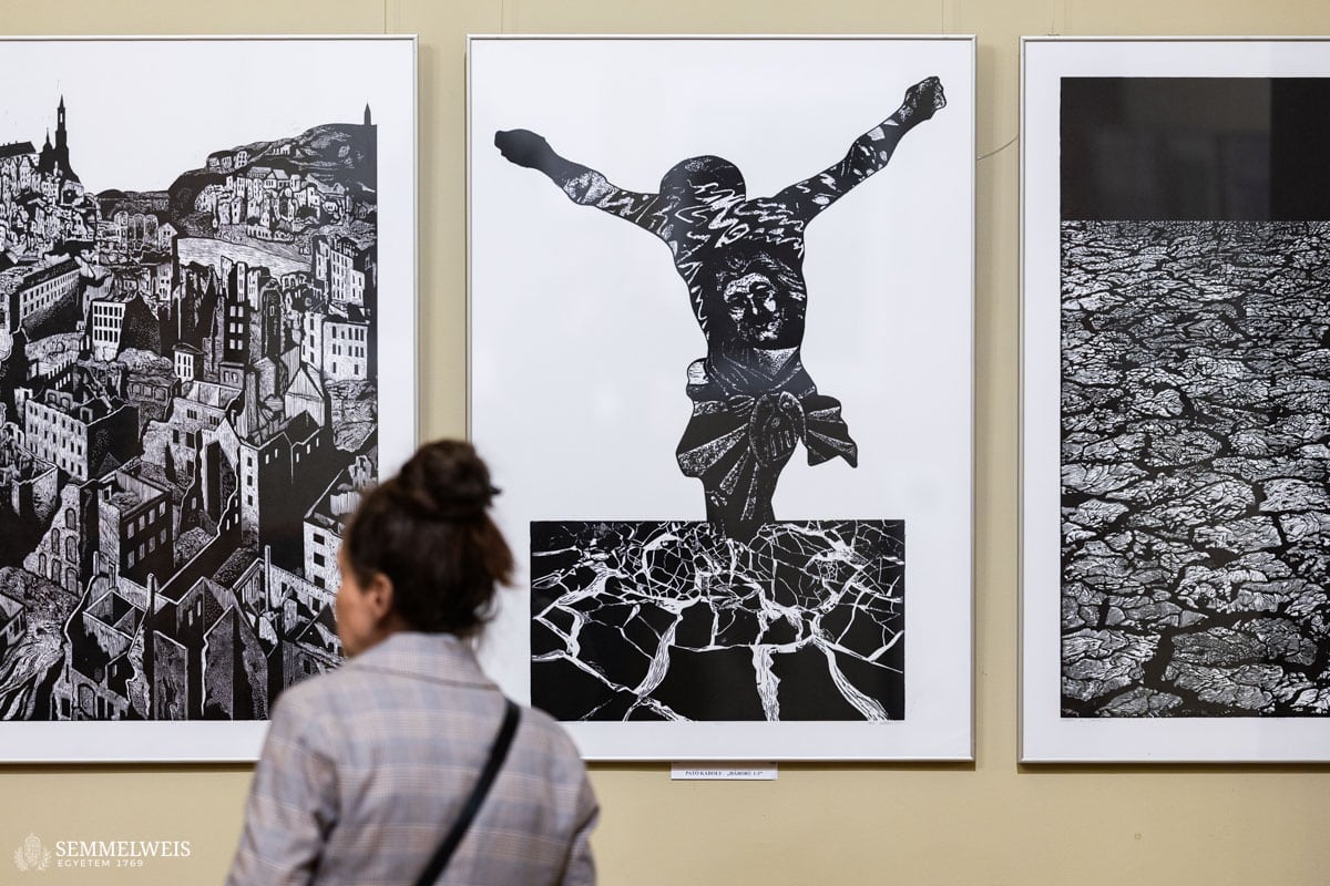 „A Semmelweis Egyetemnek külön öröm, amikor a művészeteknek is otthont adhat. Az orvoslást többen nevezték már művészetnek, az orvosok a napi rutin során is újból és újból rácsodálkozhatnak a természet szépségére, az emberi test működésének összetettségére” – hangsúlyozta köszöntőjében dr. Alpár Alán, a Semmelweis Egyetem nemzetközi képzésekért felelős rektorhelyettese. „Amikor az itt kiállított képeket először megláttam, felötlött bennem, hogy a formák, apró, egészen kicsi részek, akárcsak a nanovilág elemei, hogyan állnak össze szubjektív módon egy formává és egy mondanivalóvá.”
