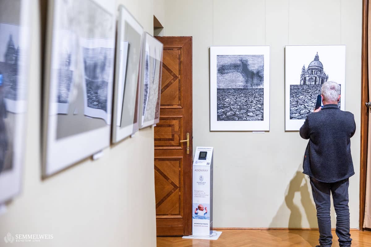 „A Semmelweis Egyetemnek külön öröm, amikor a művészeteknek is otthont adhat. Az orvoslást többen nevezték már művészetnek, az orvosok a napi rutin során is újból és újból rácsodálkozhatnak a természet szépségére, az emberi test működésének összetettségére” – hangsúlyozta köszöntőjében dr. Alpár Alán, a Semmelweis Egyetem nemzetközi képzésekért felelős rektorhelyettese. „Amikor az itt kiállított képeket először megláttam, felötlött bennem, hogy a formák, apró, egészen kicsi részek, akárcsak a nanovilág elemei, hogyan állnak össze szubjektív módon egy formává és egy mondanivalóvá.”