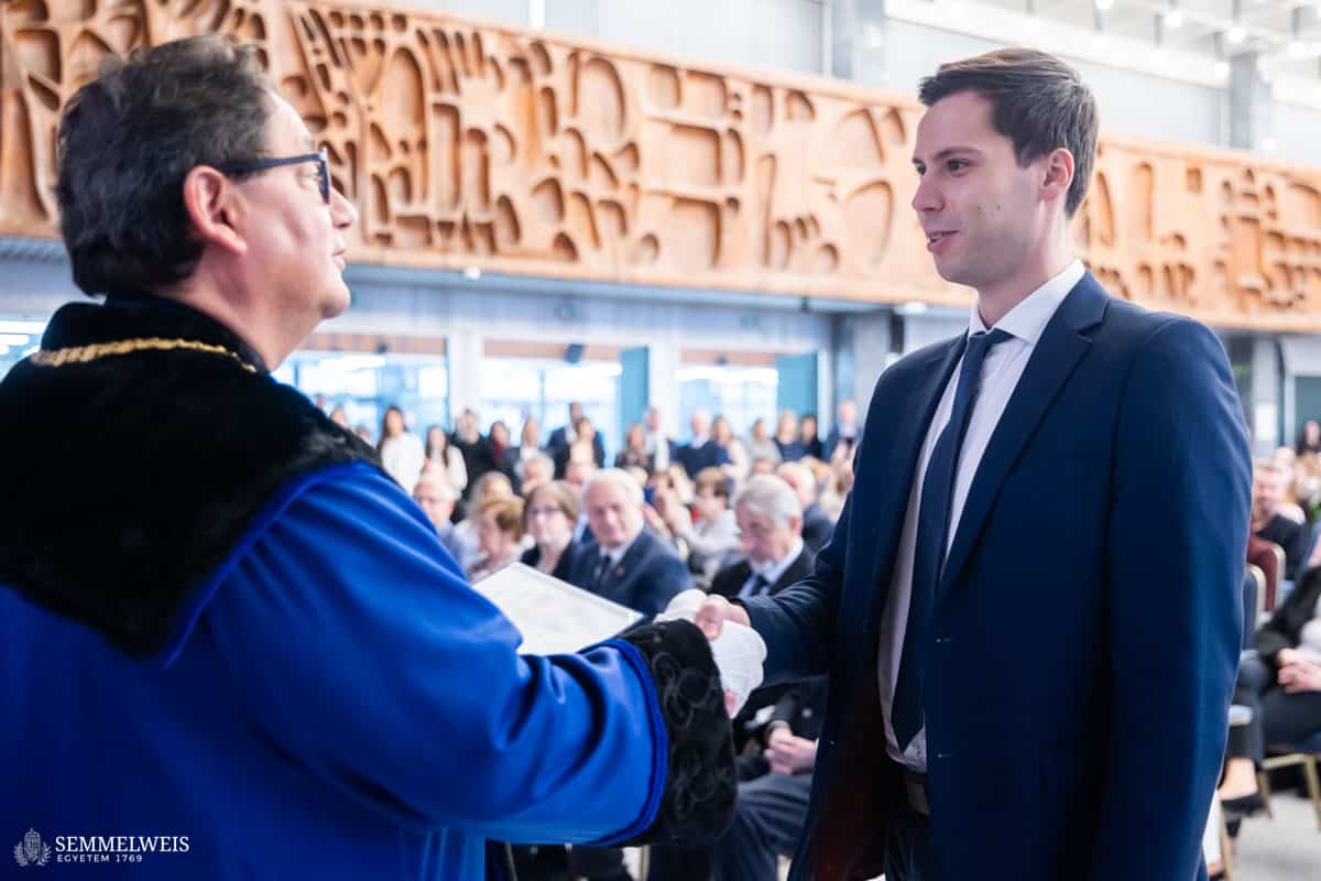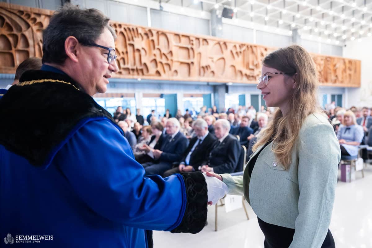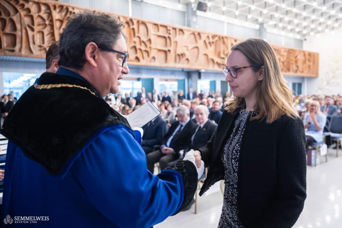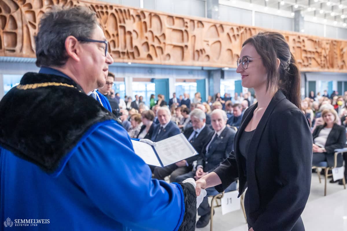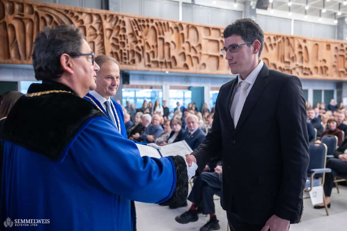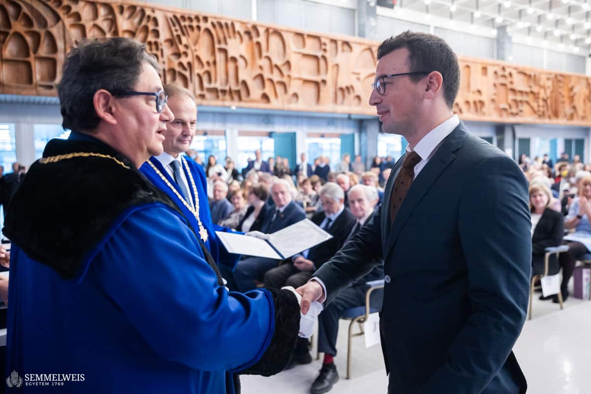 Hangsúlyozta azt is, hogy ehhez szükség van a jövő kutatóira, tudósaira, ezért a Semmelweis Egyetem kiszámítható életpályamodellt kínál mindazoknak, akik készek élni a lehetőséggel. A rektor kiemelte azt is, hogy az egyetem tudományos teljesítményének – például az itteni kutatási eredmények, publikációk nemzetközi idézettségének – növekedésében kulcsfontosságú szerepet játszanak a PhD-hallgatók kutatásai, erőfeszítései is.