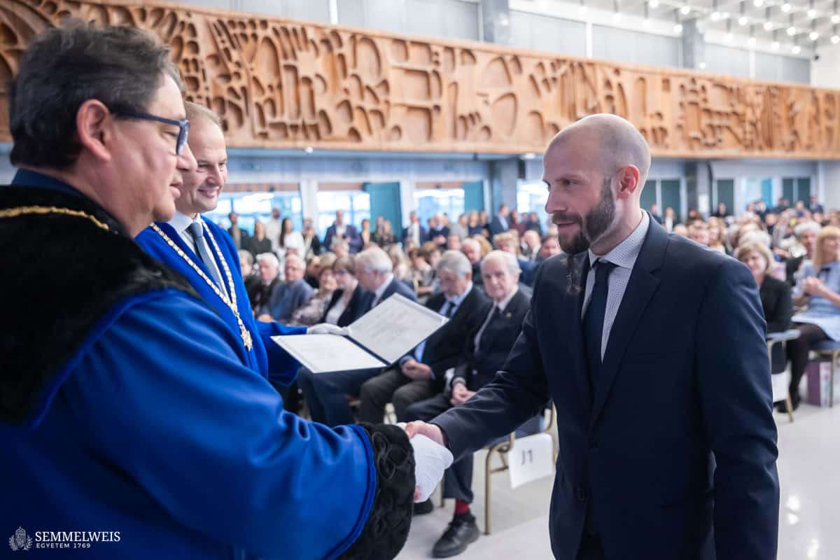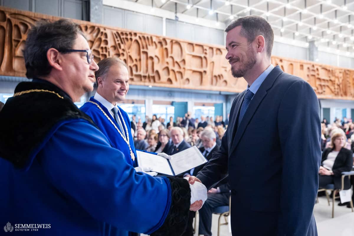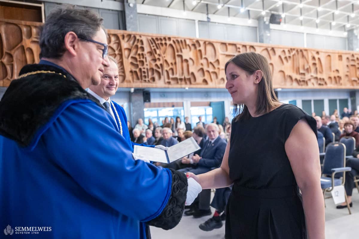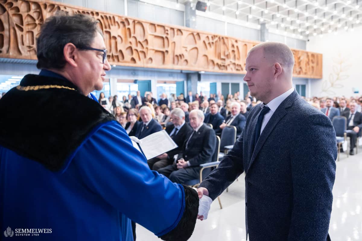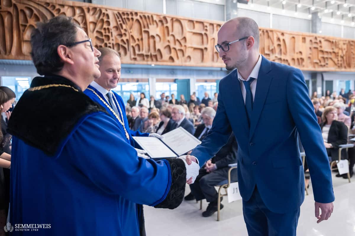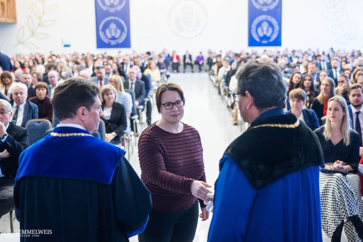 Hangsúlyozta azt is, hogy ehhez szükség van a jövő kutatóira, tudósaira, ezért a Semmelweis Egyetem kiszámítható életpályamodellt kínál mindazoknak, akik készek élni a lehetőséggel. A rektor kiemelte azt is, hogy az egyetem tudományos teljesítményének – például az itteni kutatási eredmények, publikációk nemzetközi idézettségének – növekedésében kulcsfontosságú szerepet játszanak a PhD-hallgatók kutatásai, erőfeszítései is.