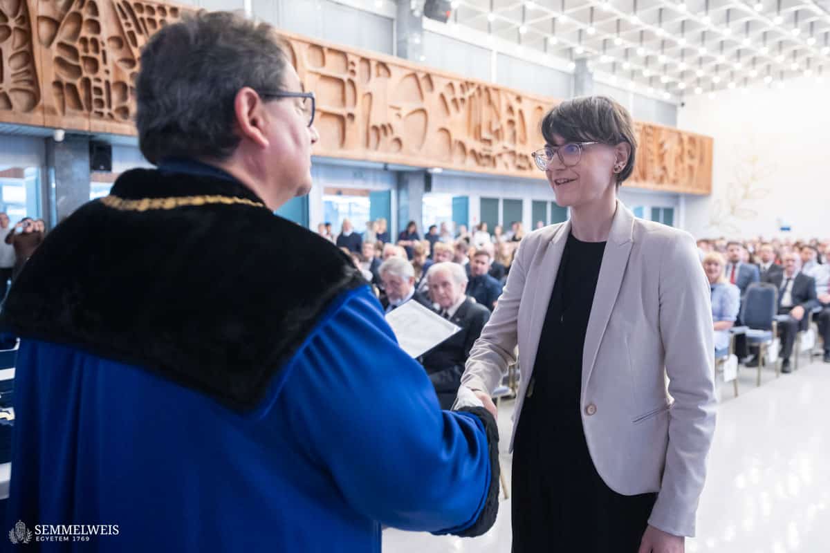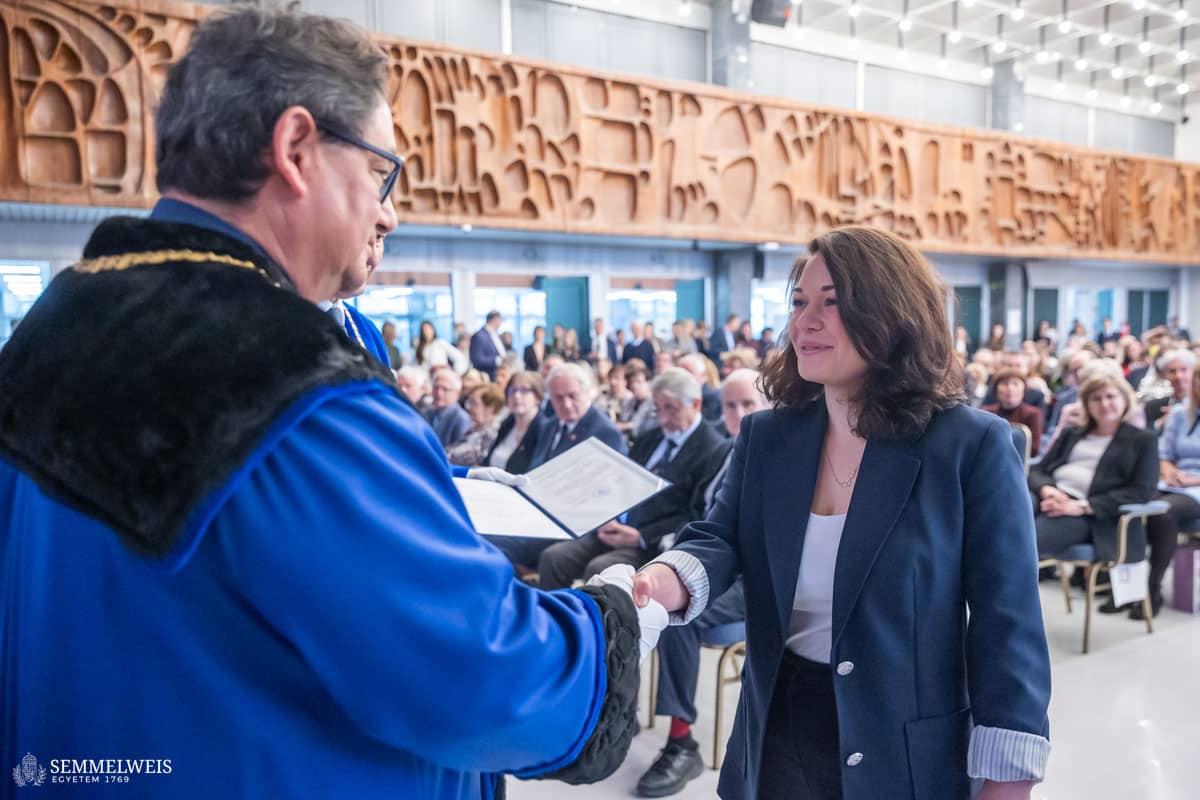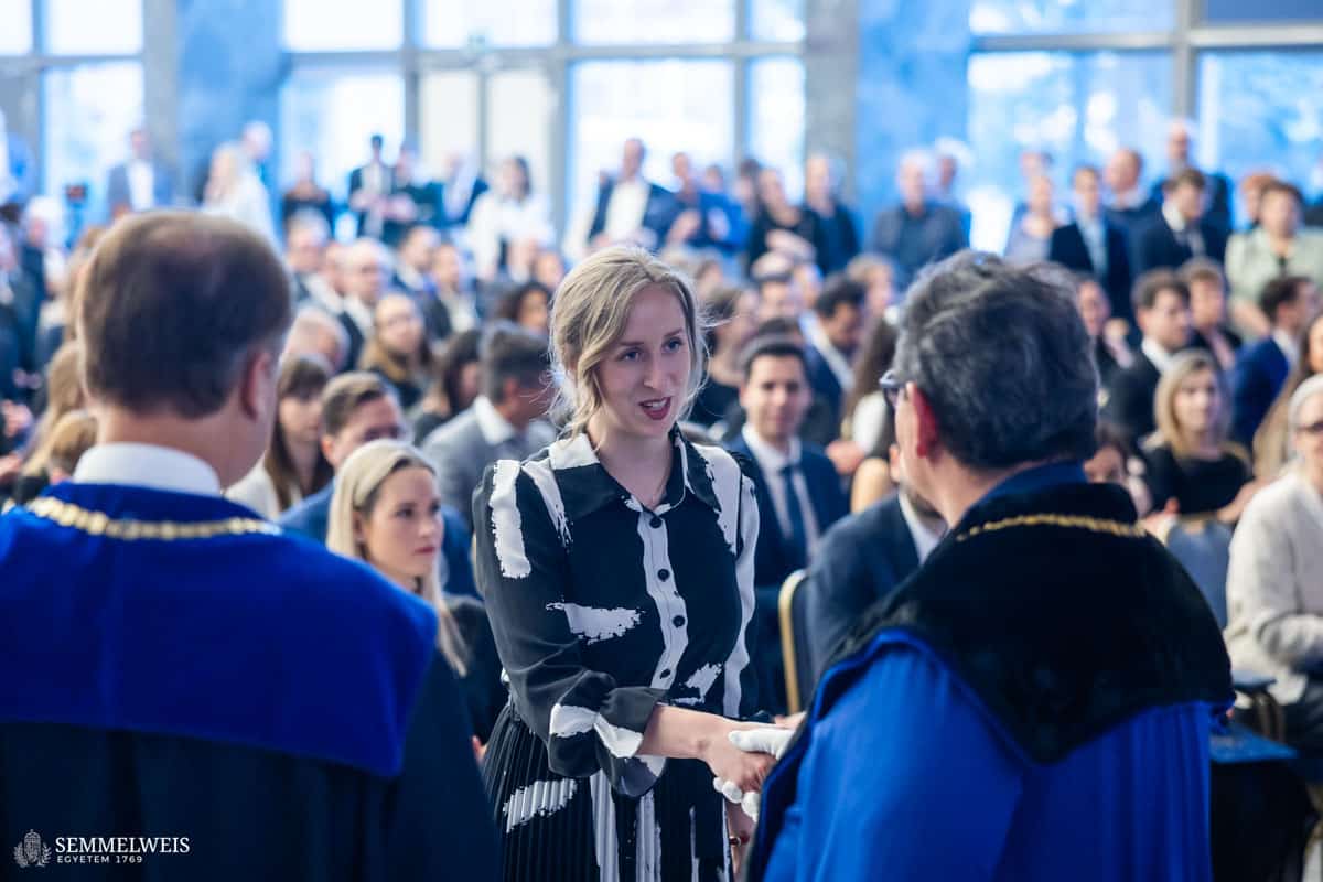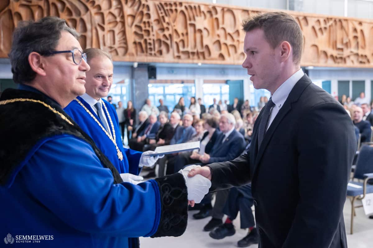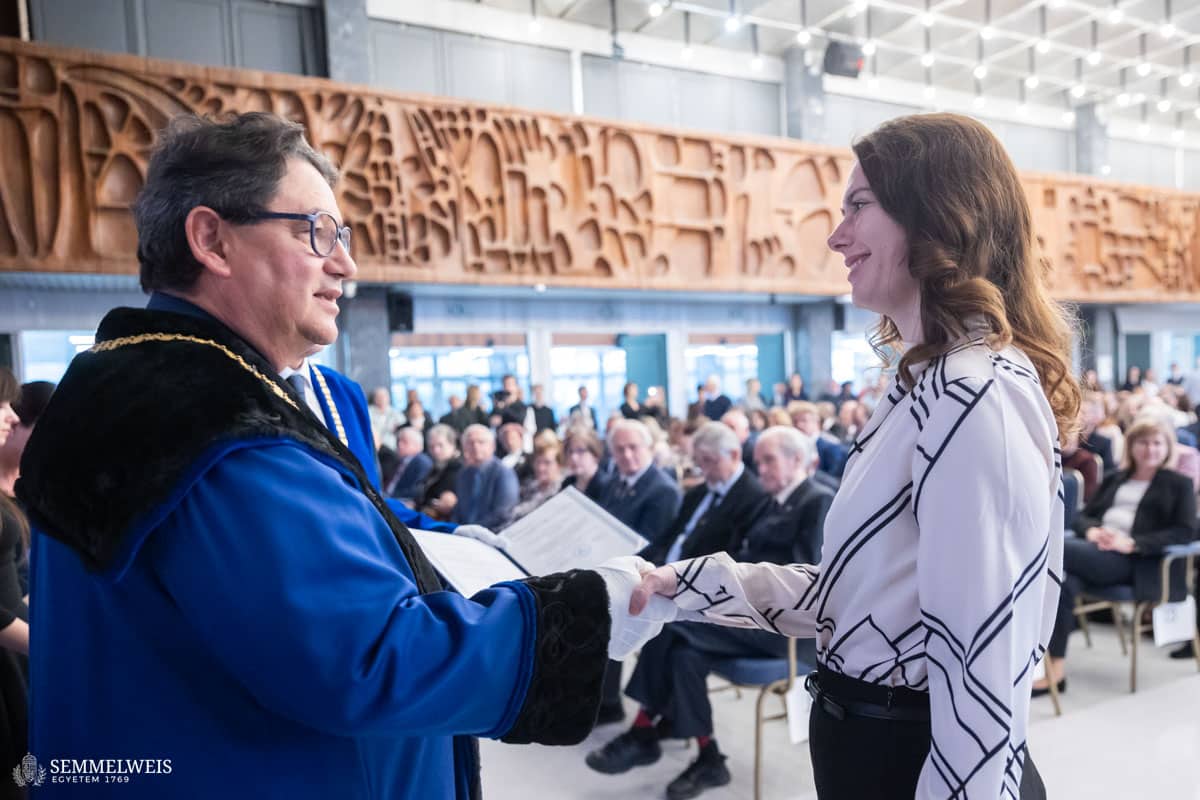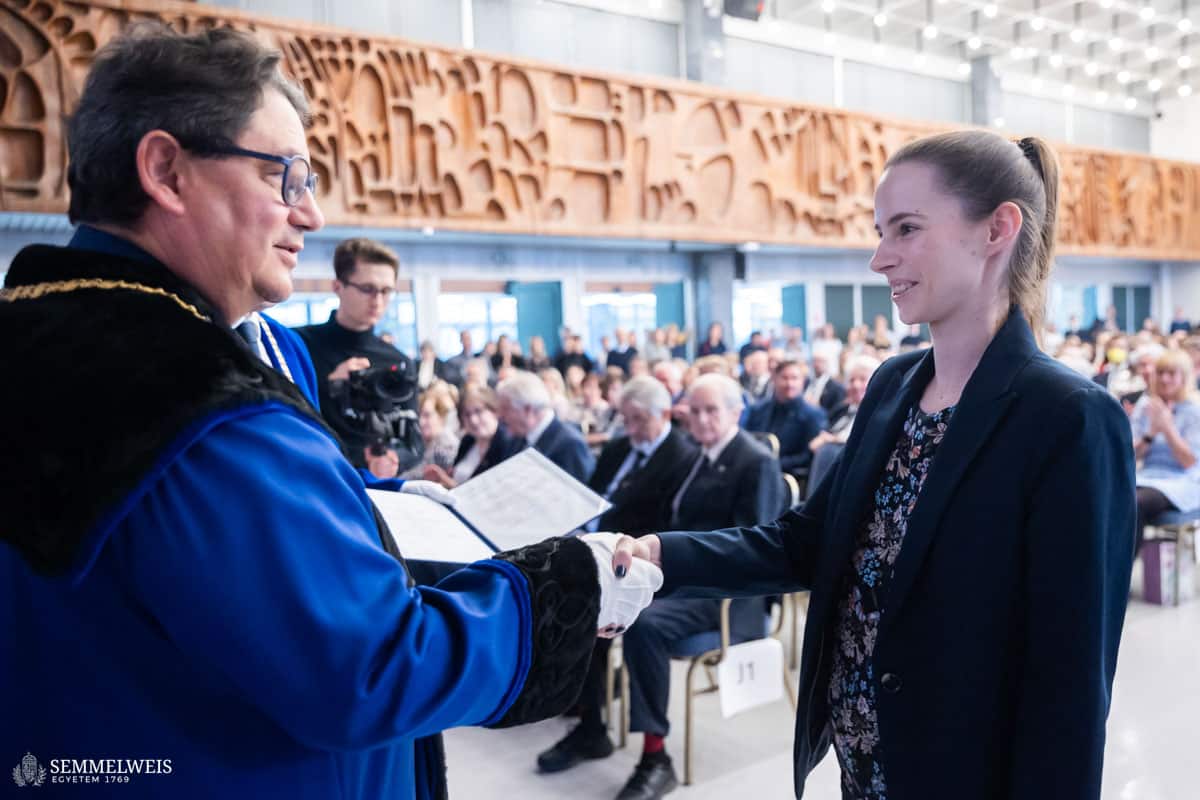 Hangsúlyozta azt is, hogy ehhez szükség van a jövő kutatóira, tudósaira, ezért a Semmelweis Egyetem kiszámítható életpályamodellt kínál mindazoknak, akik készek élni a lehetőséggel. A rektor kiemelte azt is, hogy az egyetem tudományos teljesítményének – például az itteni kutatási eredmények, publikációk nemzetközi idézettségének – növekedésében kulcsfontosságú szerepet játszanak a PhD-hallgatók kutatásai, erőfeszítései is.