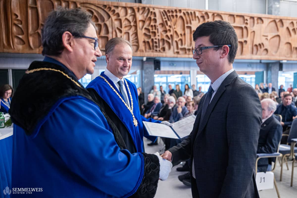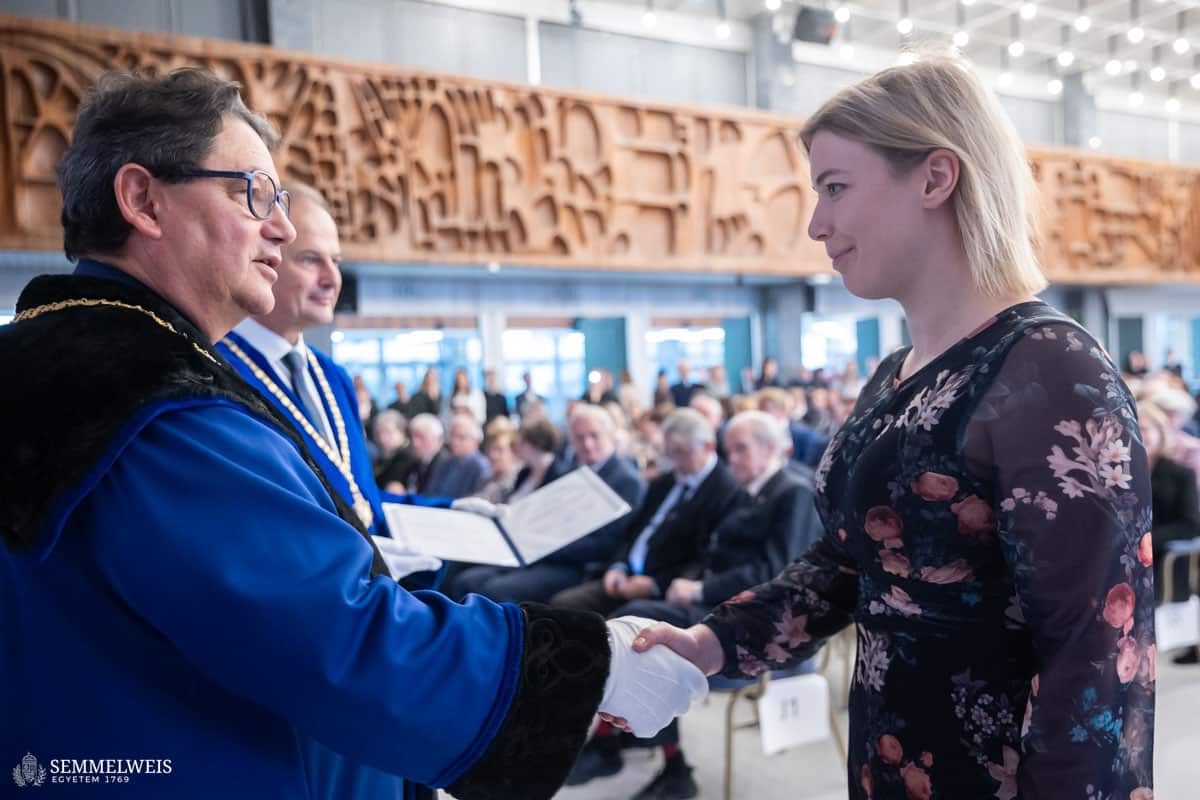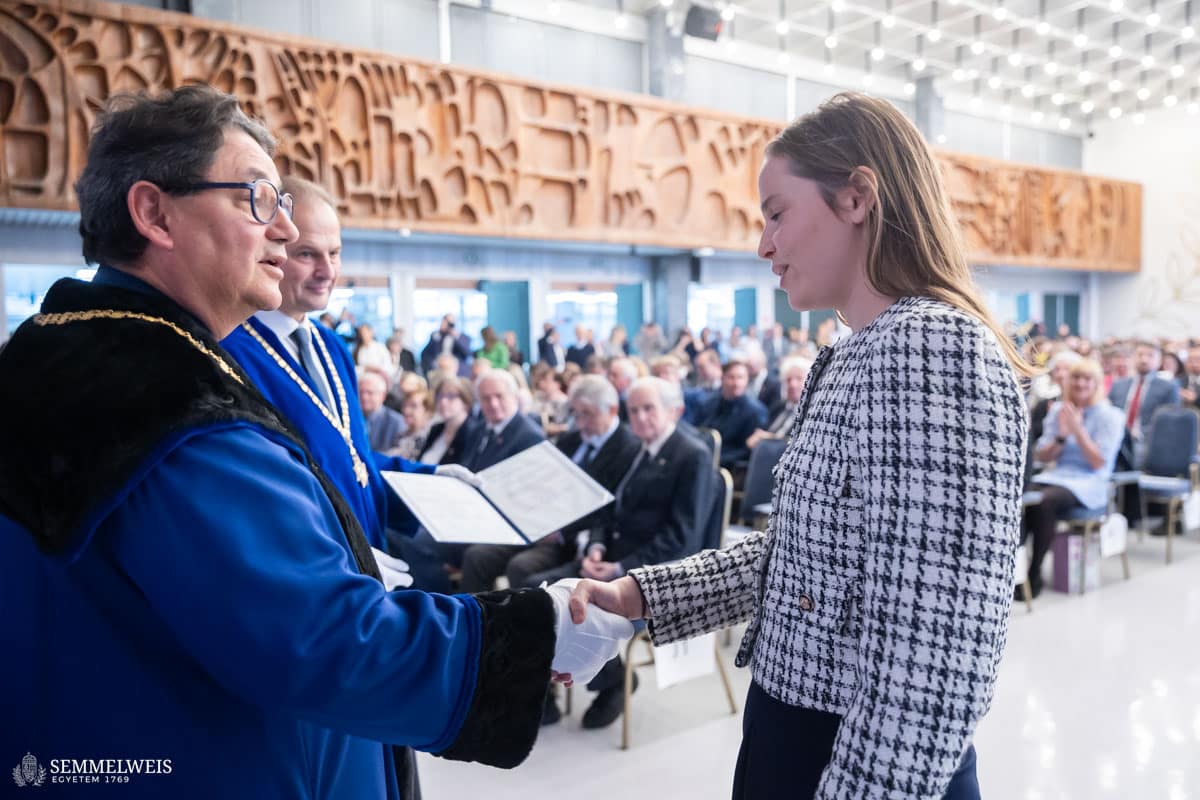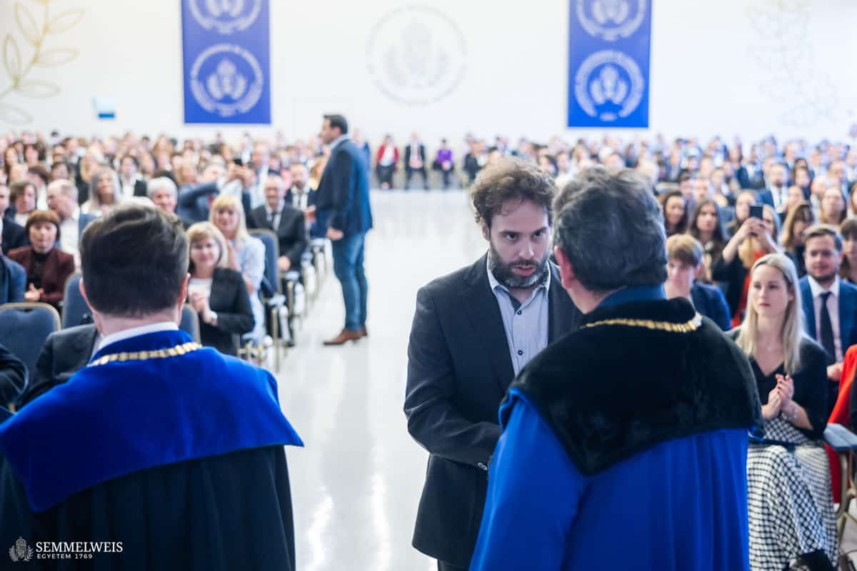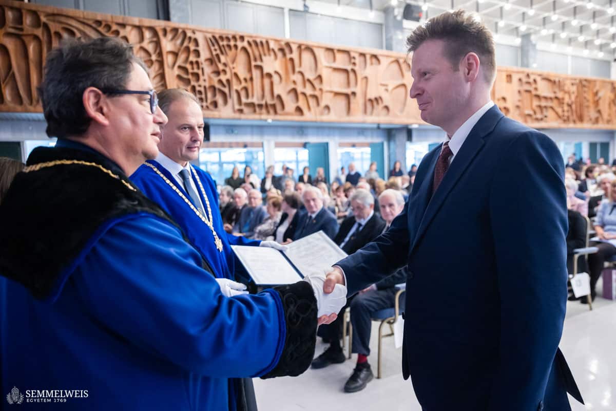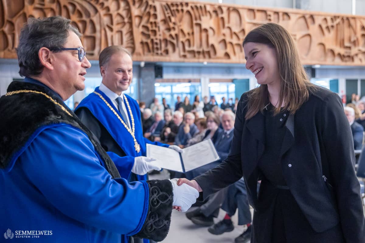 Hangsúlyozta azt is, hogy ehhez szükség van a jövő kutatóira, tudósaira, ezért a Semmelweis Egyetem kiszámítható életpályamodellt kínál mindazoknak, akik készek élni a lehetőséggel. A rektor kiemelte azt is, hogy az egyetem tudományos teljesítményének – például az itteni kutatási eredmények, publikációk nemzetközi idézettségének – növekedésében kulcsfontosságú szerepet játszanak a PhD-hallgatók kutatásai, erőfeszítései is.