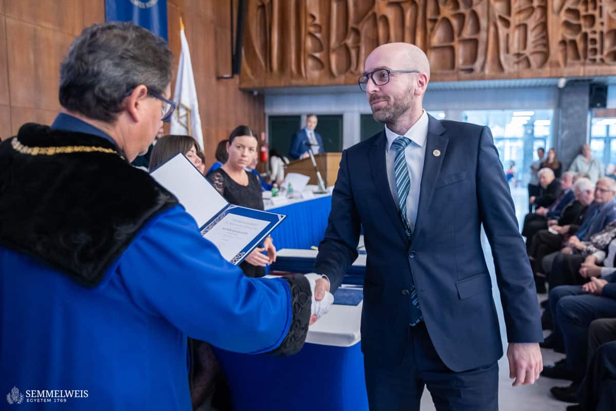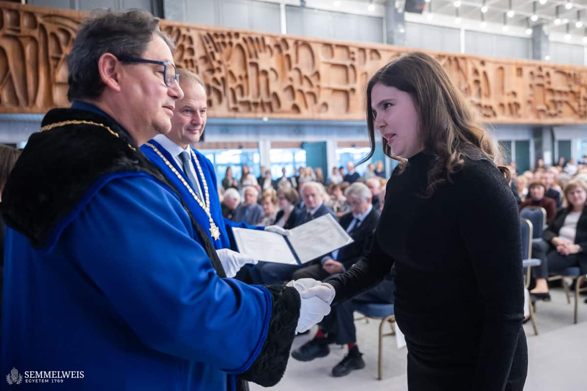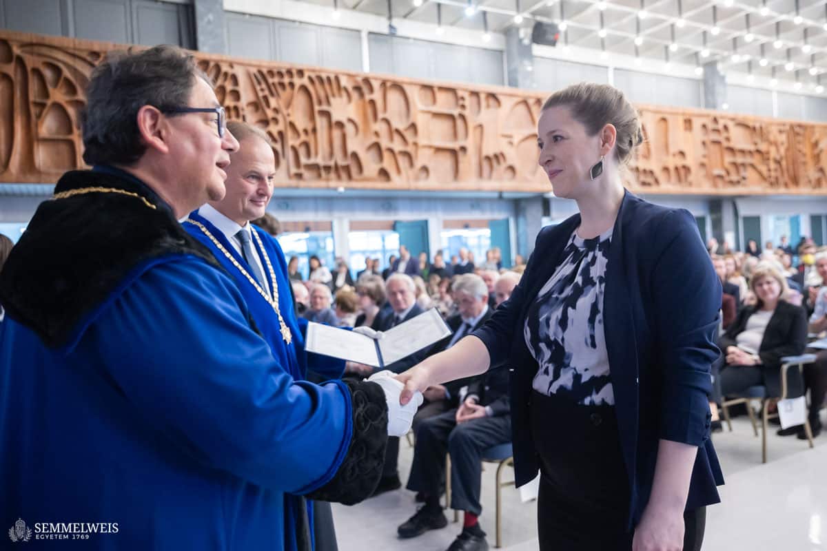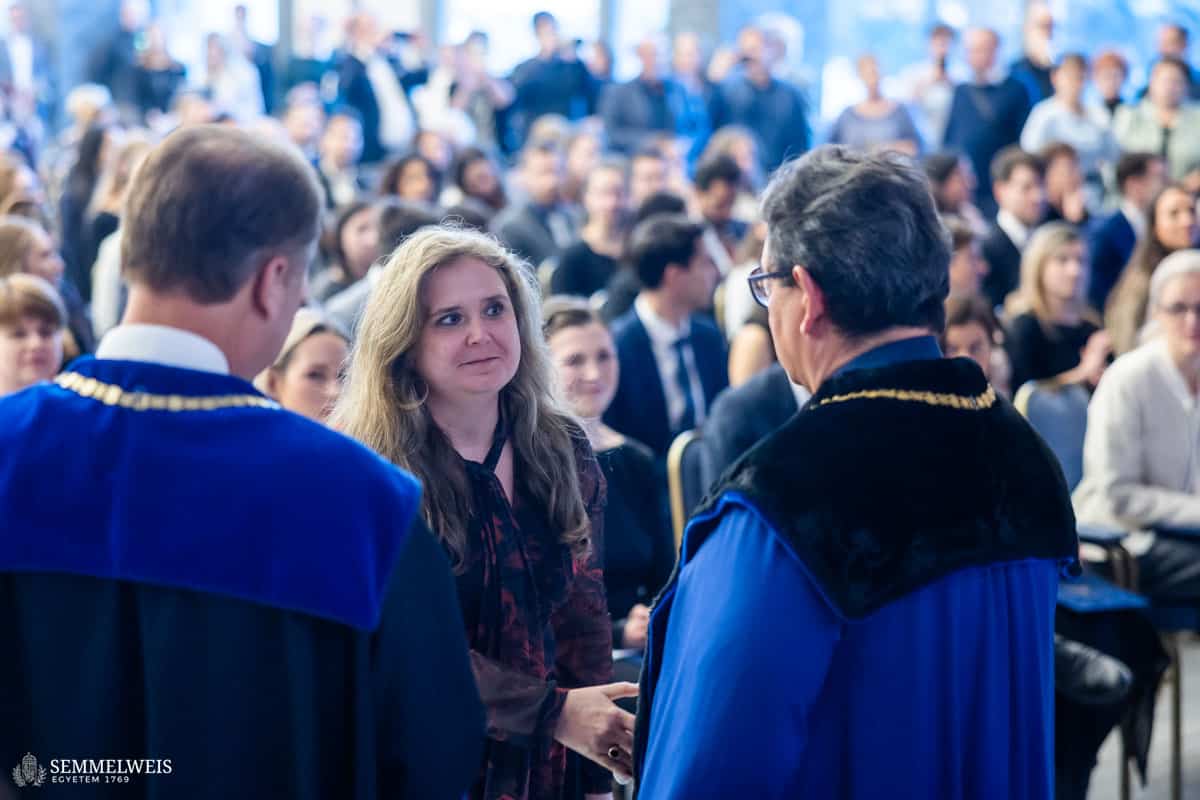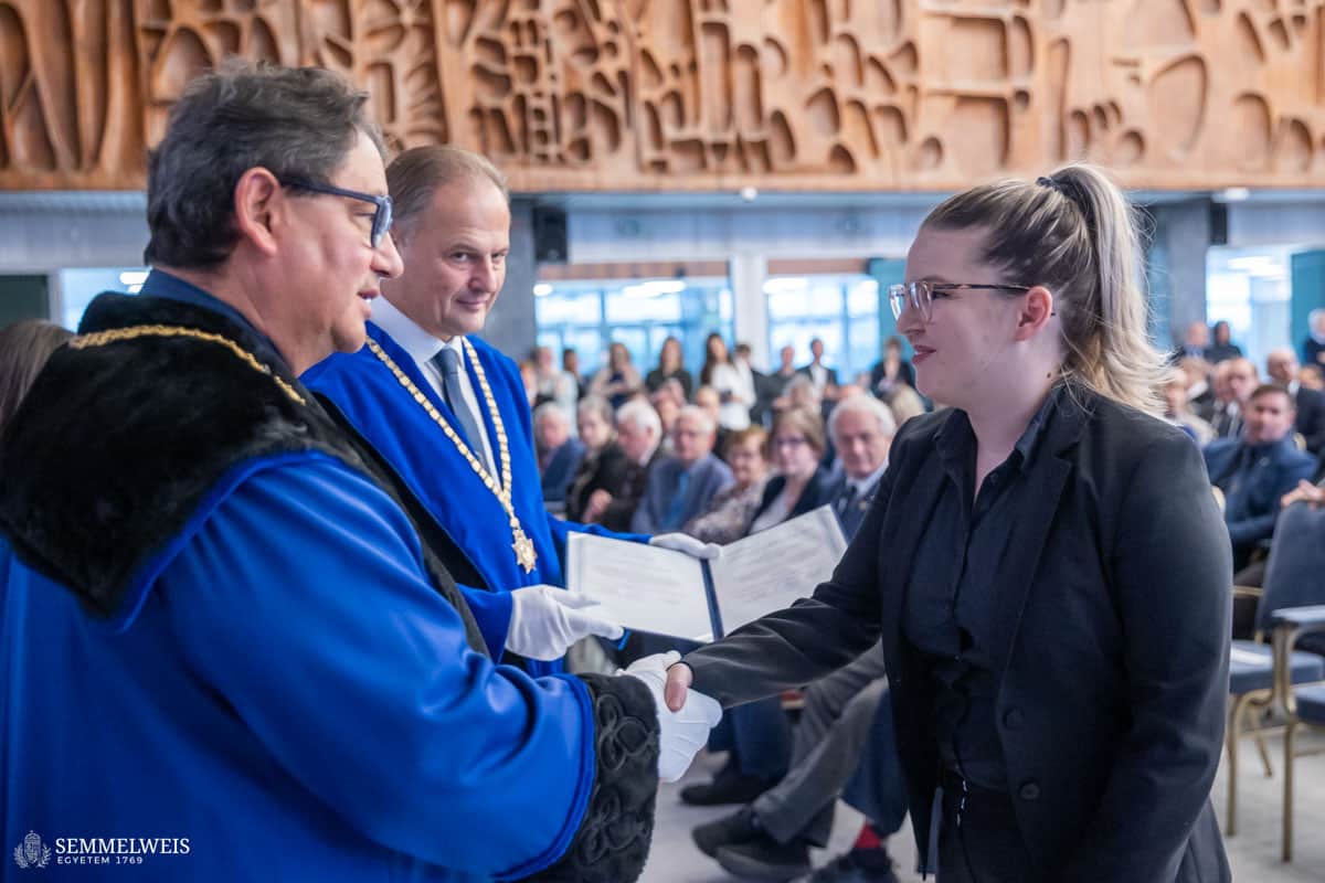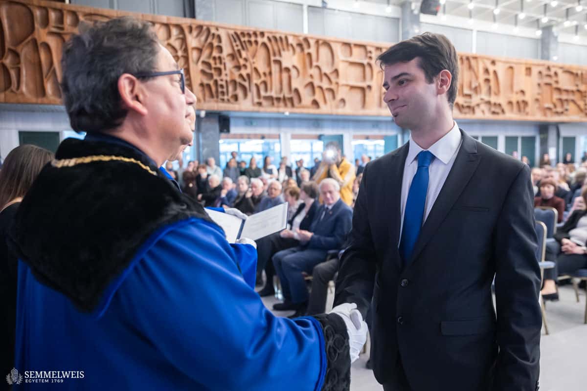 Hangsúlyozta azt is, hogy ehhez szükség van a jövő kutatóira, tudósaira, ezért a Semmelweis Egyetem kiszámítható életpályamodellt kínál mindazoknak, akik készek élni a lehetőséggel. A rektor kiemelte azt is, hogy az egyetem tudományos teljesítményének – például az itteni kutatási eredmények, publikációk nemzetközi idézettségének – növekedésében kulcsfontosságú szerepet játszanak a PhD-hallgatók kutatásai, erőfeszítései is.