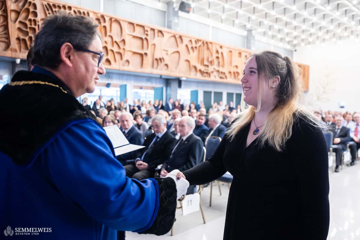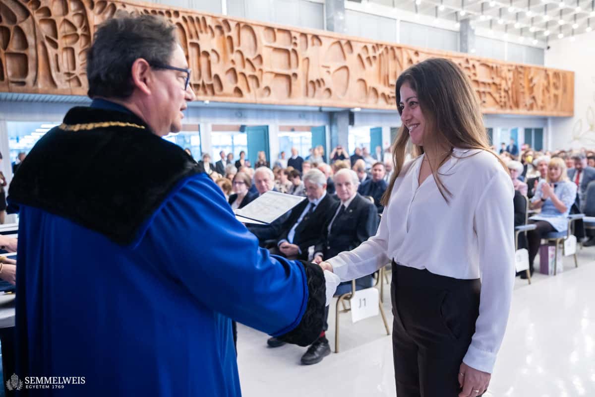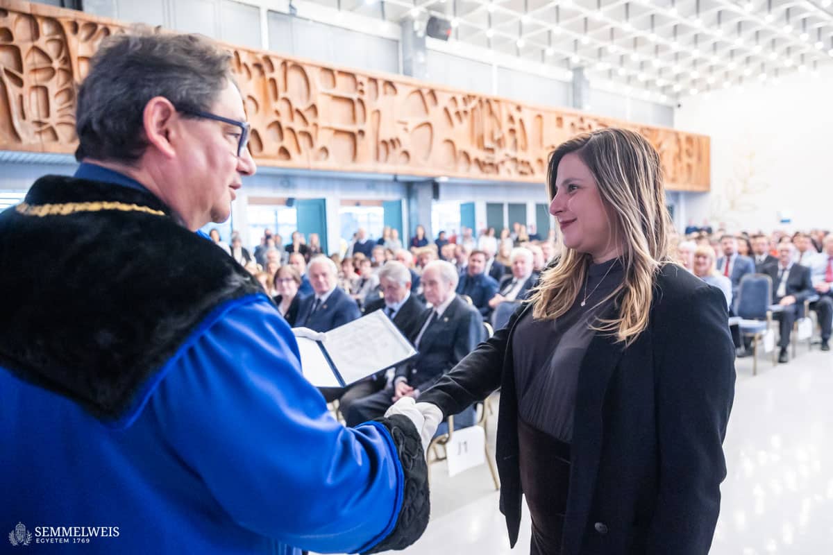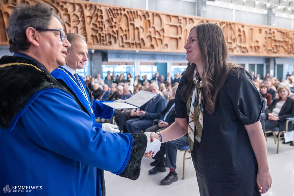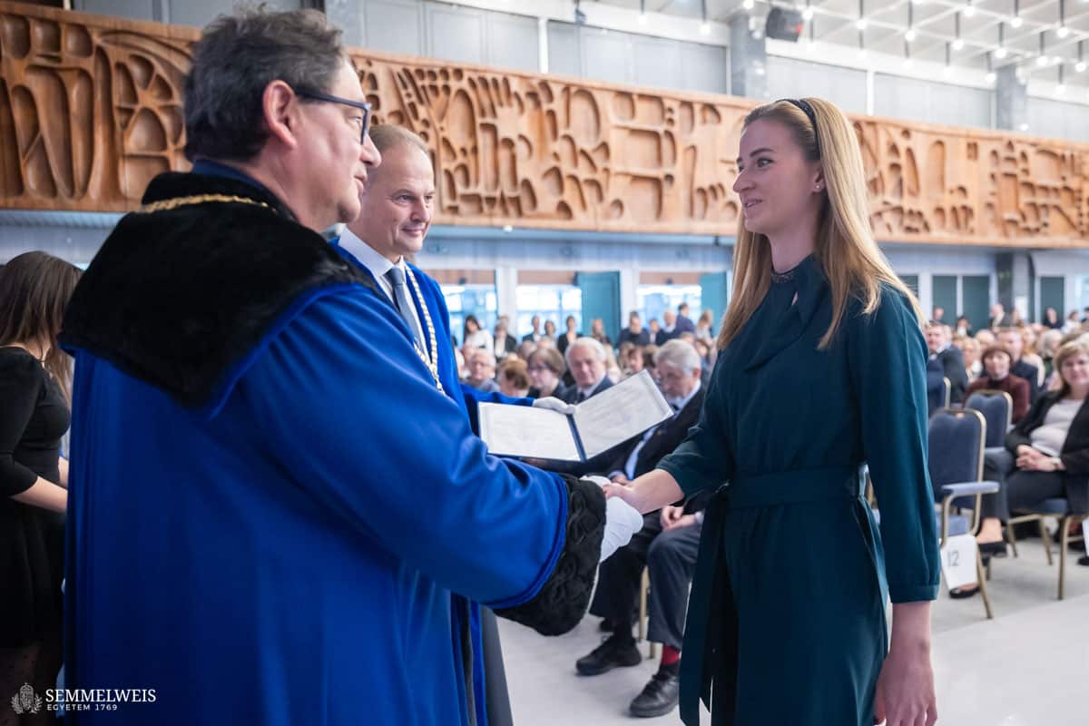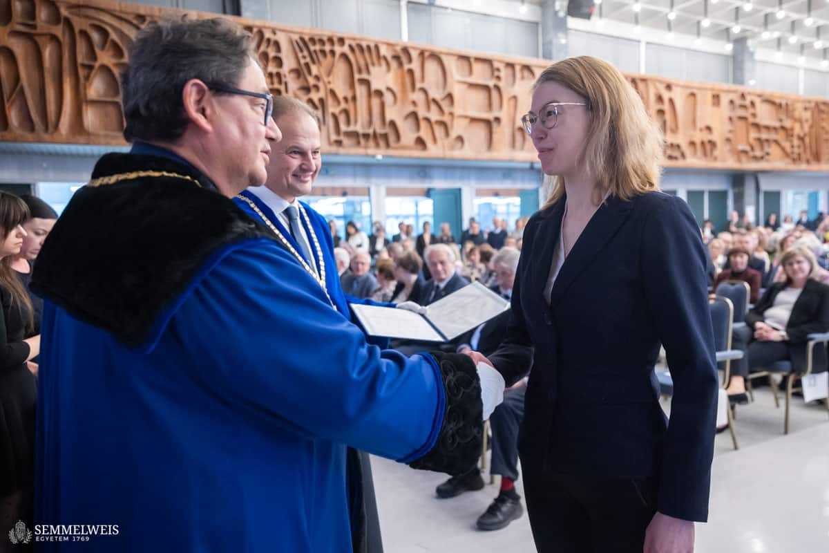 Hangsúlyozta azt is, hogy ehhez szükség van a jövő kutatóira, tudósaira, ezért a Semmelweis Egyetem kiszámítható életpályamodellt kínál mindazoknak, akik készek élni a lehetőséggel. A rektor kiemelte azt is, hogy az egyetem tudományos teljesítményének – például az itteni kutatási eredmények, publikációk nemzetközi idézettségének – növekedésében kulcsfontosságú szerepet játszanak a PhD-hallgatók kutatásai, erőfeszítései is.