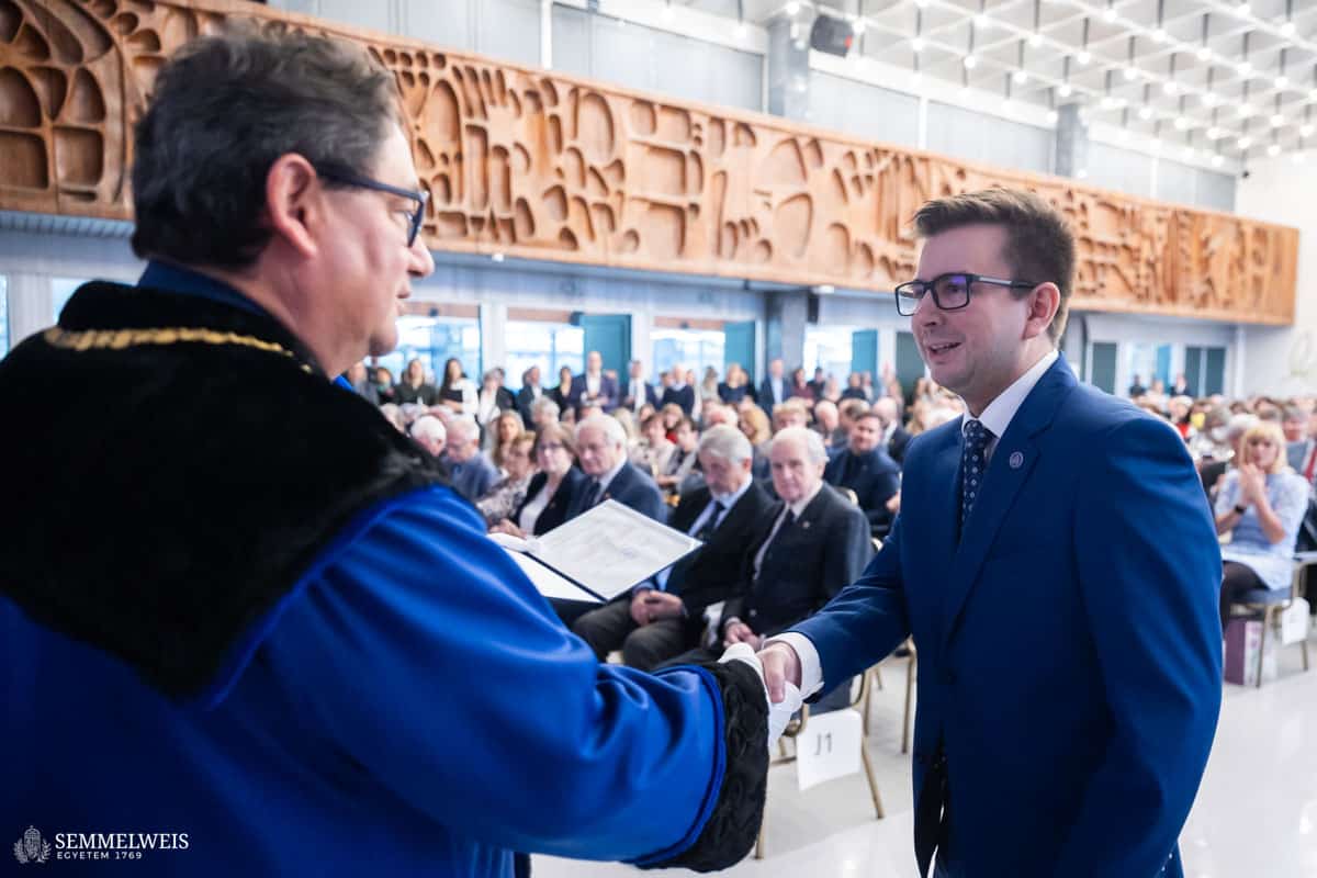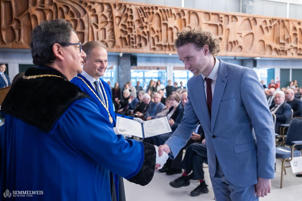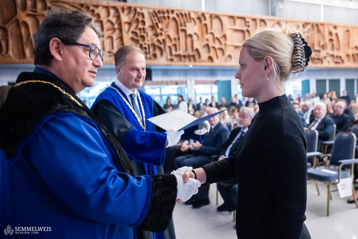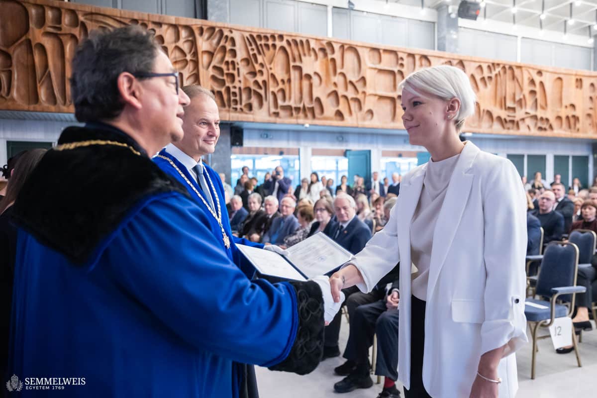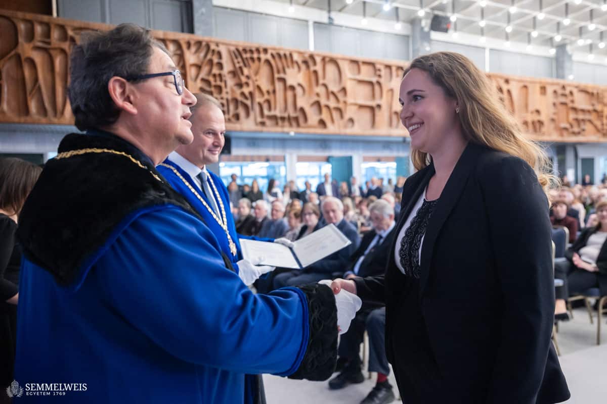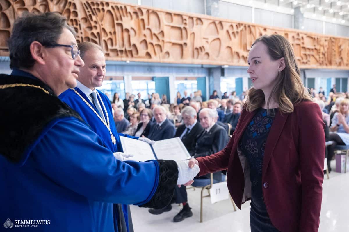 Hangsúlyozta azt is, hogy ehhez szükség van a jövő kutatóira, tudósaira, ezért a Semmelweis Egyetem kiszámítható életpályamodellt kínál mindazoknak, akik készek élni a lehetőséggel. A rektor kiemelte azt is, hogy az egyetem tudományos teljesítményének – például az itteni kutatási eredmények, publikációk nemzetközi idézettségének – növekedésében kulcsfontosságú szerepet játszanak a PhD-hallgatók kutatásai, erőfeszítései is.