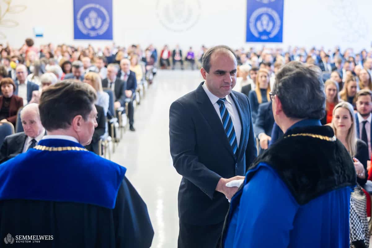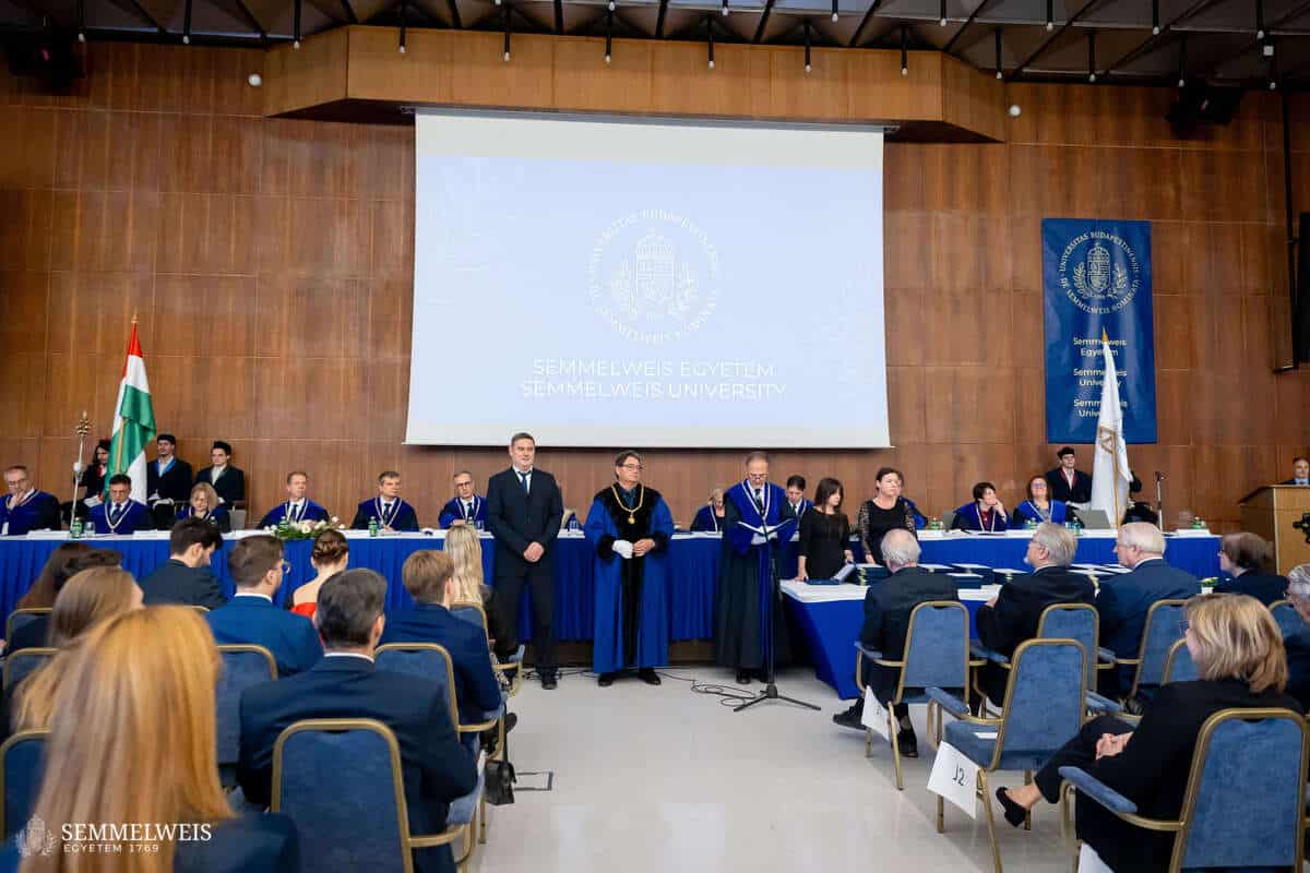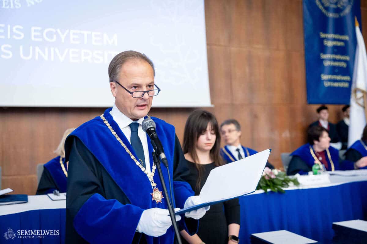 „A Dies Academicus különleges pillanat: a tudomány és a kiválóság ünnepe, amikor egyszerre köszöntjük frissen avatott doktorainkat és azokat az egyetemi polgárokat, akik munkájukkal, teljesítményükkel és elhivatottságukkal tovább erősítik a Semmelweis Egyetem hírnevét” – mondta köszöntőjében dr. Merkely Béla rektor az intézmény ünnepi szenátusi ülésén. „Az esemény egyszerre szól a mögöttünk álló évek erőfeszítéseiről, a jövőbe mutató tudományos és oktatási eredményekről, valamint azokról, akik a 256 éves intézmény a szellemiségét nap mint nap tovább erősítik” – fogalmazott. Az eredményekről szólva megemlítette, hogy a Times Higher Education (THE) legfrissebb világranglistáján stabilan őrzi a helyét az egyetem a legjobb 300 intézmény között, míg a ShanghaiRanking friss rangsora gyógyszertudományi területen a világ 61. legjobbjaként, a US News listája szív- és érgyógyászat területen 35. helyen rangsorolja a Semmelweist.