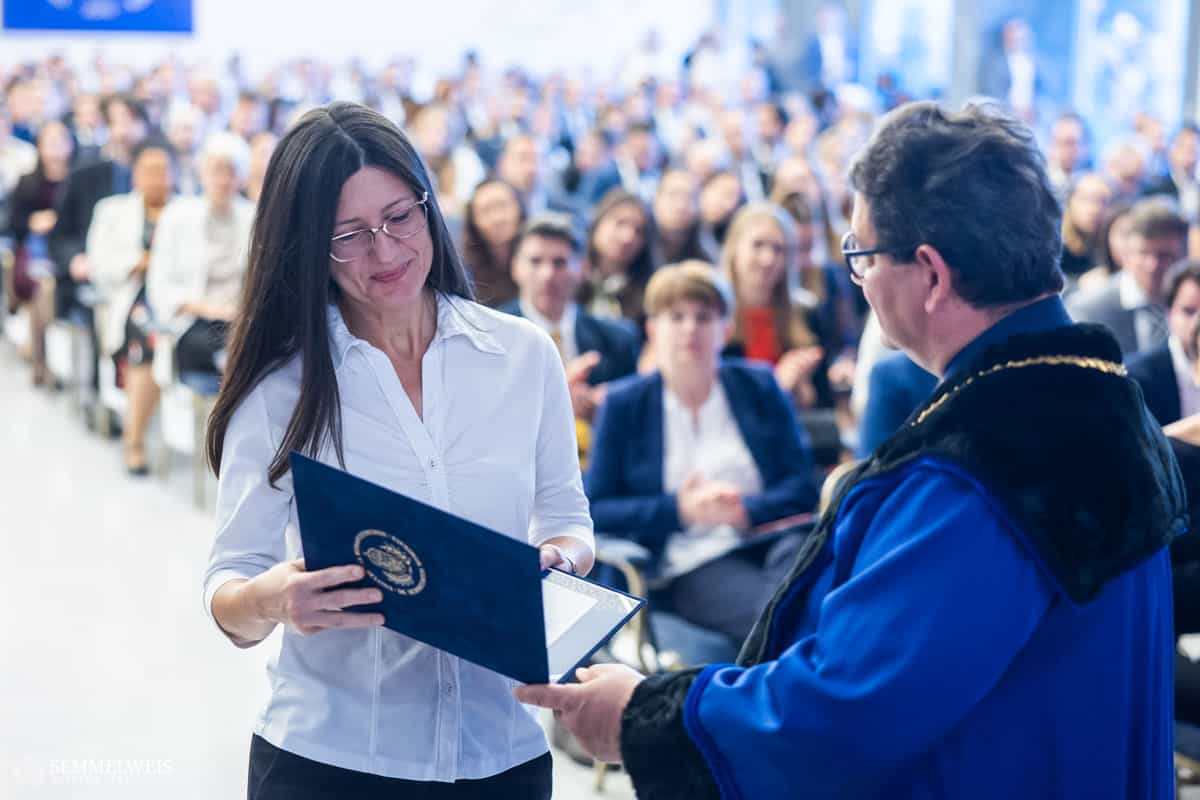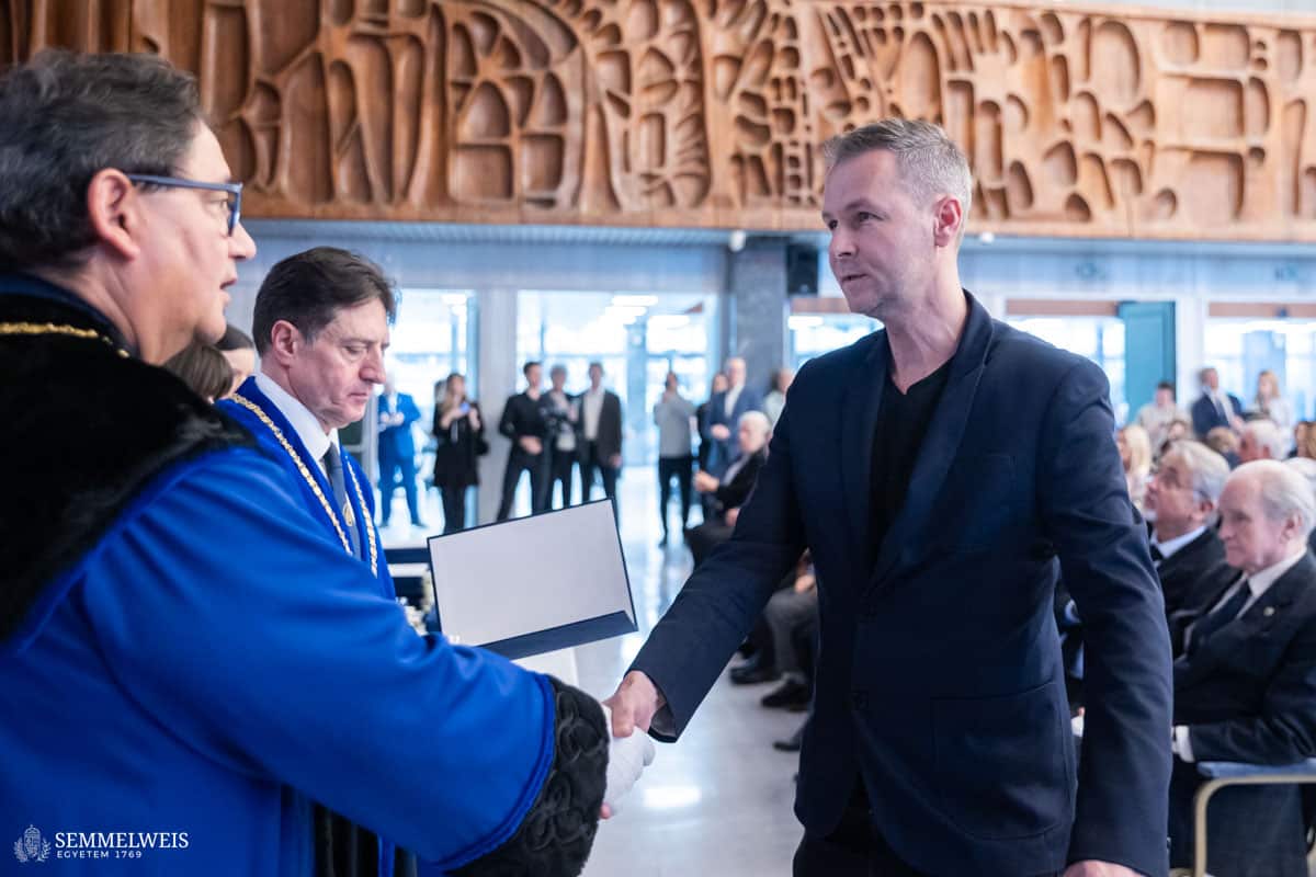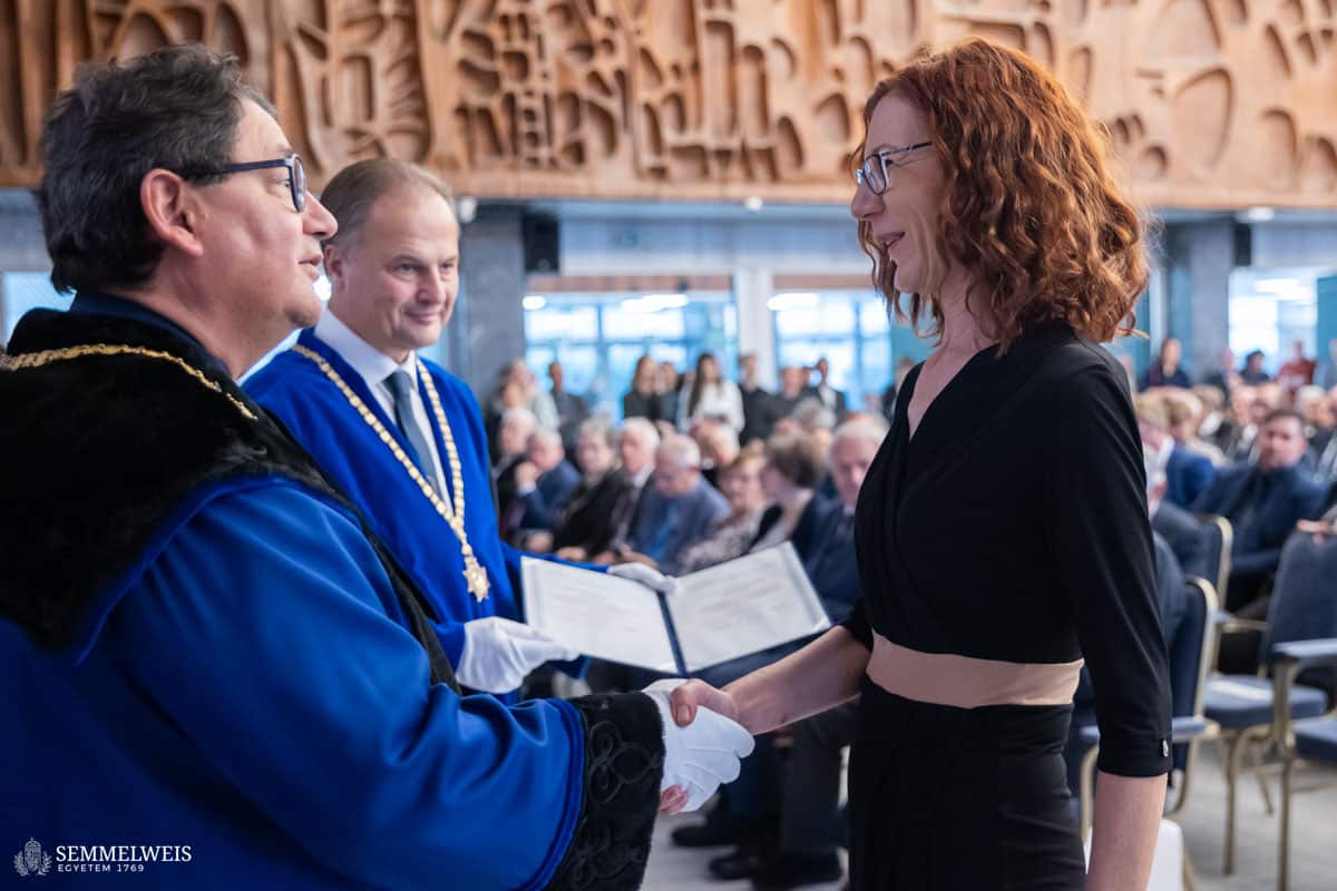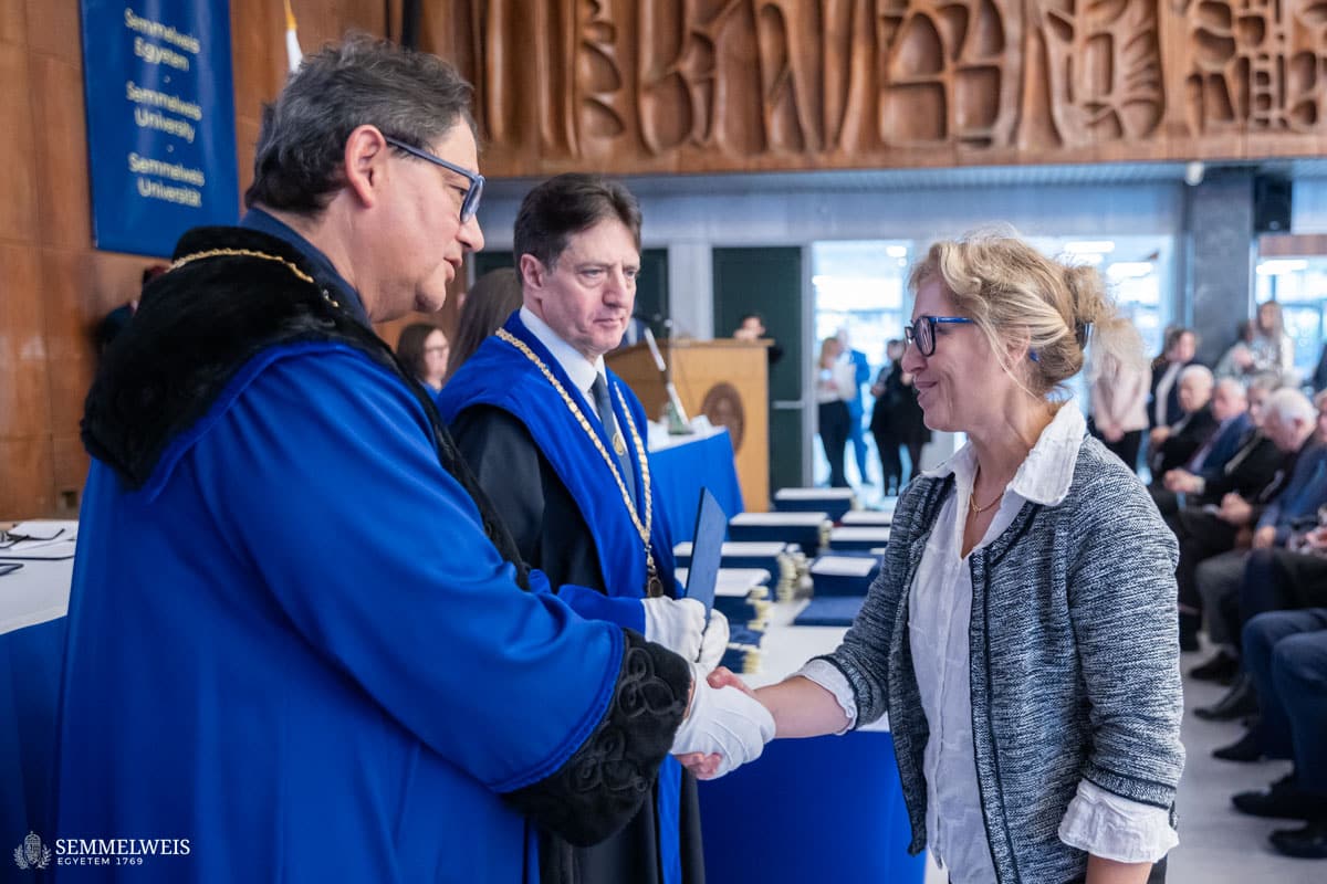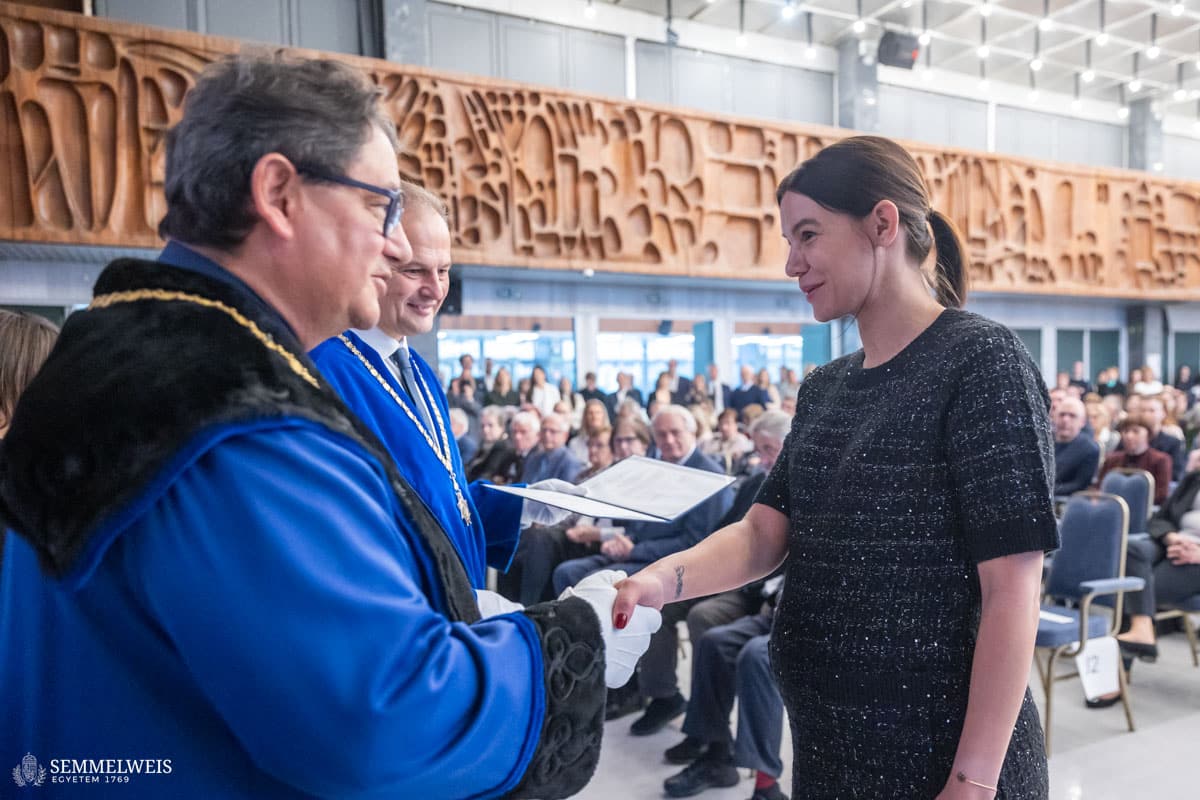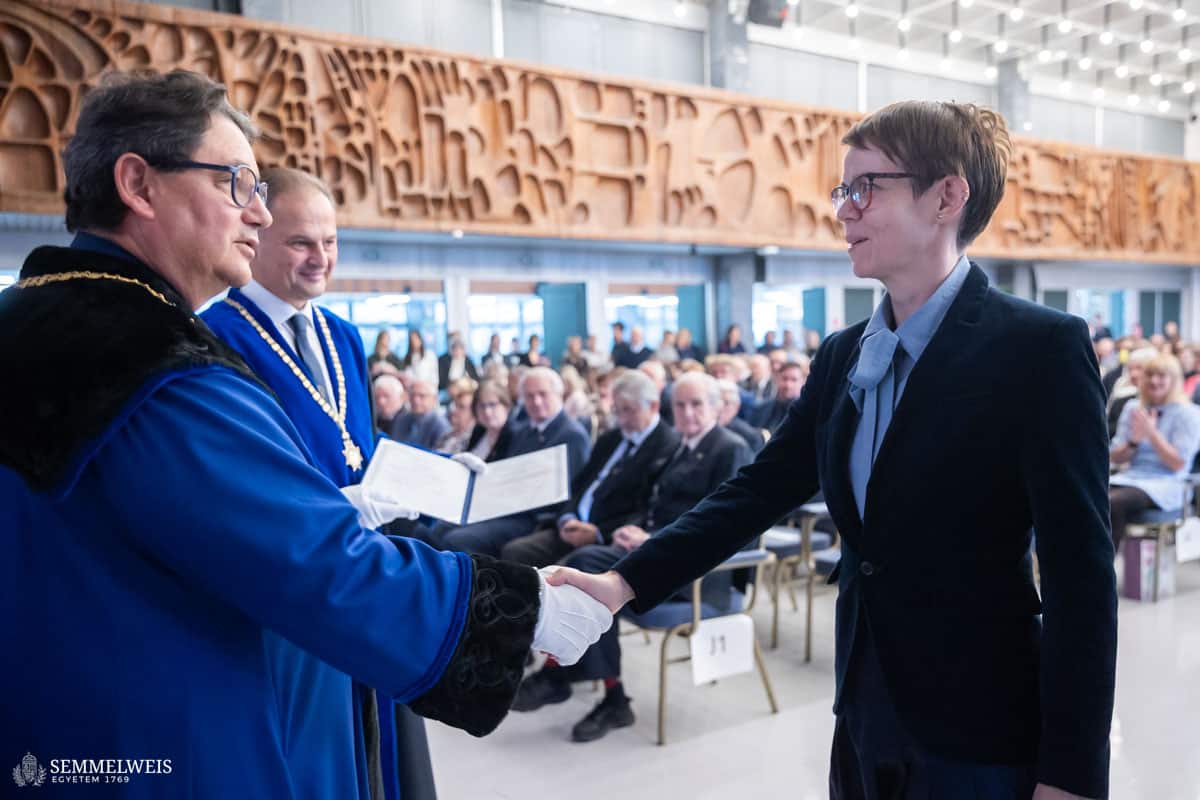 Átadták az elméleti oktatás anyagi és erkölcsi megbecsülésének növelését, az elméleti oktatói életpályamodell további fejlesztését célzó, 2023-ban alapított Pro Educatione díjakat. A díjazottak dr. Merkely Béla rektortól és dr. Hermann Péter oktatási rektorhelyettestől vették át az elismerést.