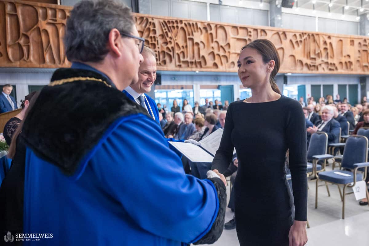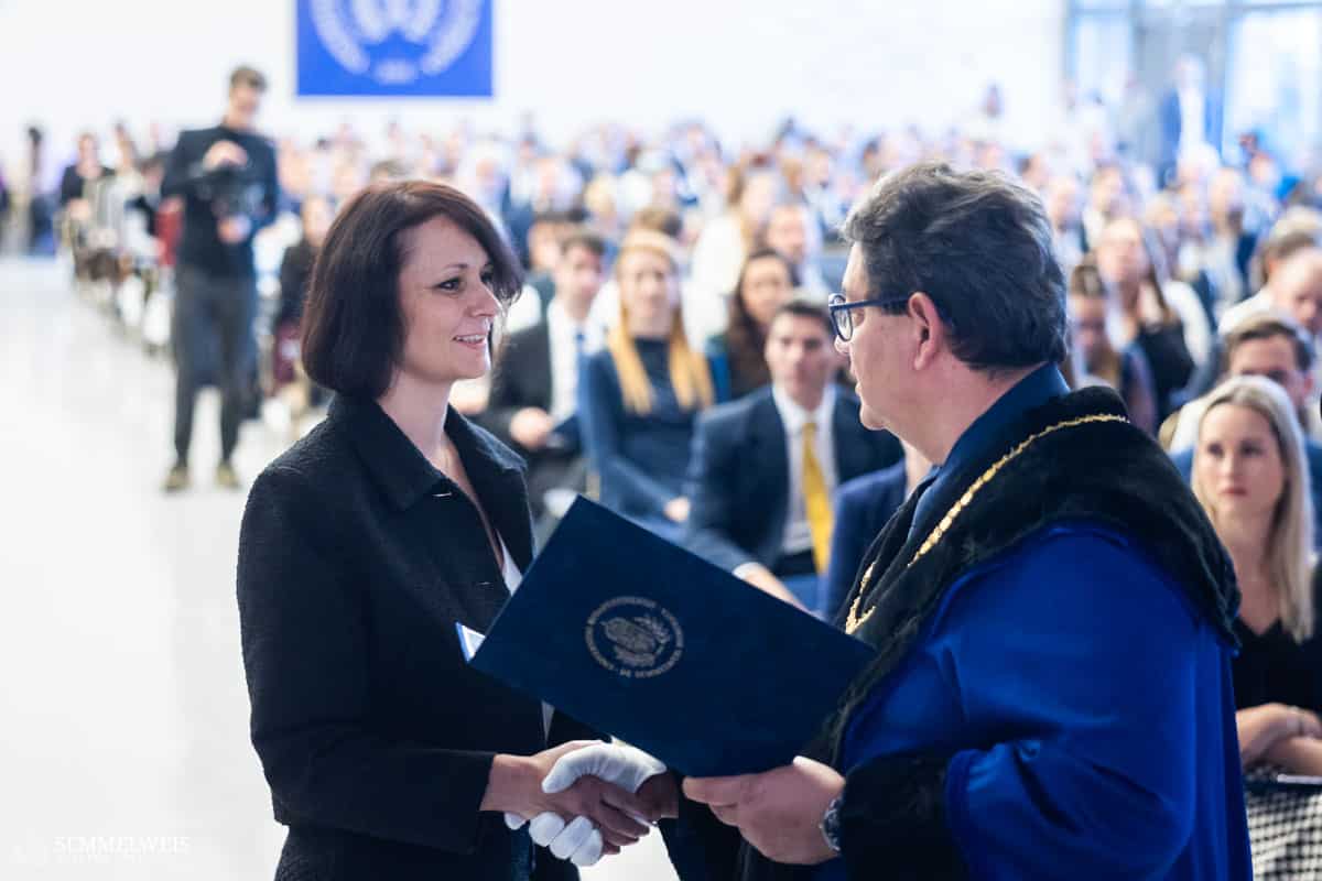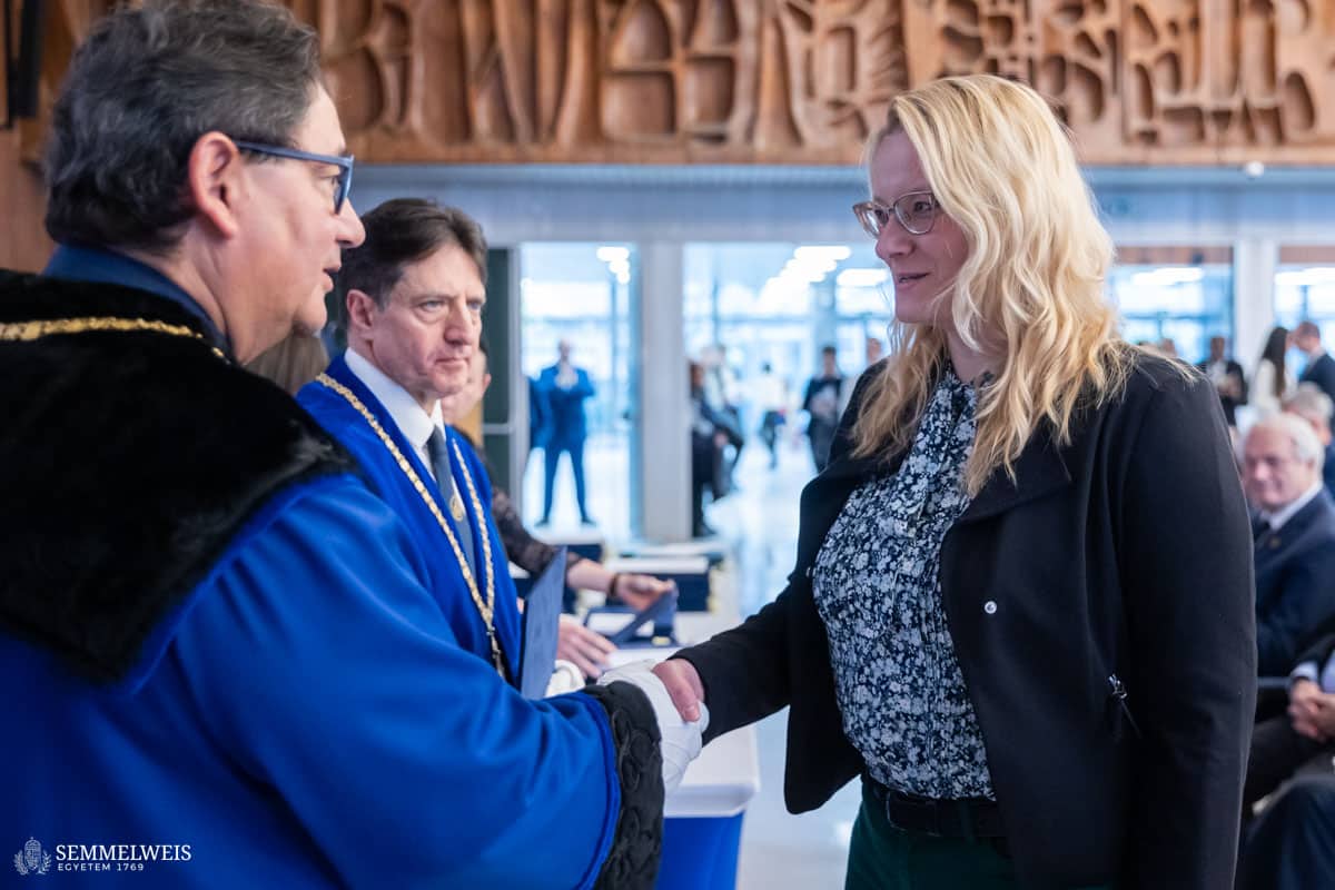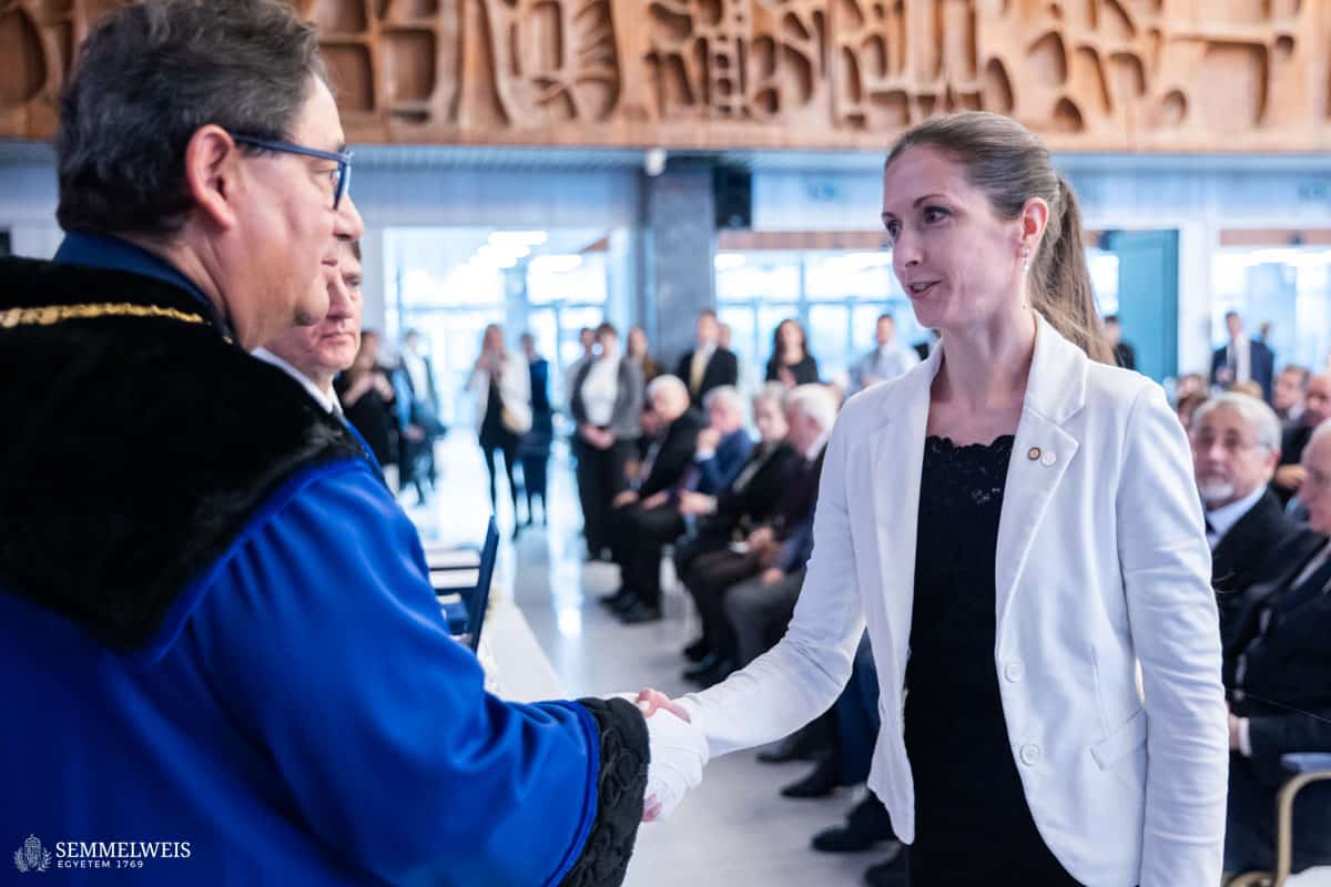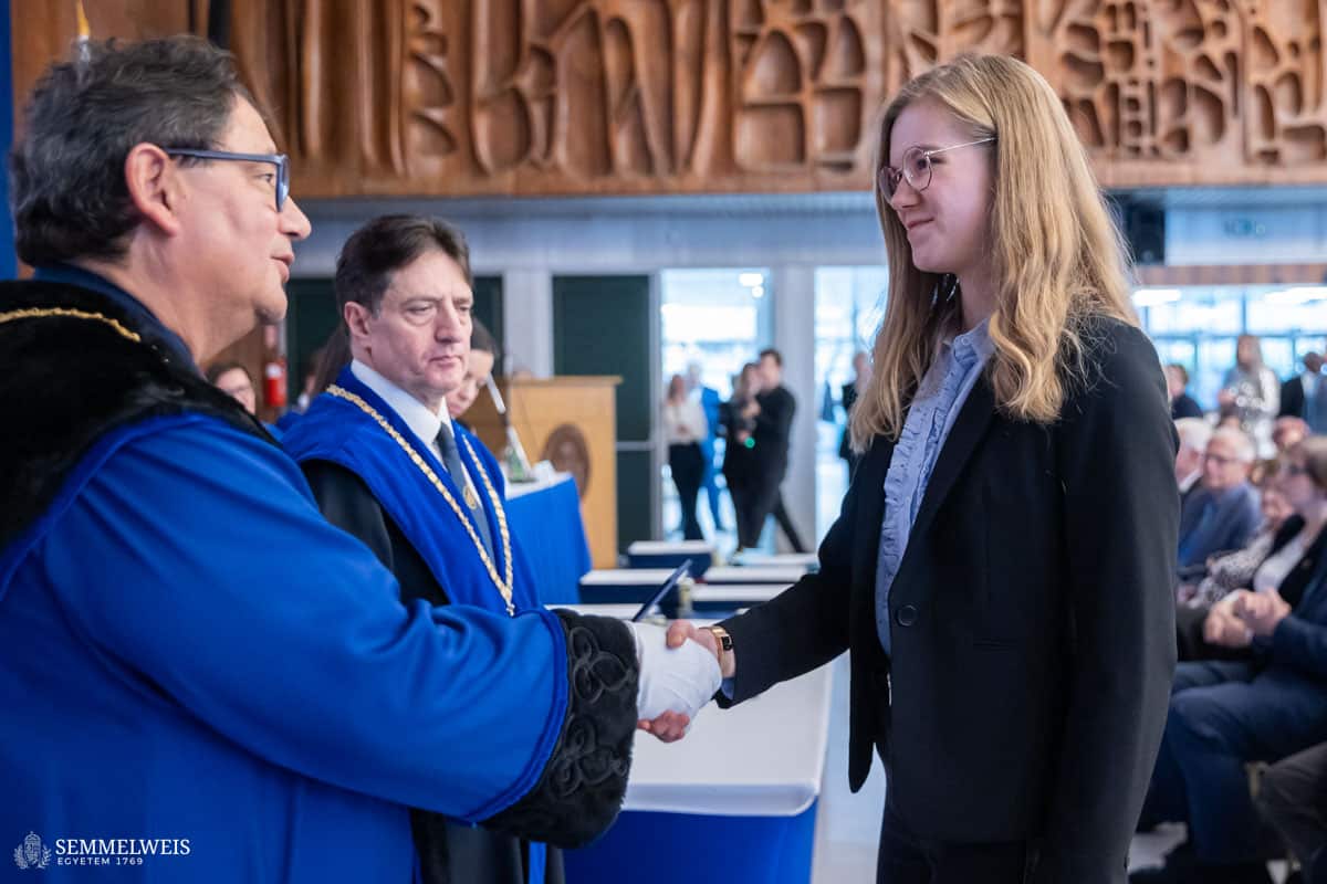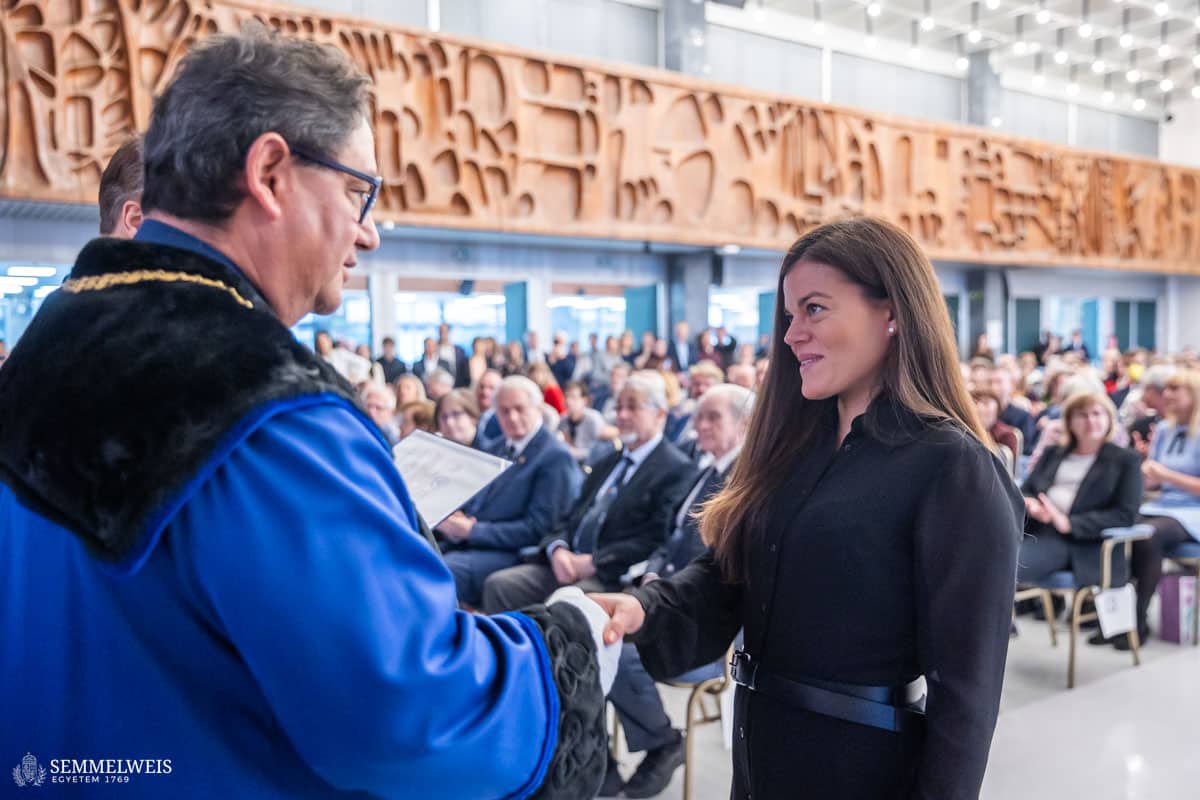 Dr. Merkely Béla rektori dicséret oklevelet adott át Mazán Mercédesz Melindának, a Bőr-, Nemikórtani és Bőronkológiai Klinika labormérnökének.