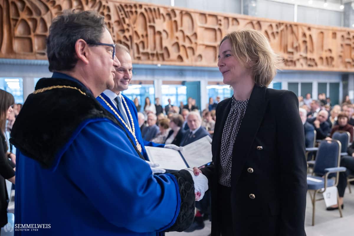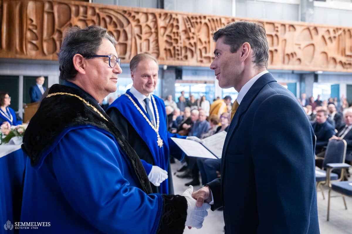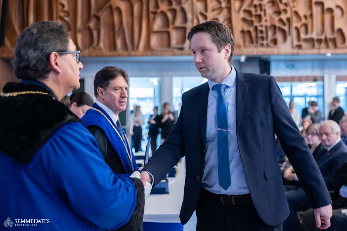 Dr. Merkely Béla rektor, és dr. Szabó Attila klinikai rektorhelyettes oktatói és vezetői kinevezéseket adott át. Egyetemi docensi kinevezésről szóló oklevelet vett át dr. Demeter Gyula, a Fizikális Medicina és Rehabilitáció Medicina Tanszék oktatója, klinikaigazgatói kinevezést dr. Maurovich Horvat Pál, az Orvosi Képalkotó Klinika vezetője, illetve tanszékvezetői kinevezést dr. Dósa Edit, a Városmajori Szív- és Érgyógyászati Klinika Intervenciós Radiológiai Tanszék részéről.