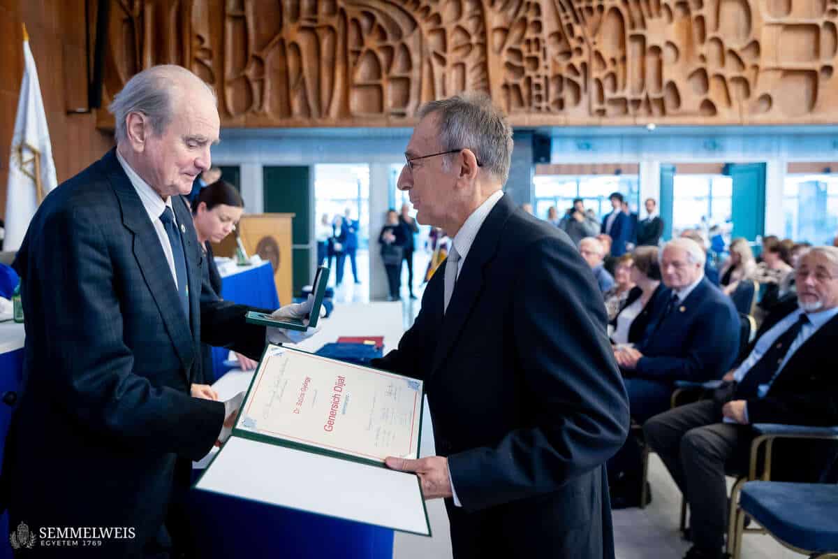 Az ünnepség a Semmelweis Egyetem egykori rektora emlékét őrző alapítvány, a Dr. Genersich Antal Alapítvány 2025. évi díjainak átadásával folytatódott. Az elismeréseket dr. Merkely Béla rektor, és dr. Sótonyi Péter rector emeritus, az alapítvány tiszteletbeli társelnöke adta át. Az idén két hallgatói díjat adományozott az alapítvány: a frissdiplomás dr. Nádorvári Maja Lilla a Belgyógyászati és Onkológiai Klinika Onkológiai Profiljának onkológus rezidense, valamint Nagy Kristóf Gergő V. éves hallgató, a Patológiai és Kísérleti Rákkutató Intézet kutatója részére. A Törvényszéki orvos díjat dr. Dósa Ágnes, a Semmelweis Egyetem Magatartástudományi Intézetének, habilitált egyetemi docense, általános igazgatóhelyettese, illetve dr. Felszeghy Endre igazságügyi orvosszakértő, az egyetem Igazságügyi Orvostani Intézetének munkatársa kapta. Az alapítvány idén dr. Sávolt Ákos, az Országos Onkológiai Intézet Daganatsebészeti Központ központvezető főorvosának ítélte oda az Onkológus díjat, Patológus díjat adományozott dr. Dezső Katalinnak, a Semmelweis Egyetem Patológiai és Kísérleti Rákkutató Intézete egyetemi tanárának. Az alapítvány Akadémikus díját dr. Balla György Széchenyi-díjas orvos, gyermekgyógyász, neonatológus, egyetemi tanár nyerte el. Külhoni/Kárpát-medencei díjat adományoztak dr. Sipos Gábor egyháztörténésznek, valamint Tehetséggondozás különdíjat dr. Szűcs György virológusnak.