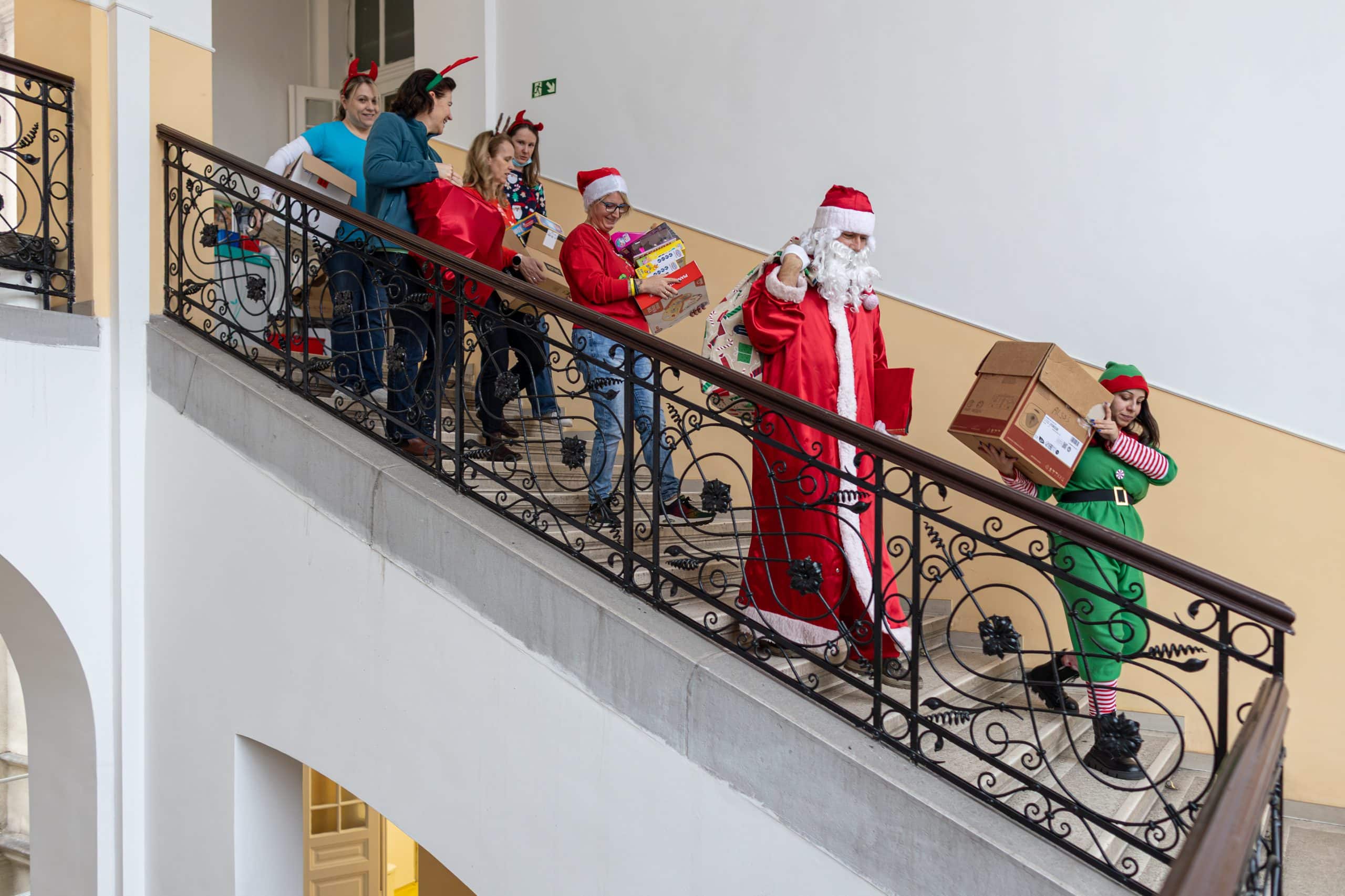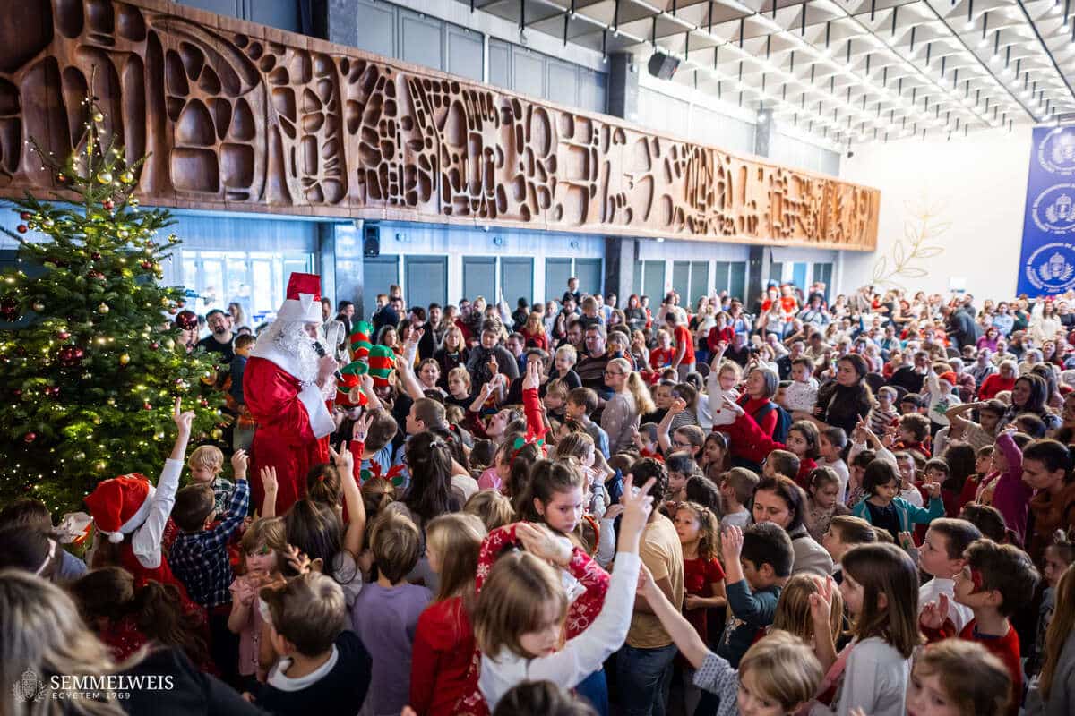 A Családbarát Egyetem Központ által szervezett központi egyetemi Mikulás-ünnepségre 400 gyermek érkezett szülőkkel, kísérőkkel a Nagyvárad téri Elméleti Tömb (NET) aulájába december 6-án délelőtt. A hangulatot az Eszterlánc zenekar koncertje, valamint a Buborék Színház interaktív gyermek színdarabja és közös éneklés alapozta meg a Mikulás érkezéséig, akit dr. Merkely Béla rektor konferált fel, köszöntve a gyerekeket és szüleiket, nagyszüleiket.