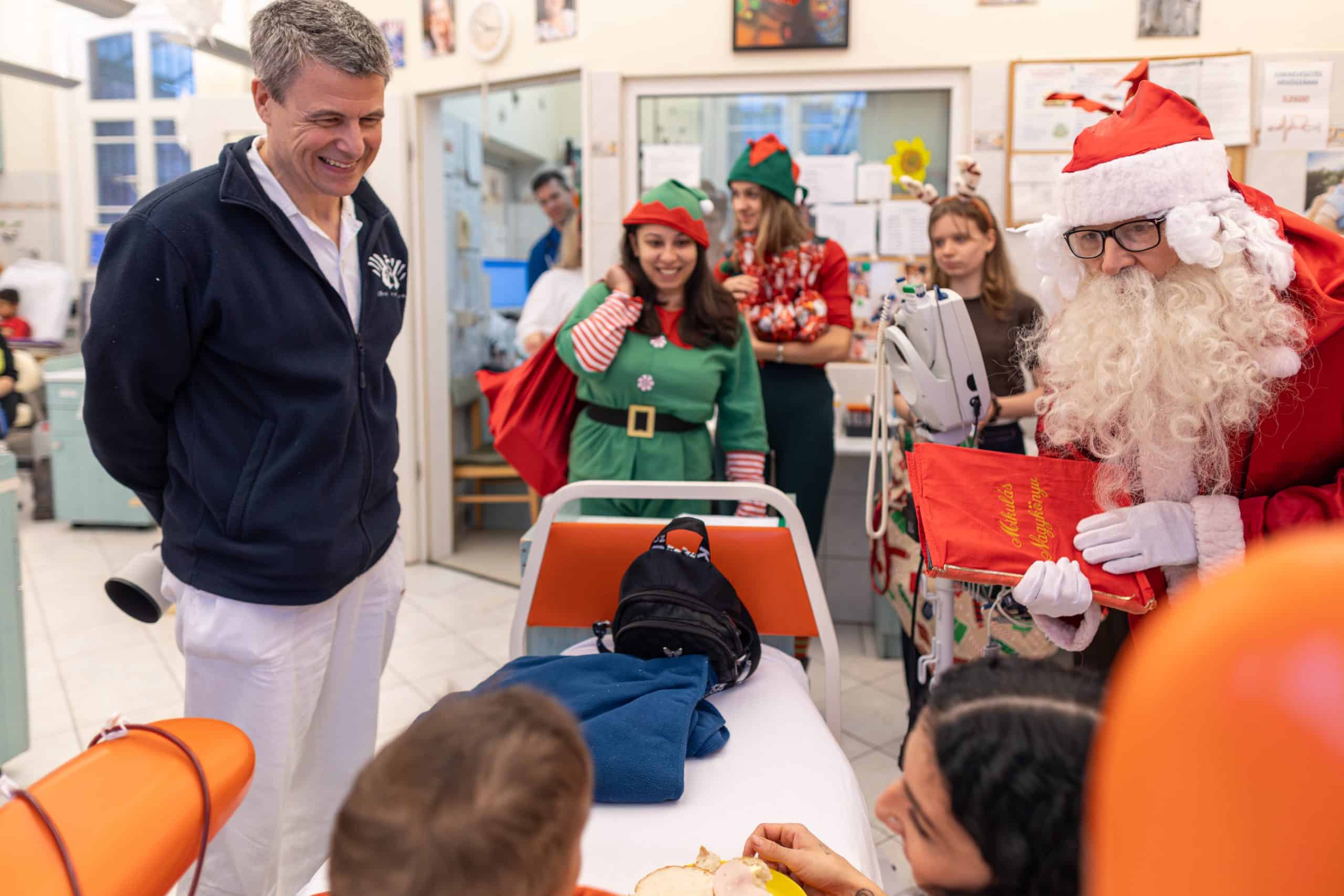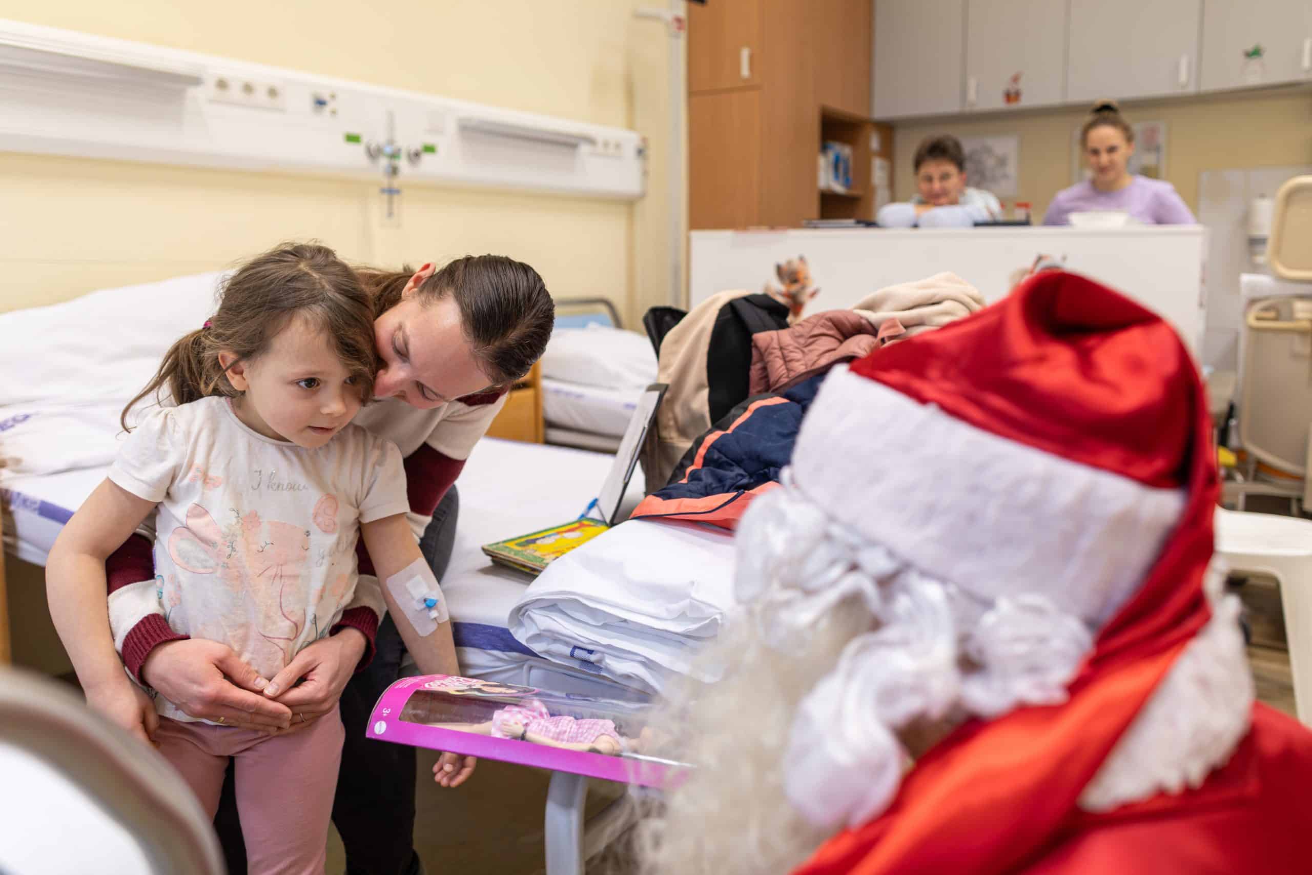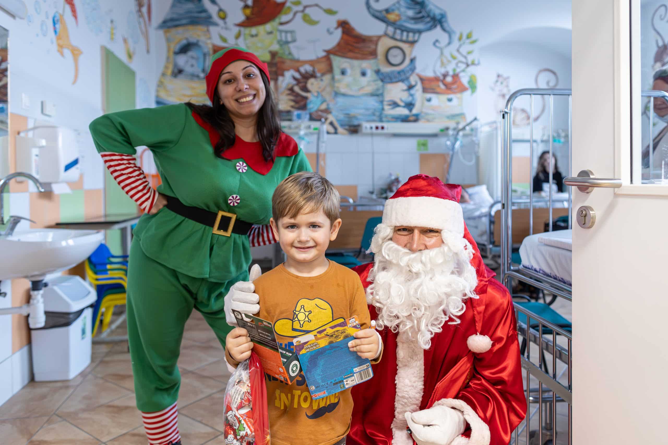 A Mikulás idén sem feledkezett meg azokról a gyermekekről, akik nem otthonukban várták őt december 5-én, mert betegség miatt kórházban kell tölteniük az ünnepi időszakot – számolt be róla a Semmelweis Egyetem Gyermekgyógyászati Klinikája. A klinika Bókay utcai és a Tűzoltó utcai részlegében fekvő, vagy ambuláns ellátásra érkező gyermekei közül volt, ahol énekkel köszöntötték, máshol rajzzal vagy verssel fogadták a Mikulást. Kecskés Tamás, a klinika szervező, kommunikációs munkatársa honlapunknak elmondta, a gyerekek a Bókay Gyermekklinika Alapítványnak, valamint az Őrzők Közhasznú Alapítványnak és támogatóiknak köszönhetően koruknak, ízlésüknek megfelelő játékokkal gazdagodhattak, akiknek pedig egészségi állapota engedte, édességet is kaptak. Több órán át zajlott a bejárás a két részlegen, és ezalatt mintegy 250 gyermeket ajándékoztak meg. Hozzátették, a Mikulás ígéretet tett arra, hogy jövőre is visszatér, és bízik benne, hogy ekkor már valamennyi gyermeknek saját otthonába kézbesítheti az ajándékokat.