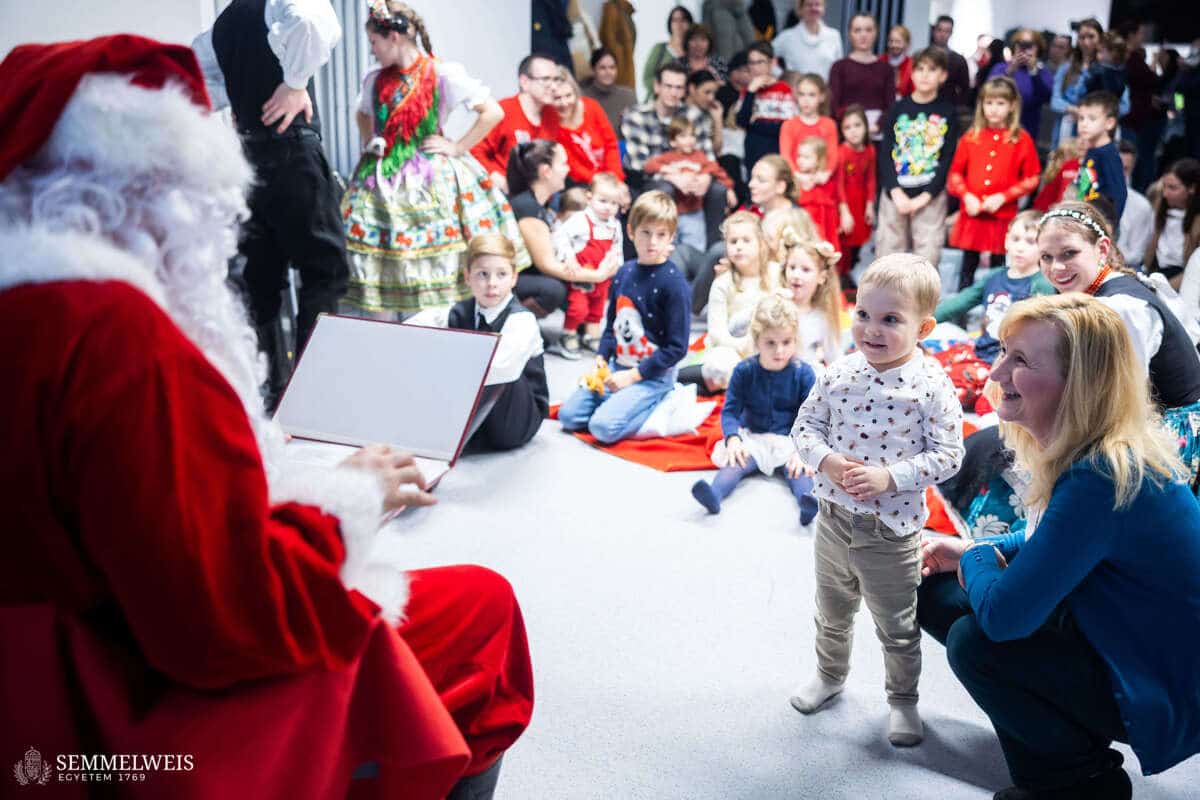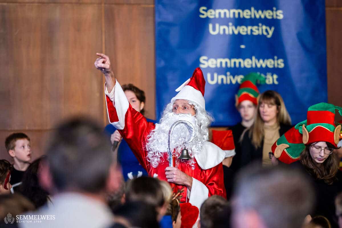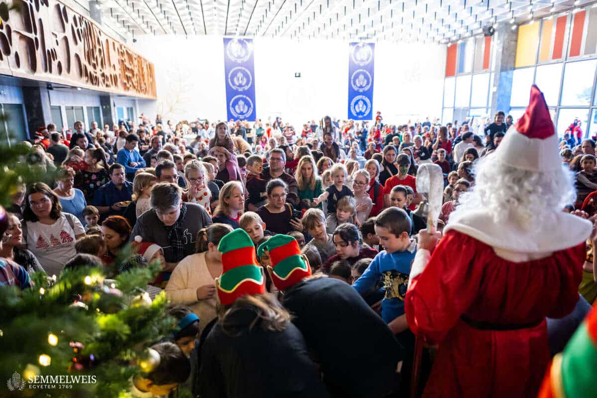 A Családbarát Egyetem Központ által szervezett központi egyetemi Mikulás-ünnepségre 400 gyermek érkezett szülőkkel, kísérőkkel a Nagyvárad téri Elméleti Tömb (NET) aulájába december 6-án délelőtt. A hangulatot az Eszterlánc zenekar koncertje, valamint a Buborék Színház interaktív gyermek színdarabja és közös éneklés alapozta meg a Mikulás érkezéséig, akit dr. Merkely Béla rektor konferált fel, köszöntve a gyerekeket és szüleiket, nagyszüleiket.